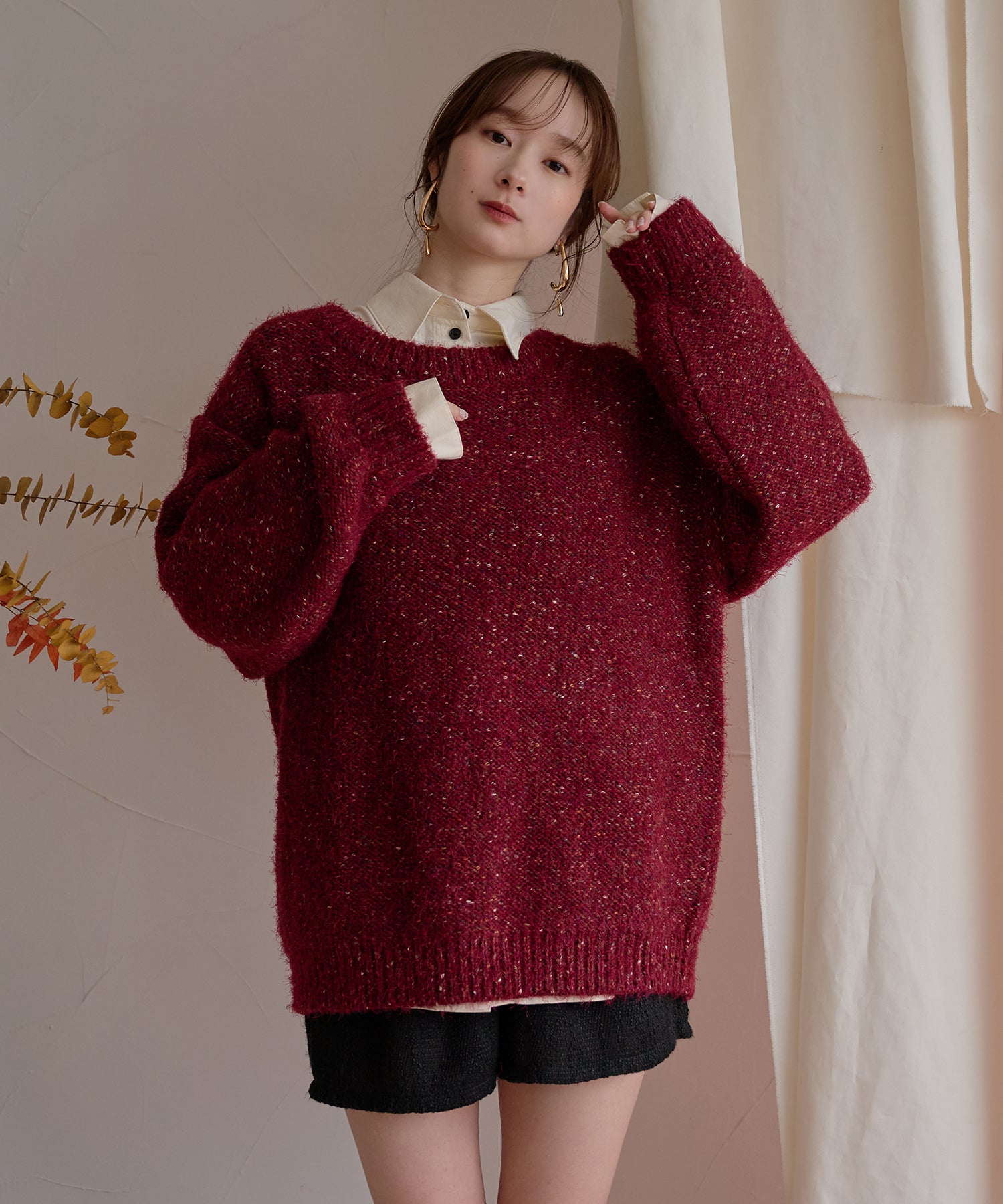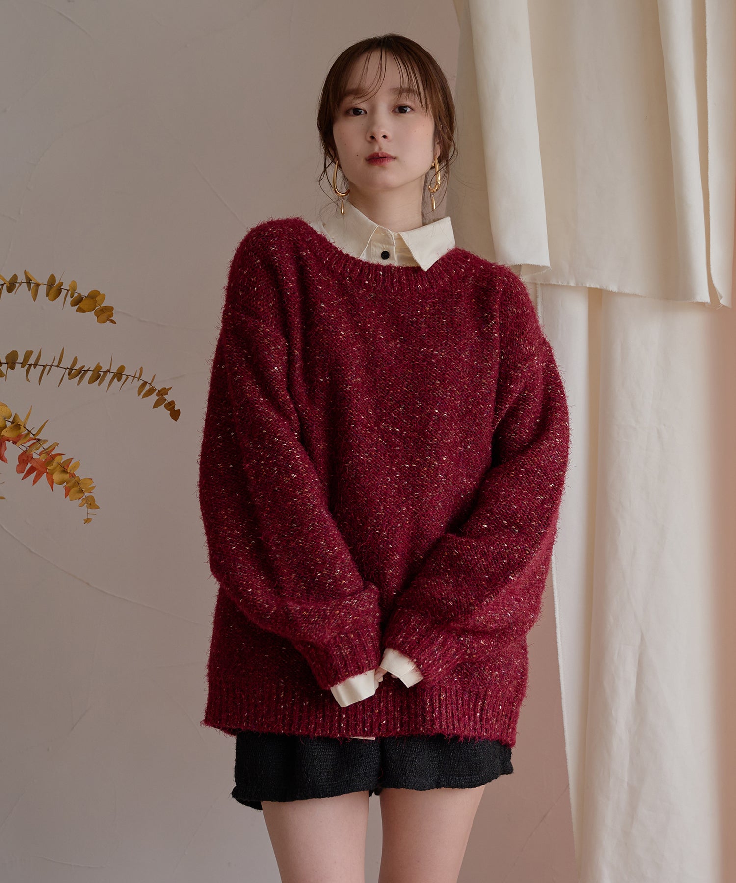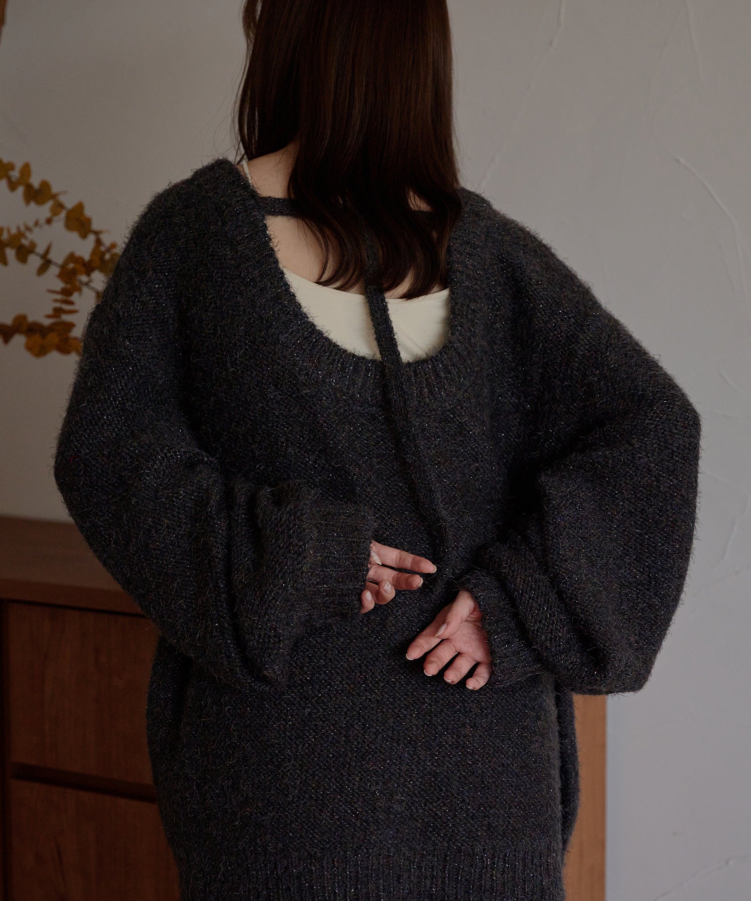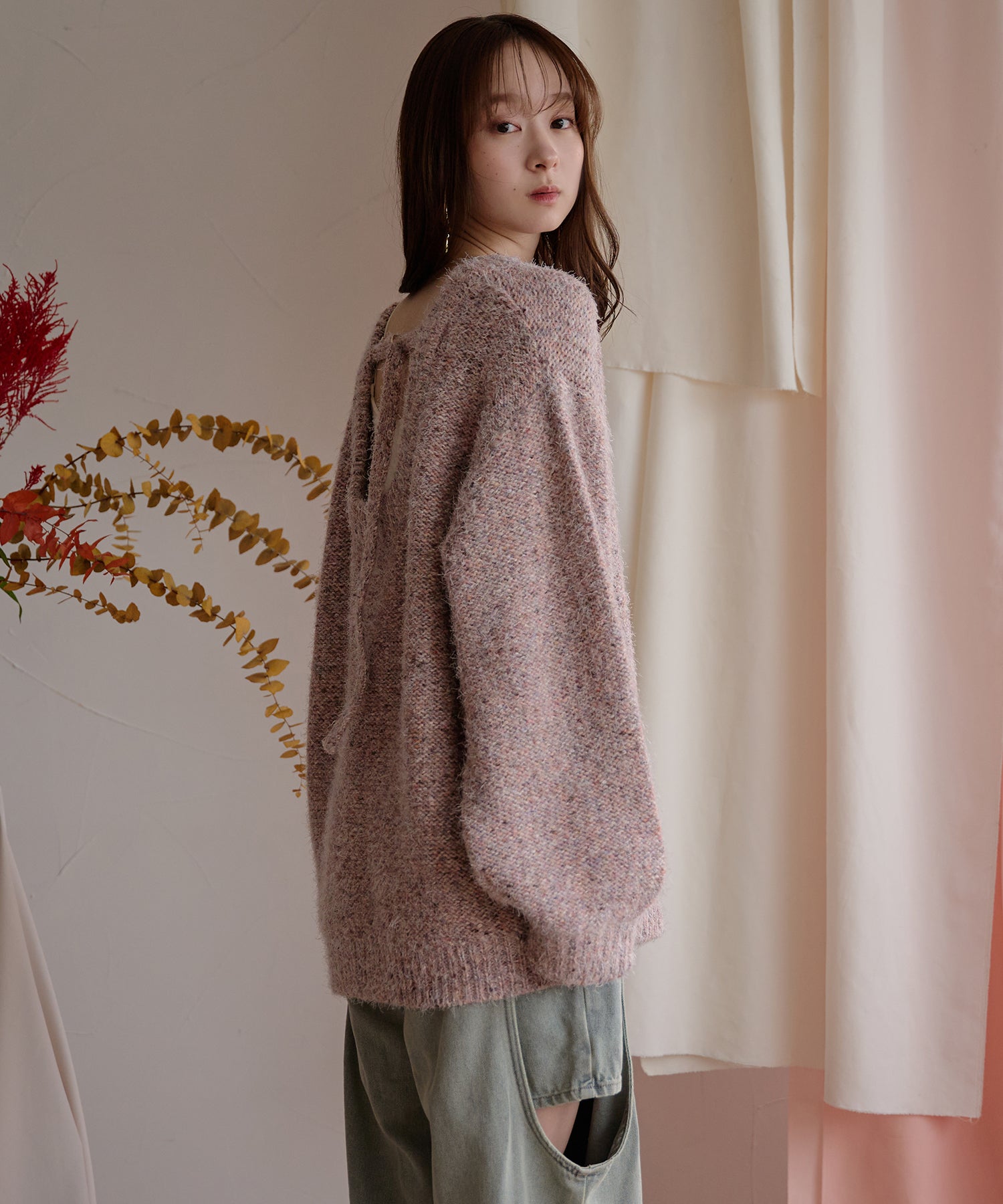 【予約商品】back open mix shaggy knit / バックオープンミックスシャギーニット