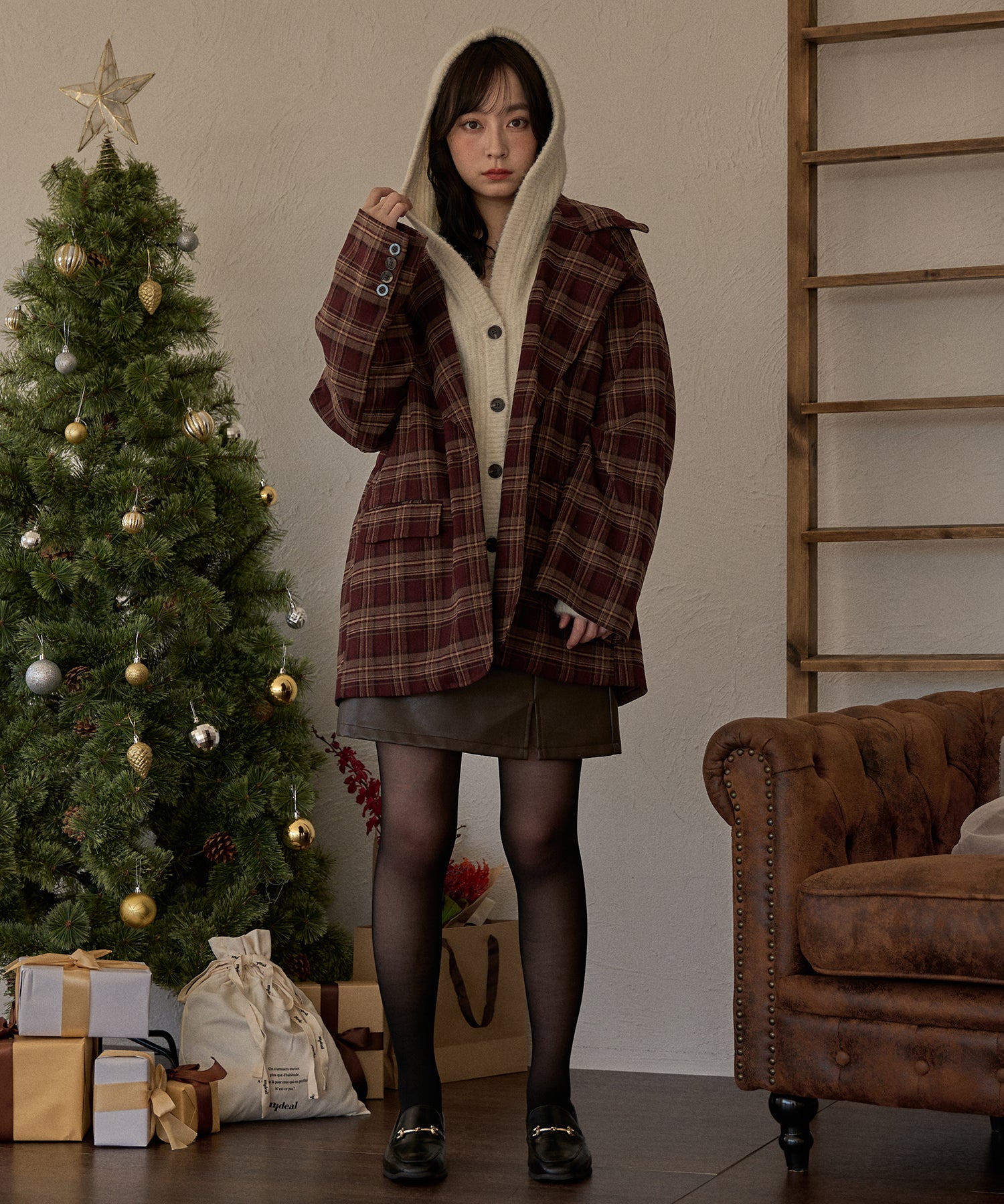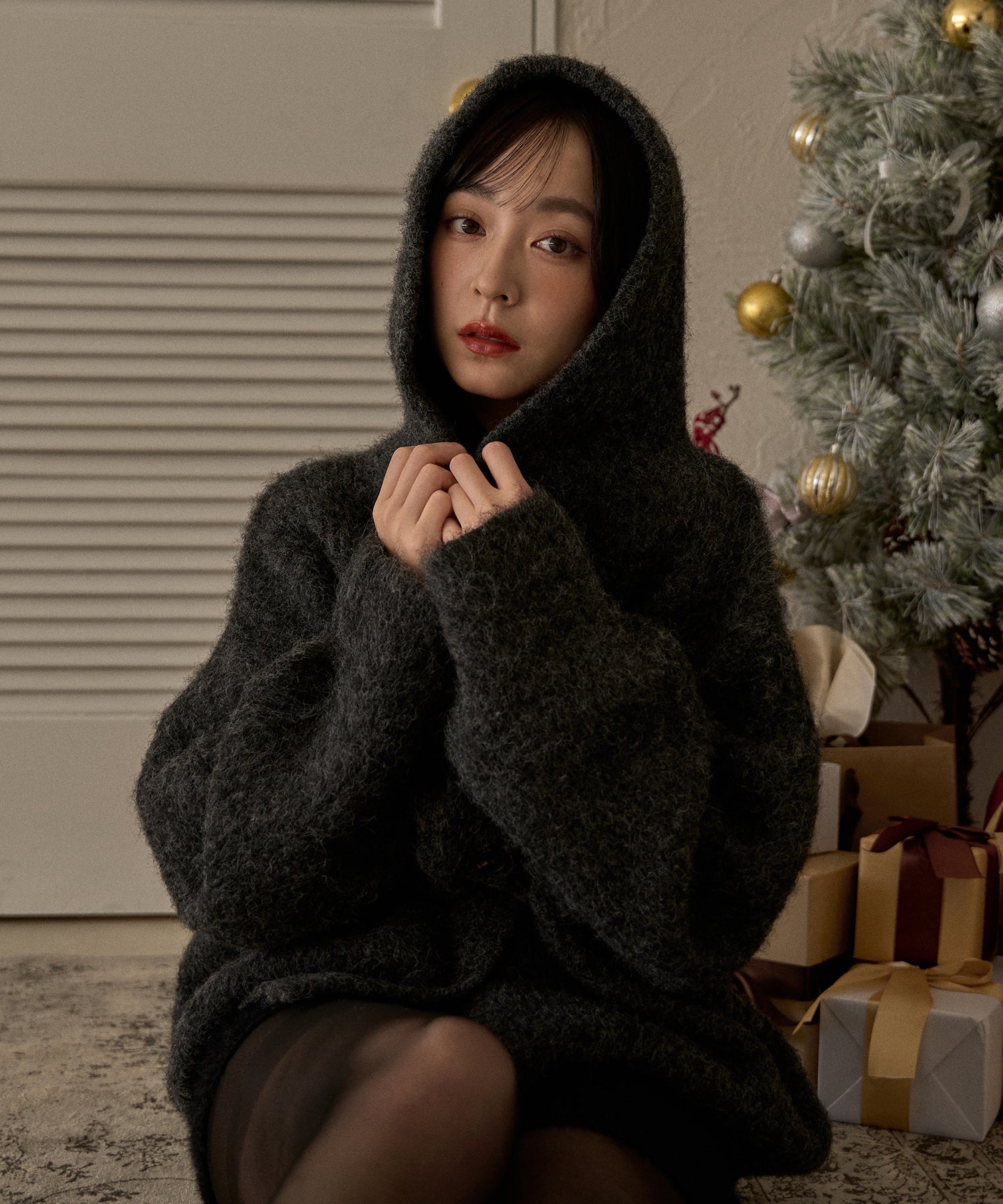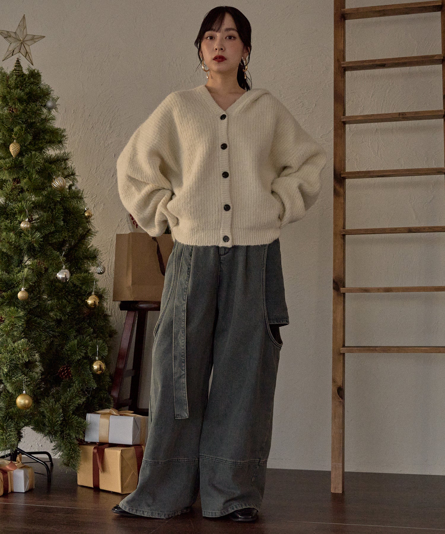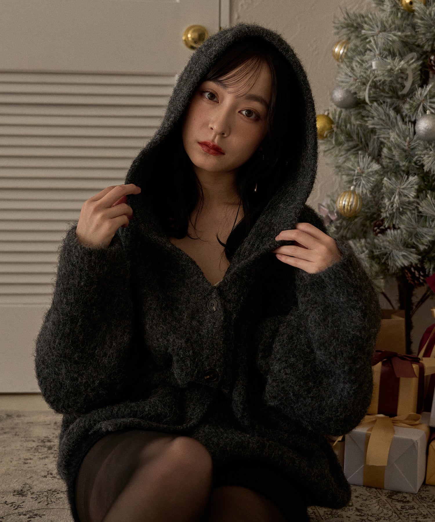 抜け感のあるカジュアルレディなニットパーカー。