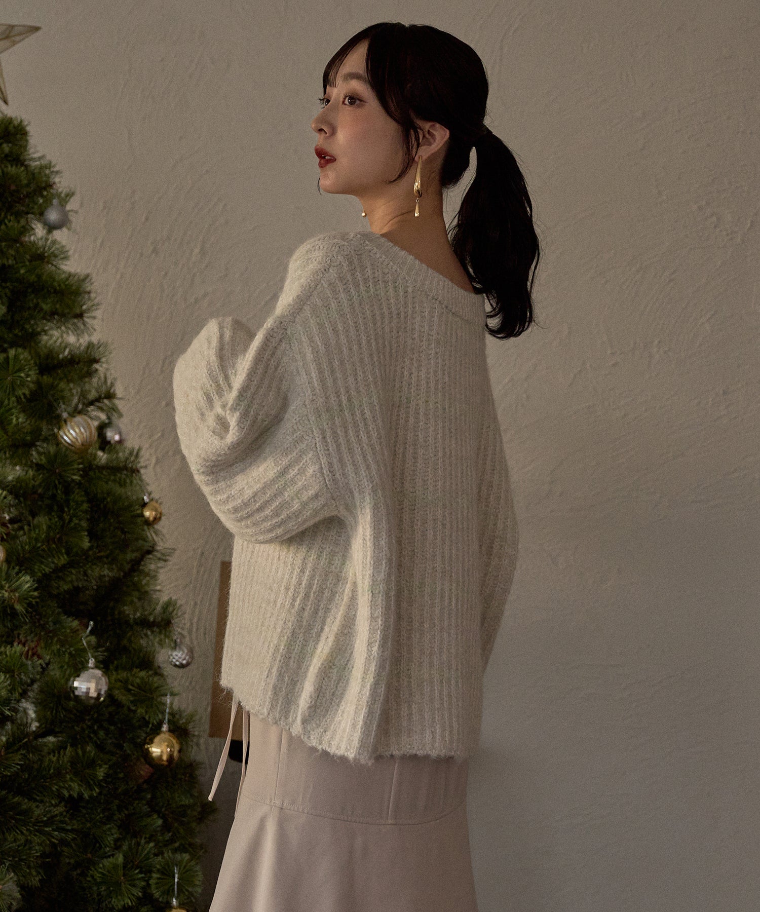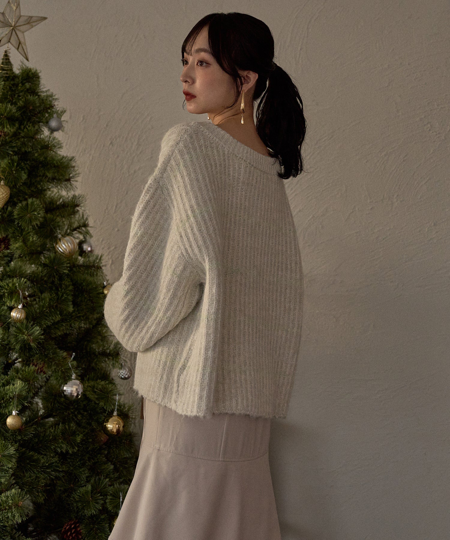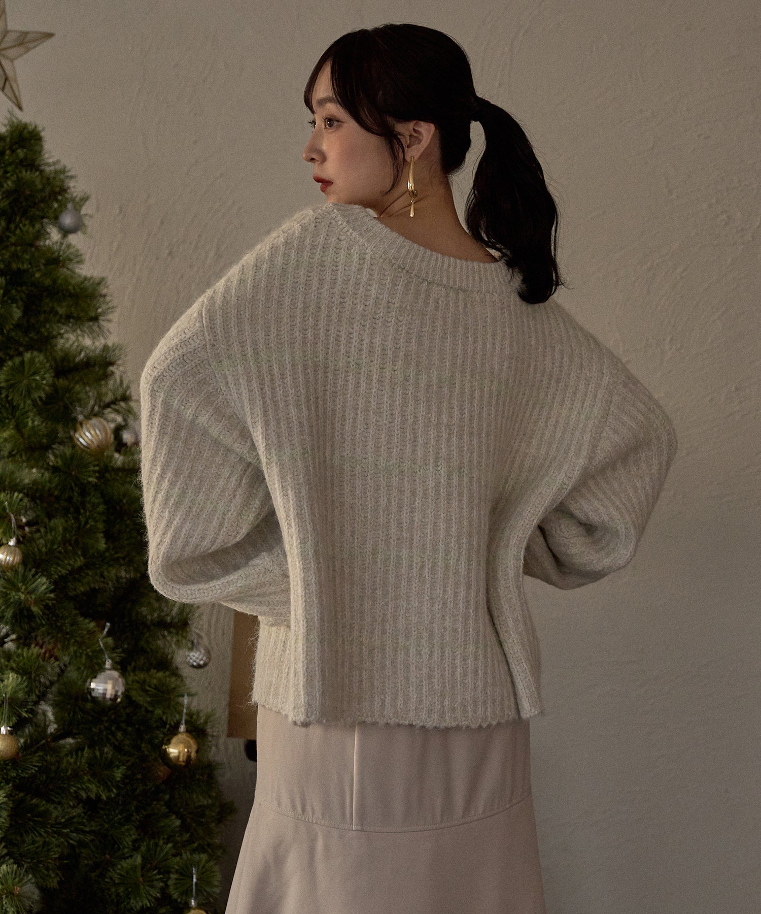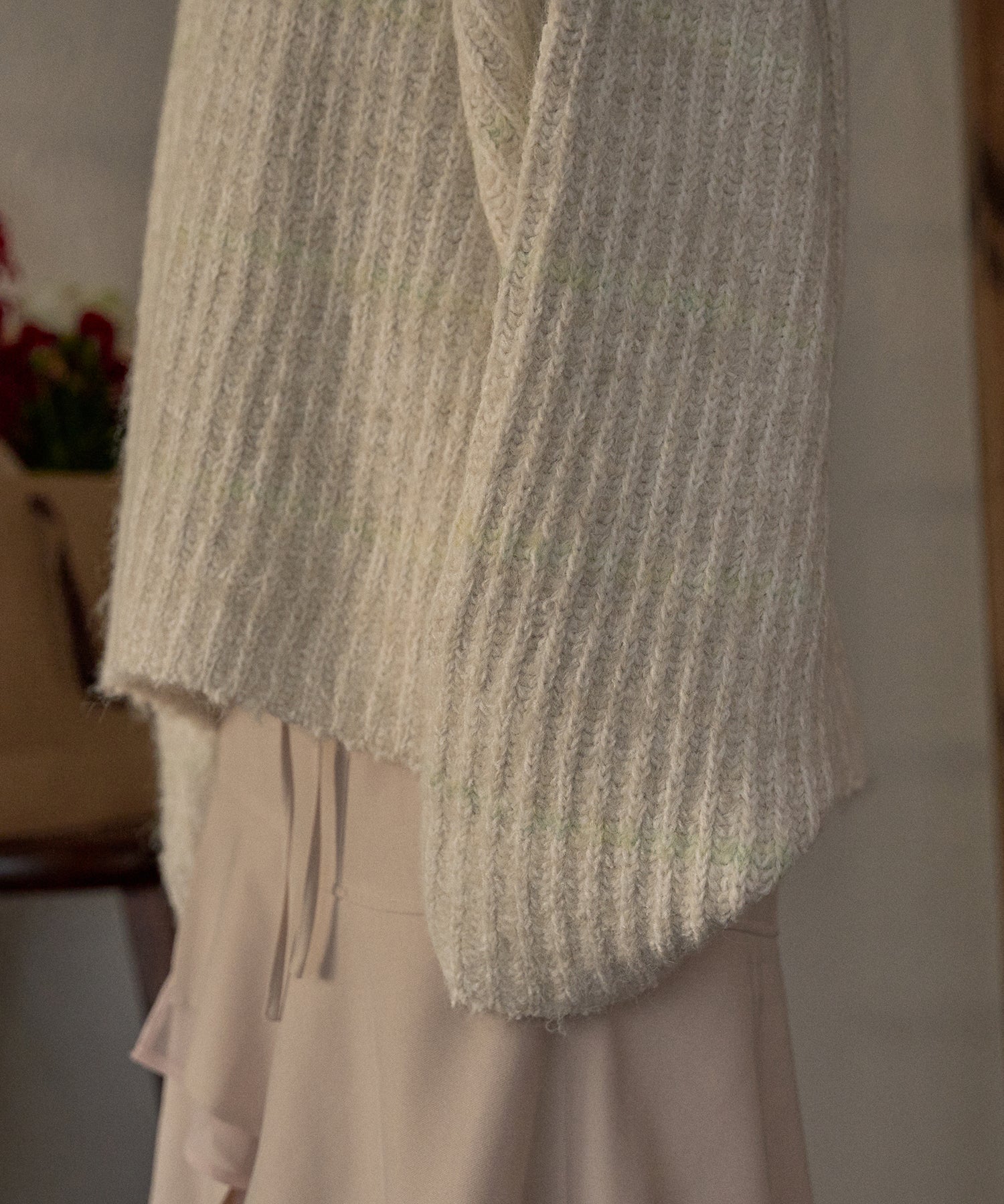 肉厚なニット素材を使用し、暖かく着用ただけるアイテム。