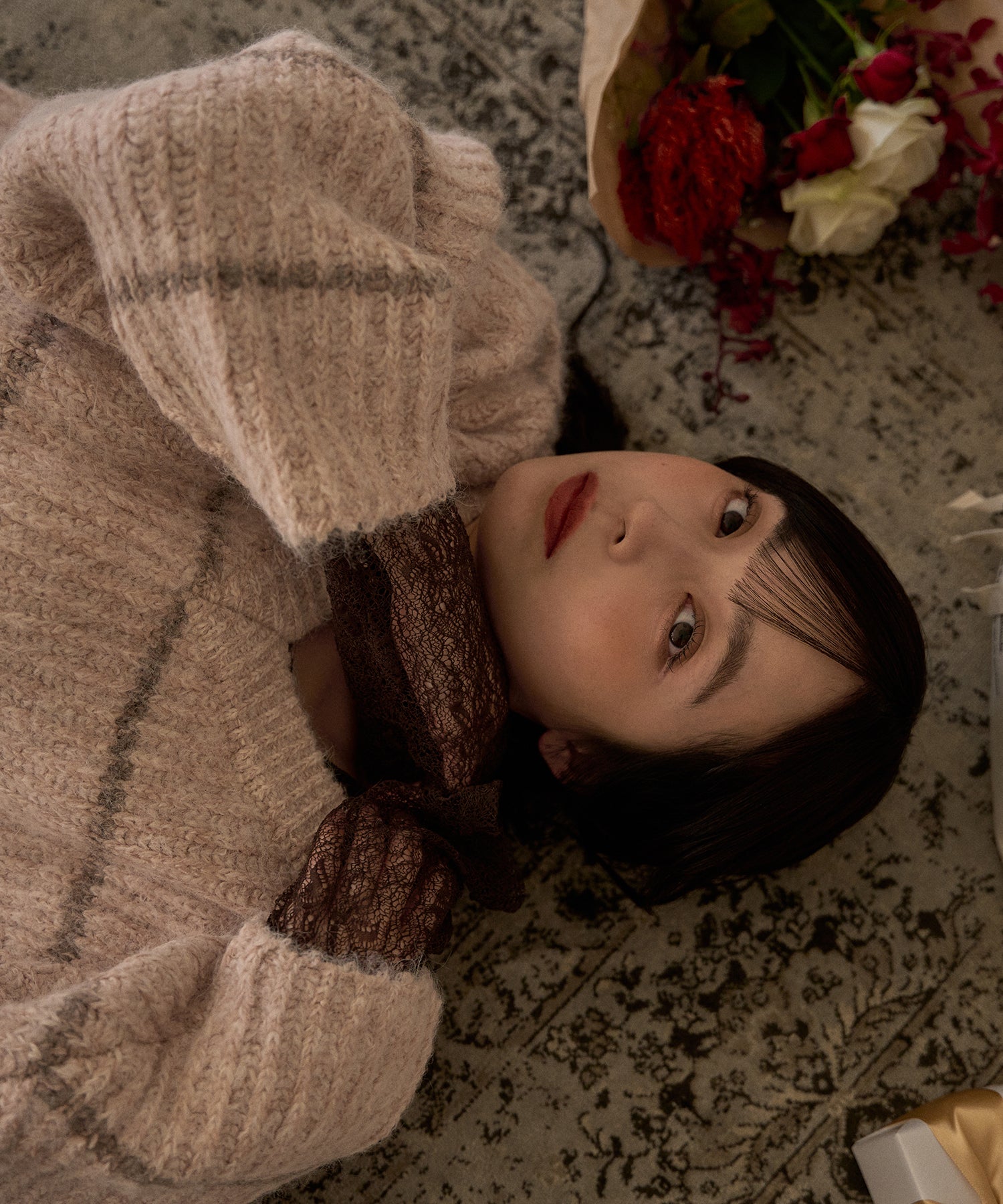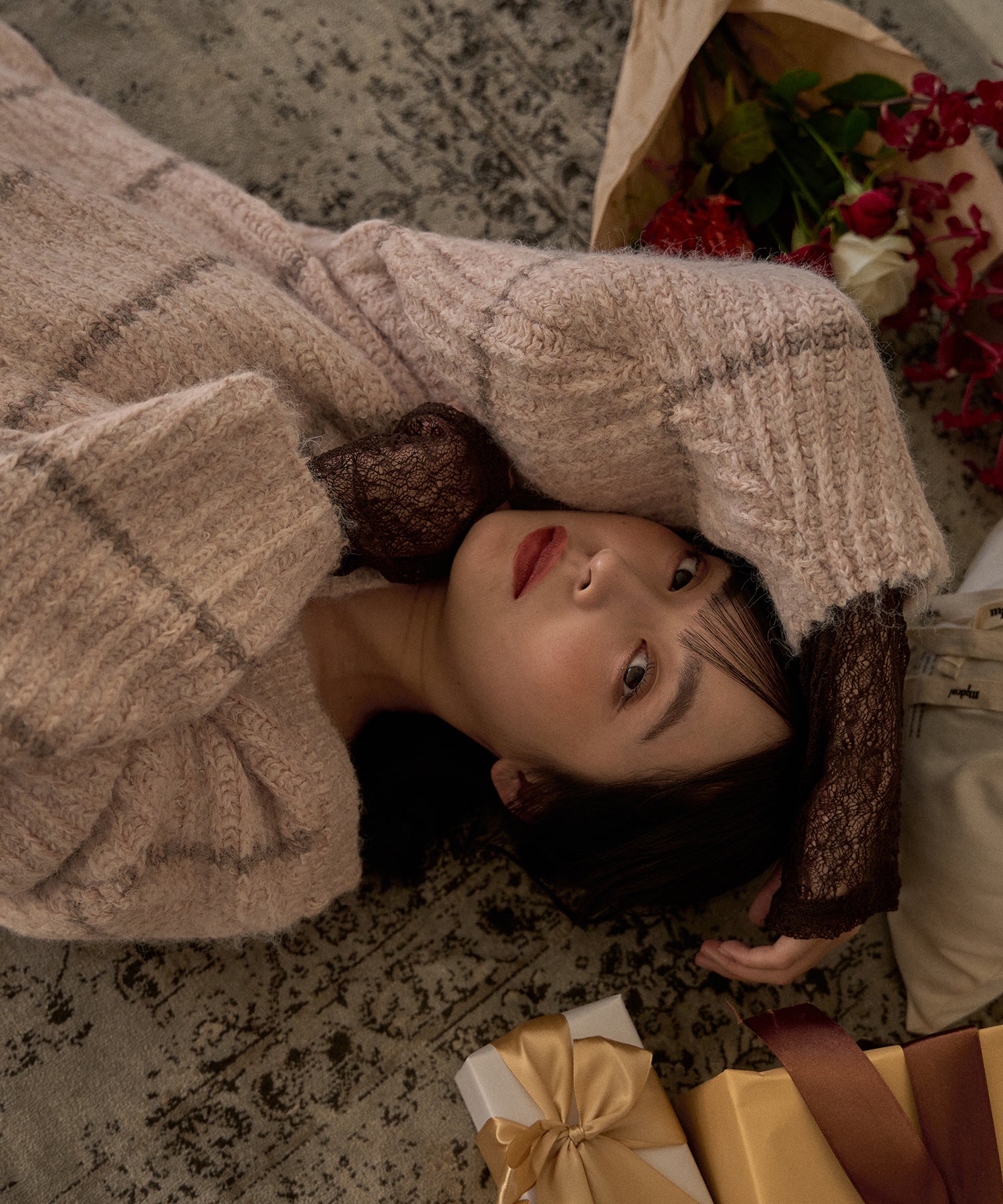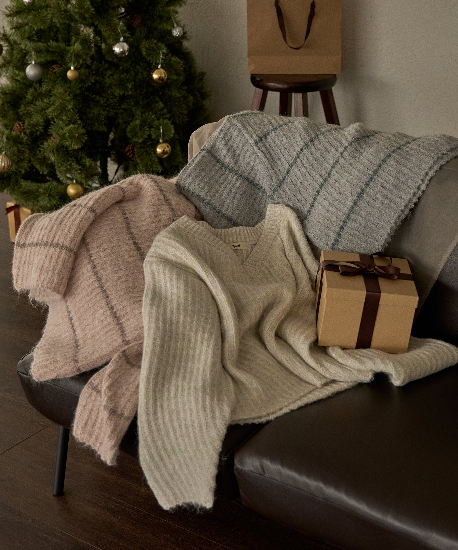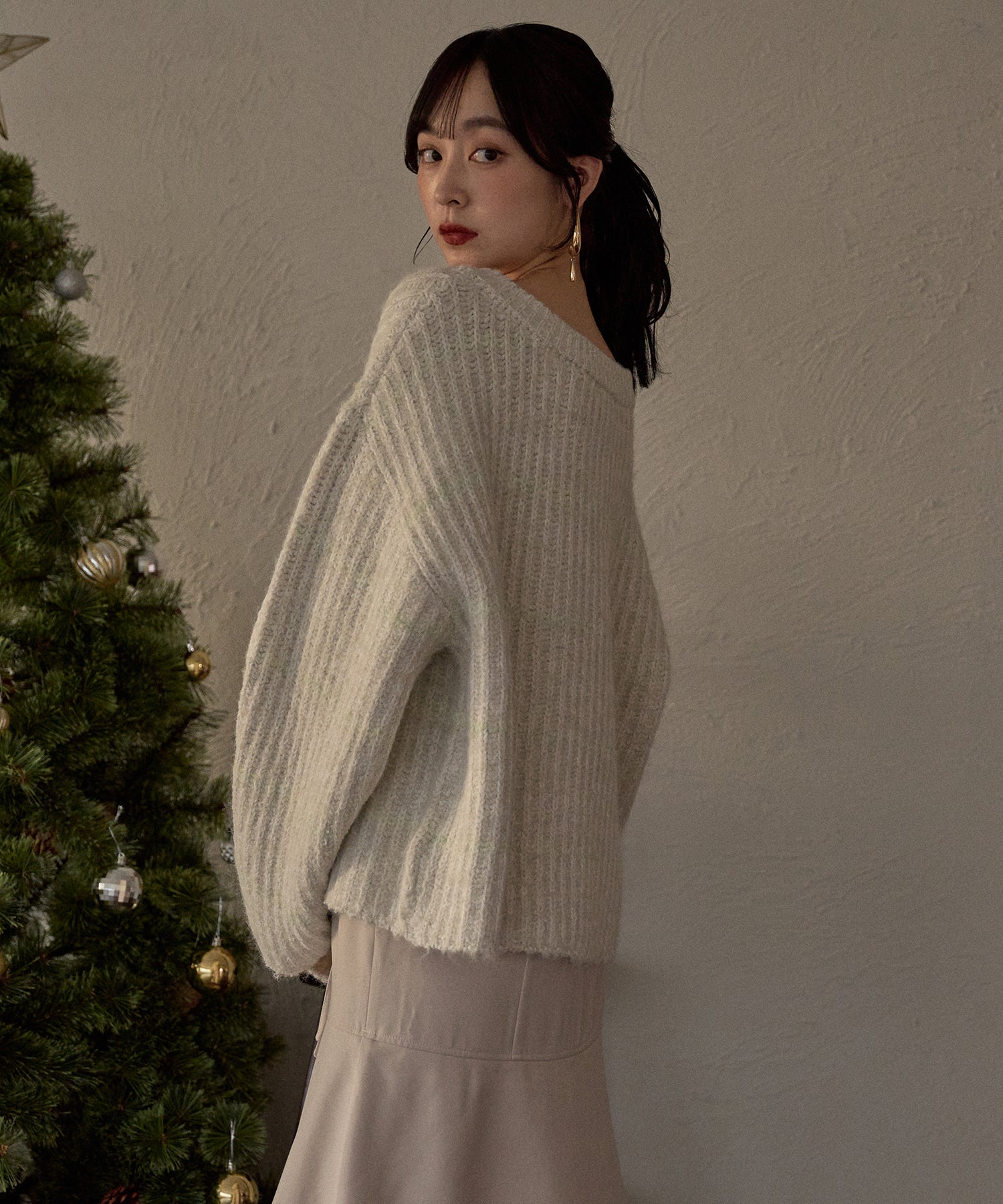 肉厚なニット素材を使用し、暖かく着用ただけるアイテム。