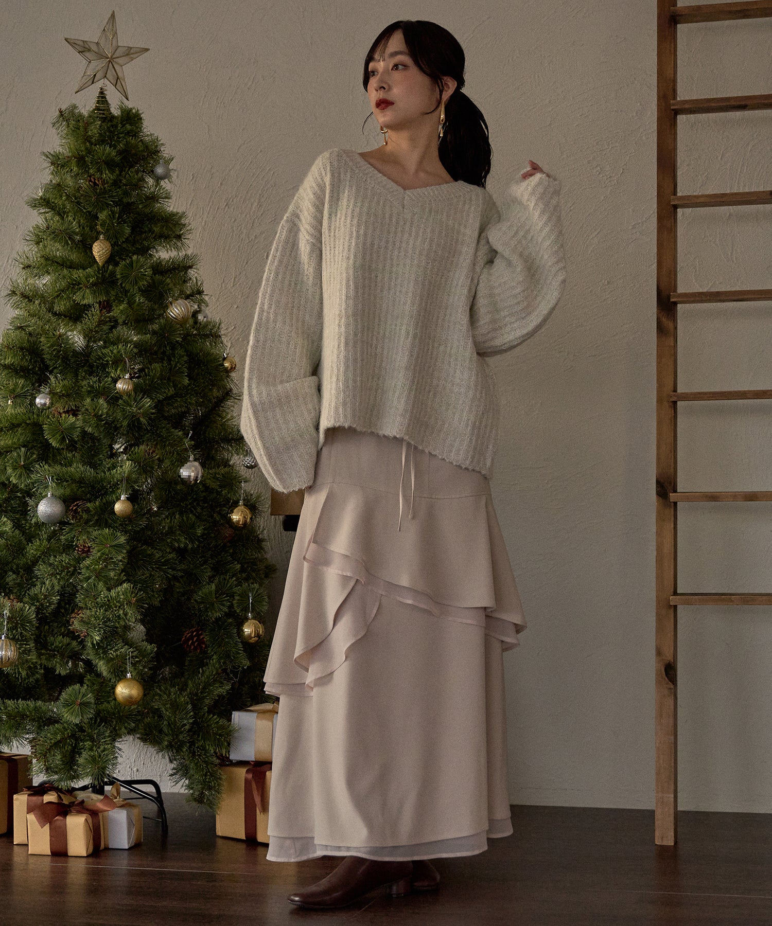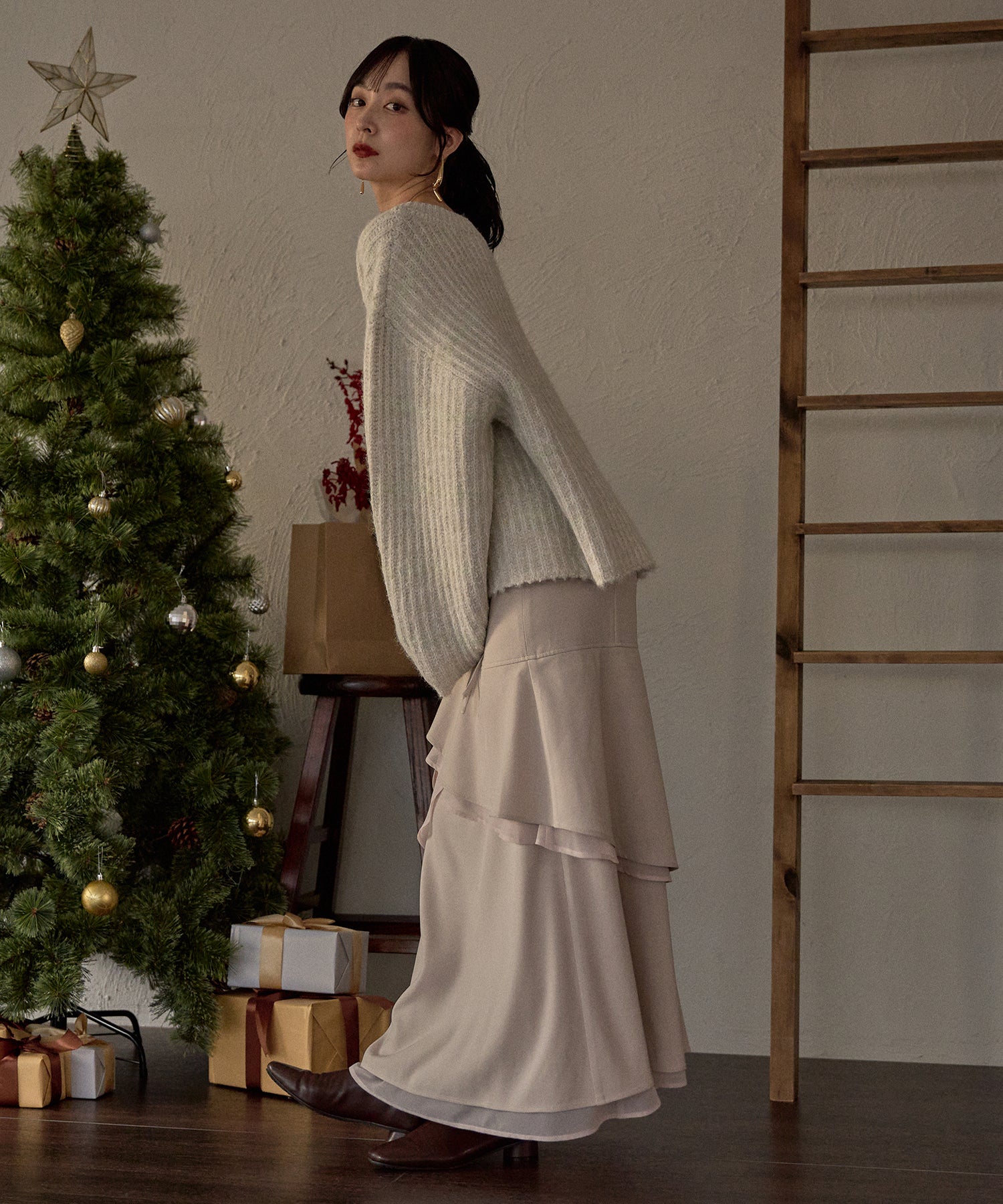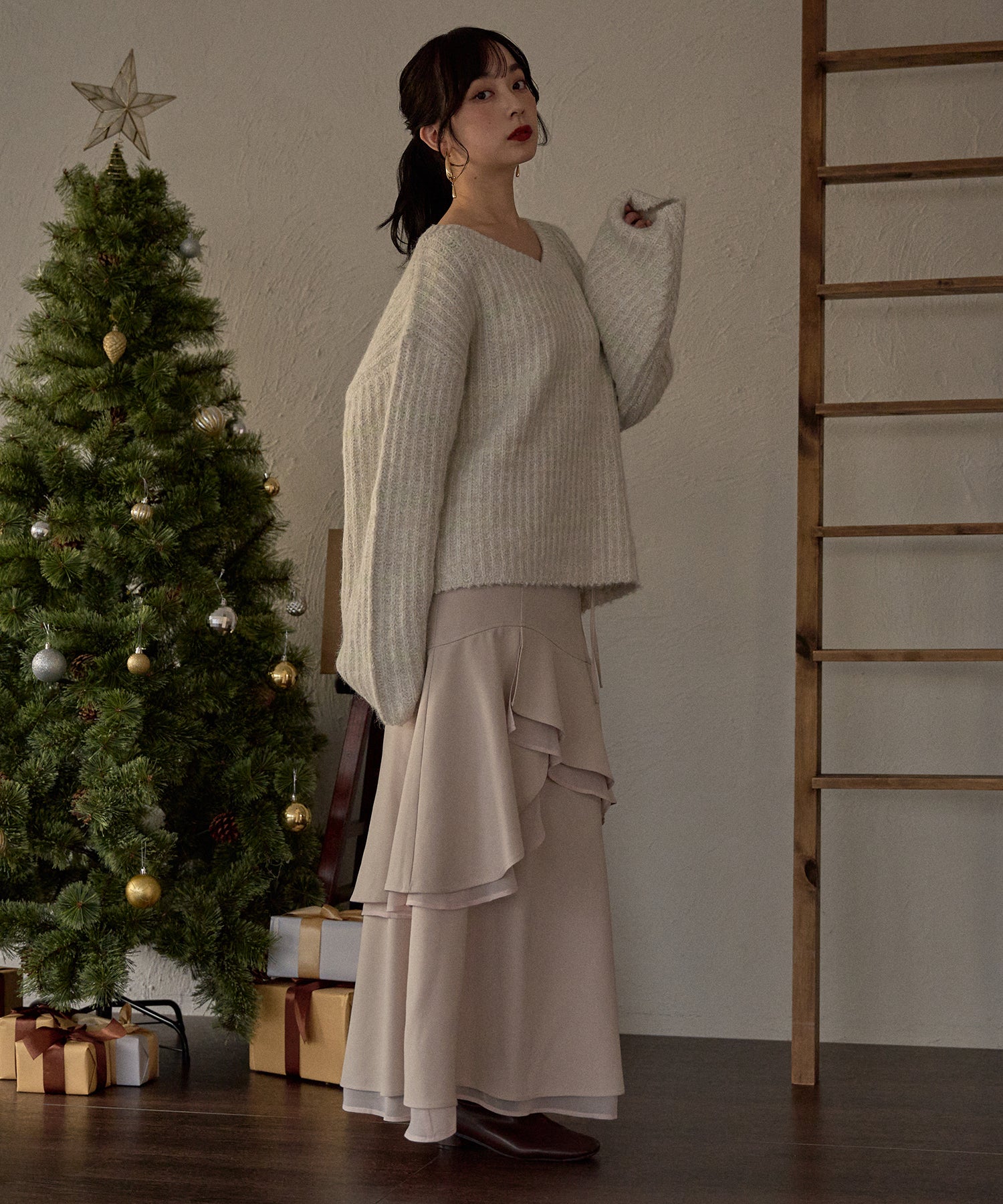 配色になったボーダーがカジュアルになりすぎず女性らしさのある印象に。
