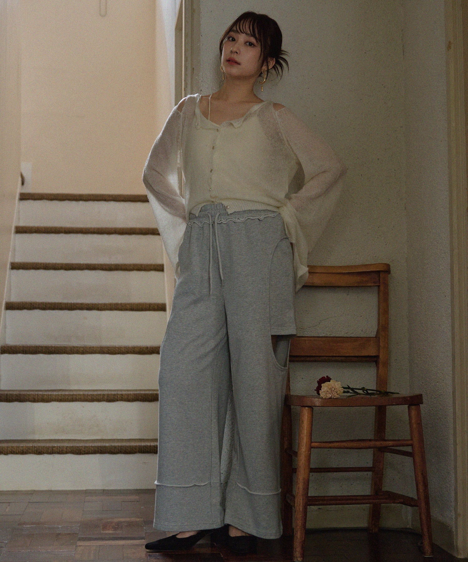 ワイドながらも女性らしいアイテム。