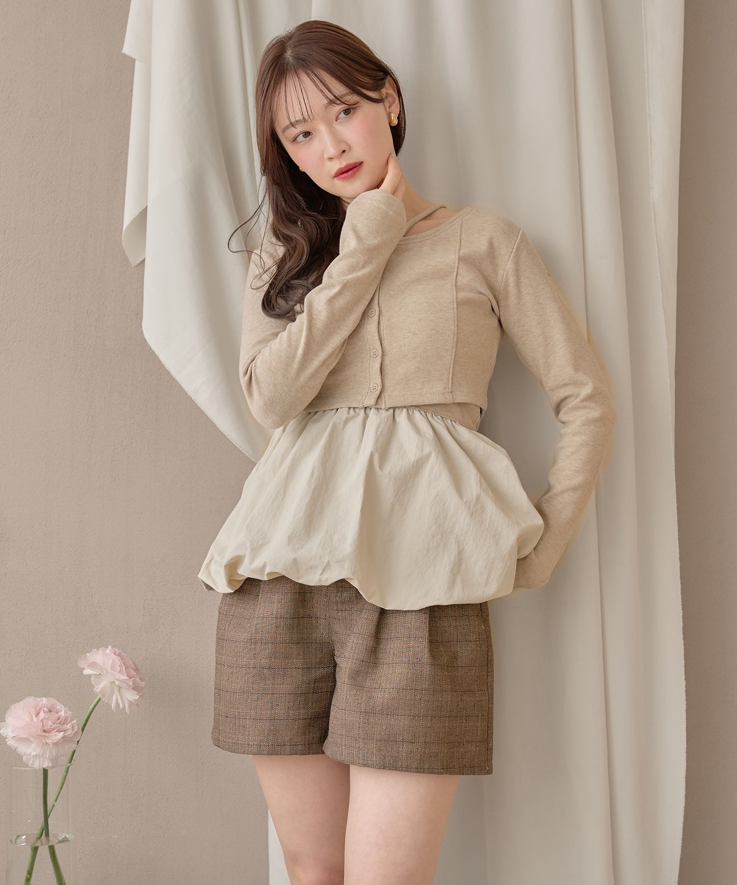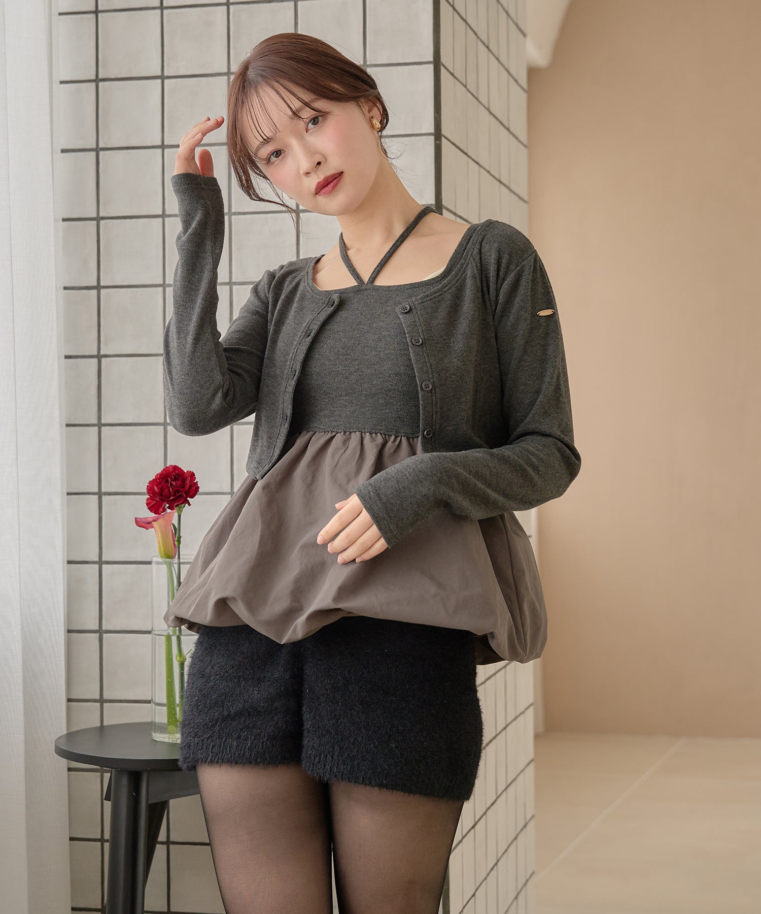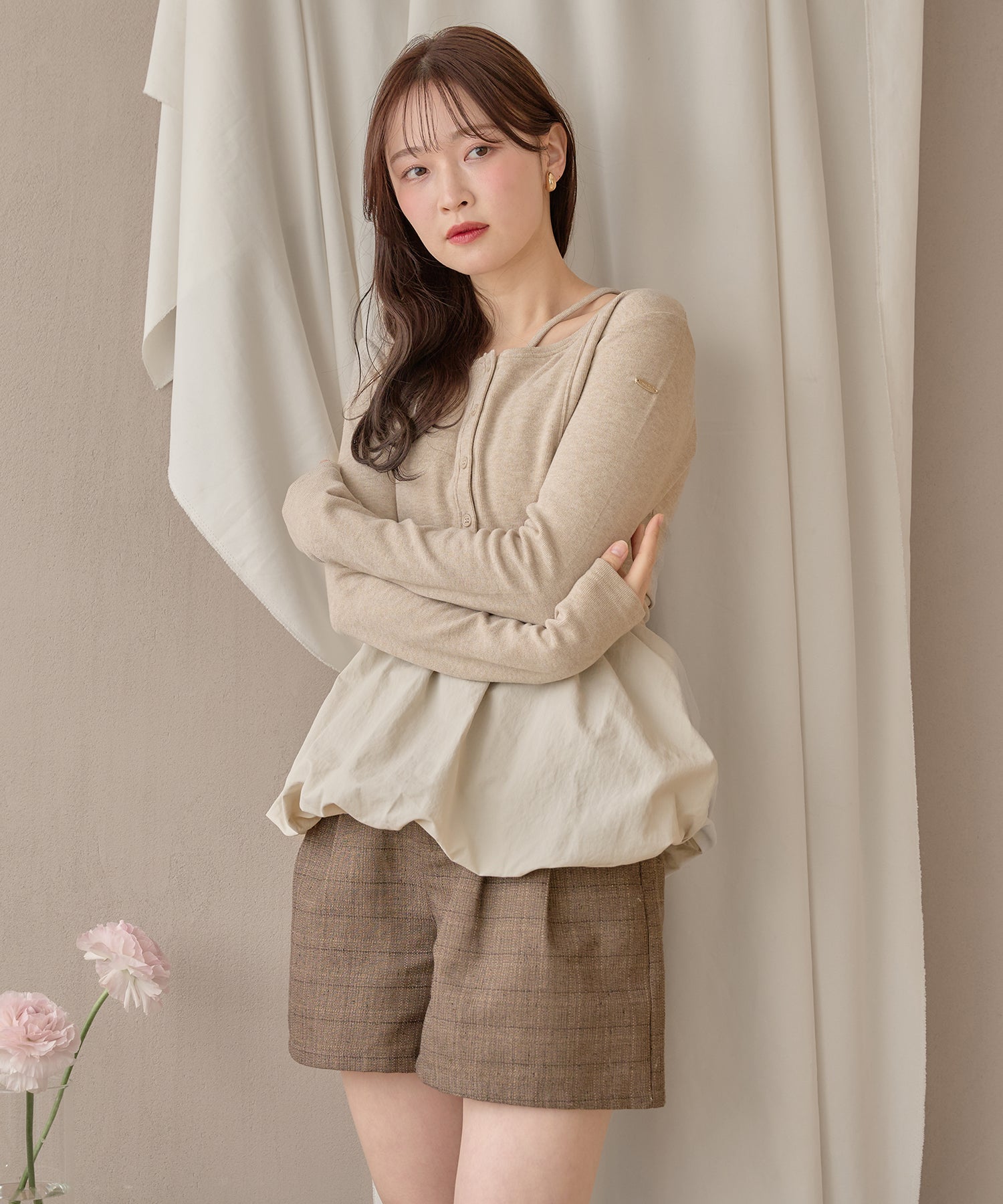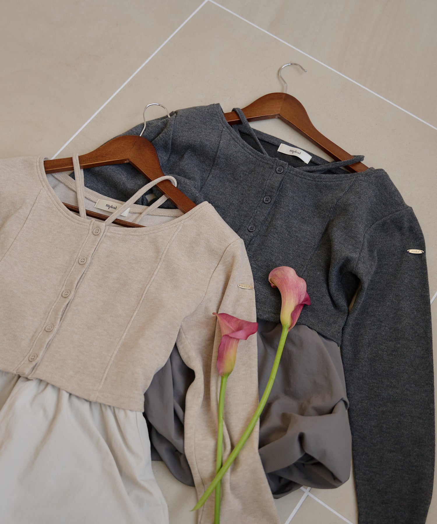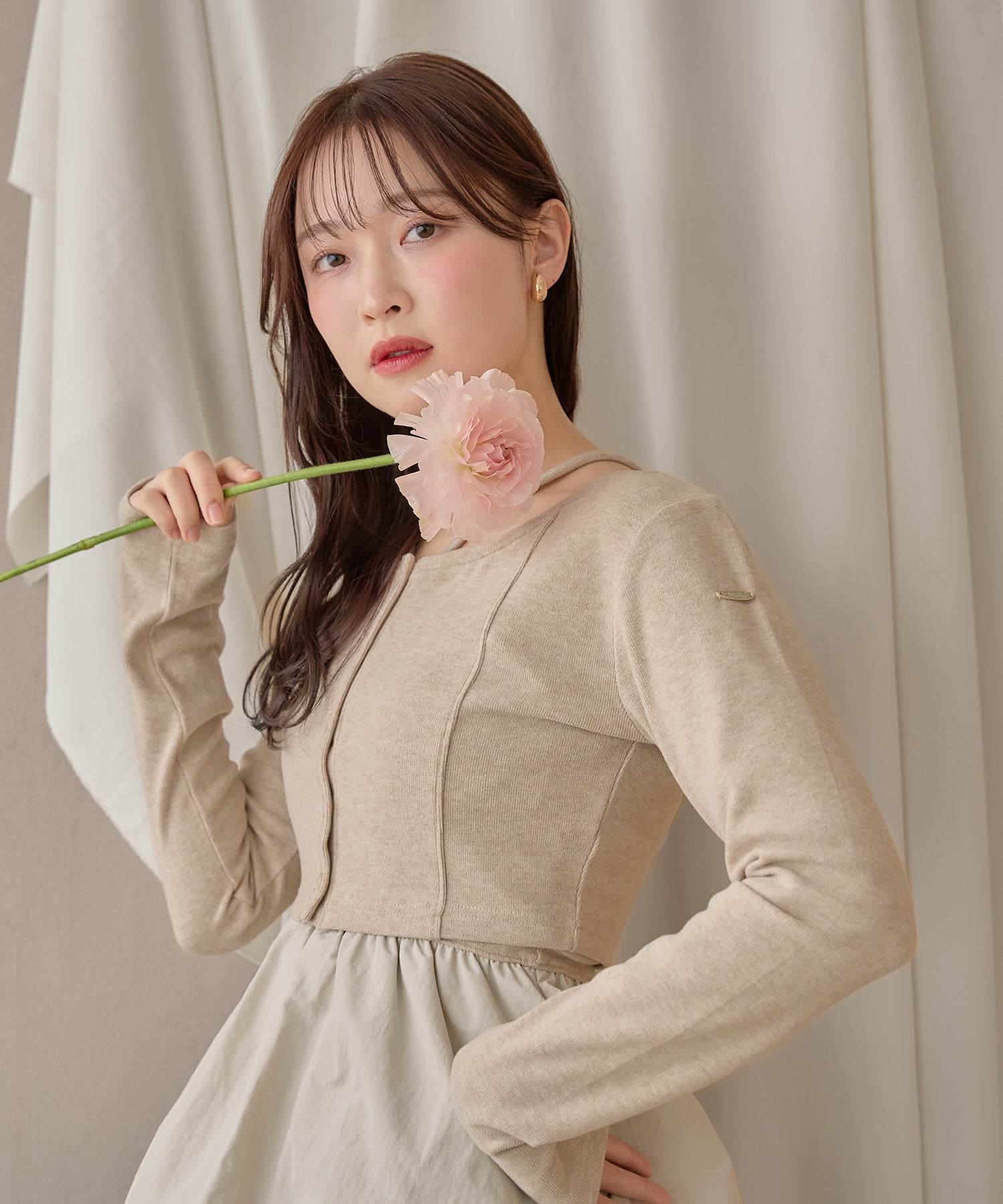 別々での着用もでき、カーディガンをインナー使いするなど着回し力が期待できるセットアイテムです。