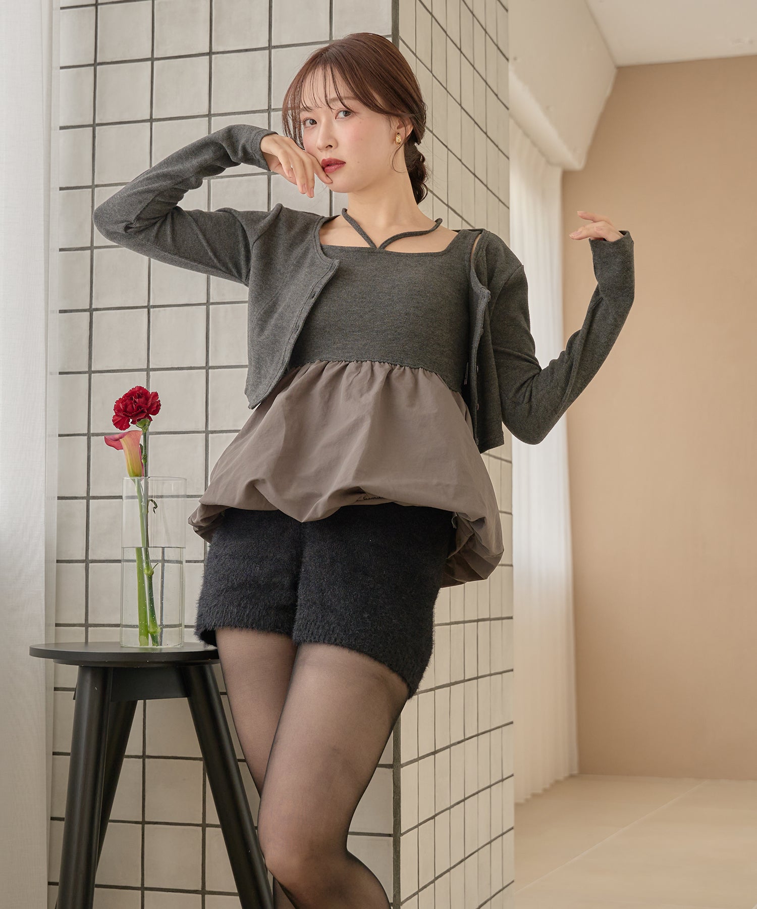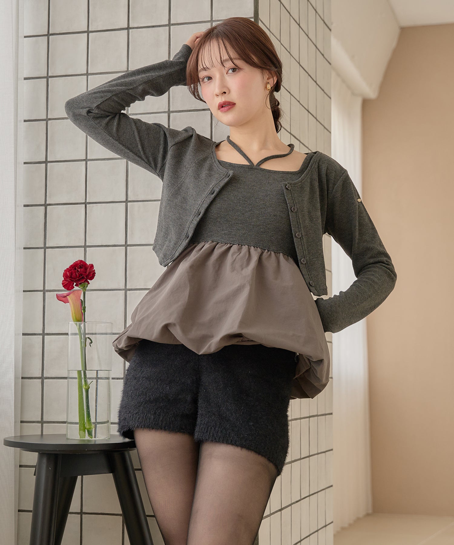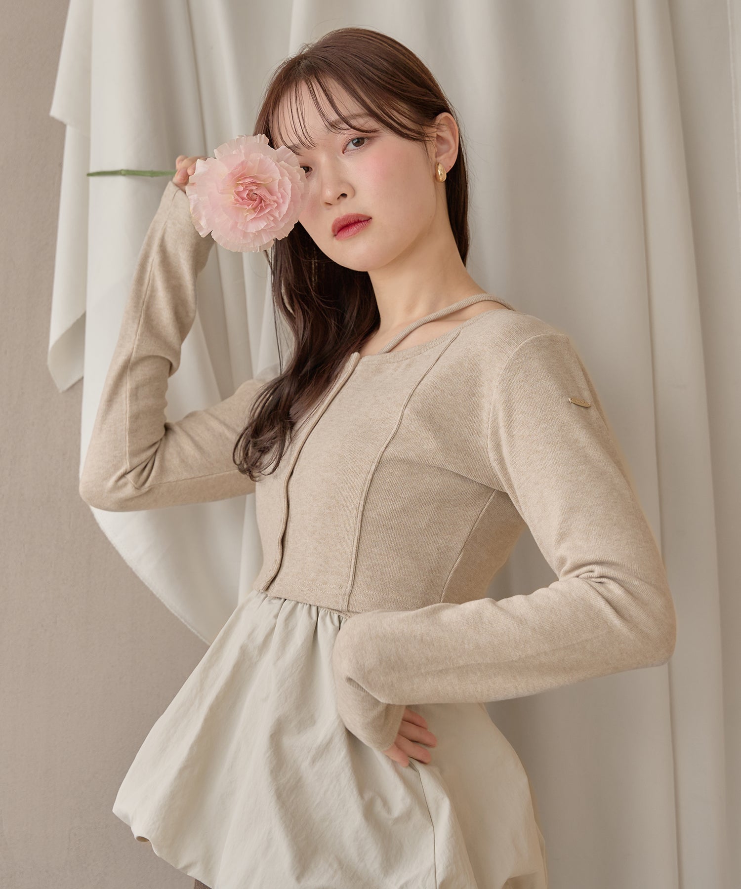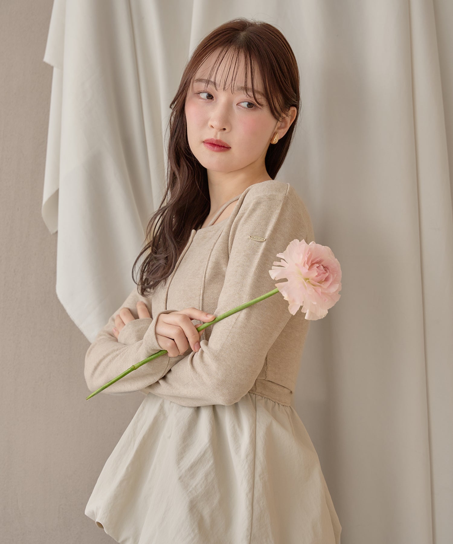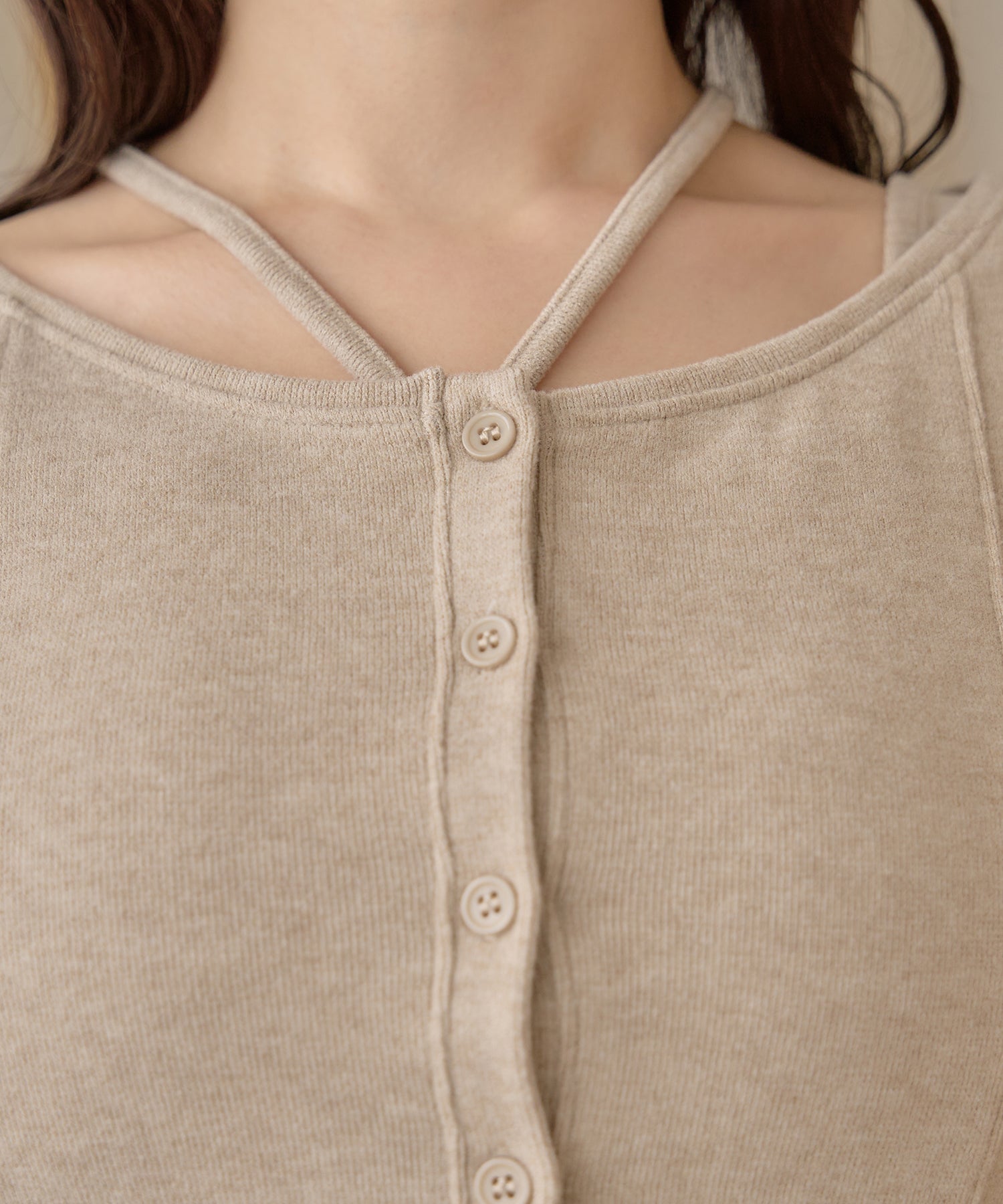 別々での着用もでき、カーディガンをインナー使いするなど着回し力が期待できるセットアイテムです。