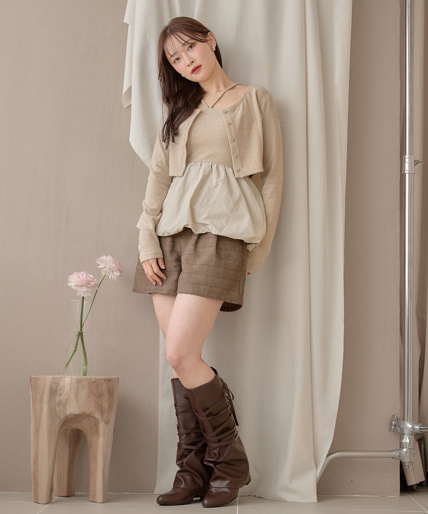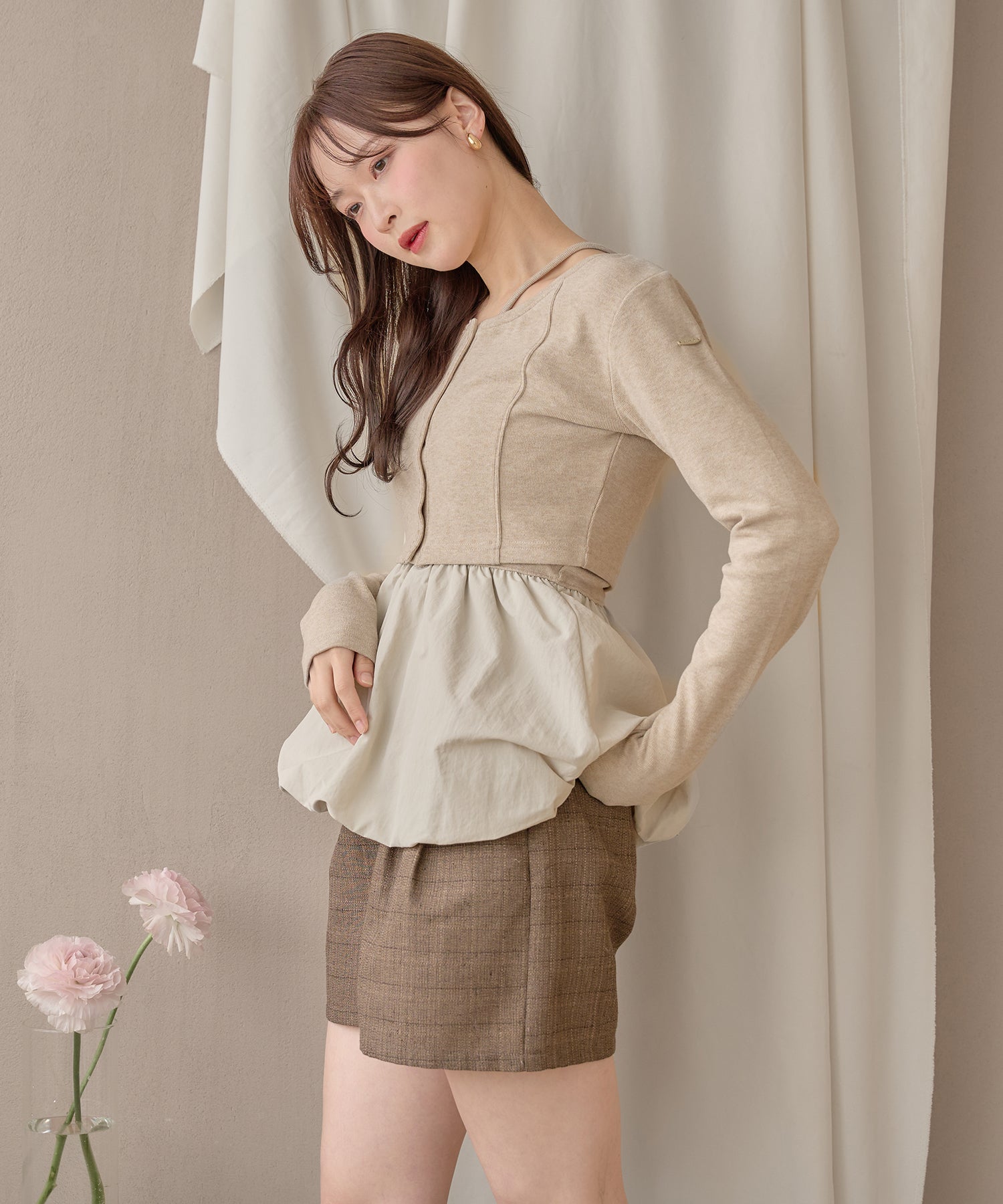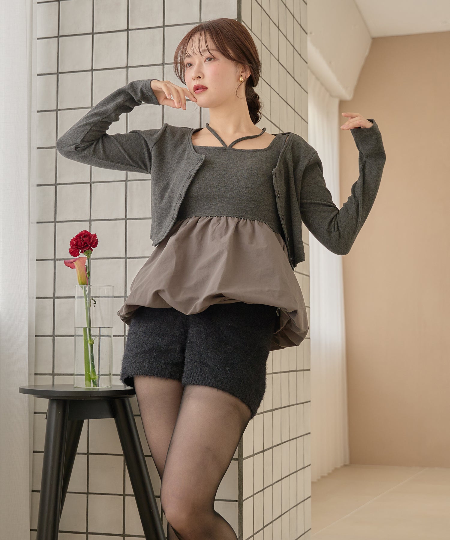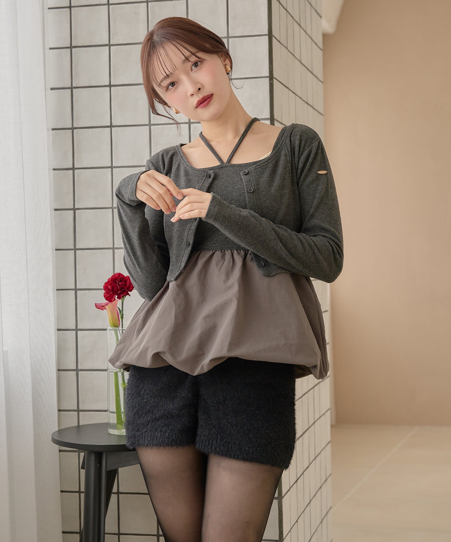 別々での着用もでき、カーディガンをインナー使いするなど着回し力が期待できるセットアイテムです。