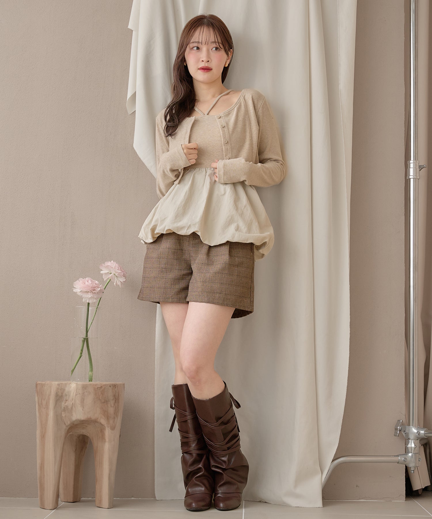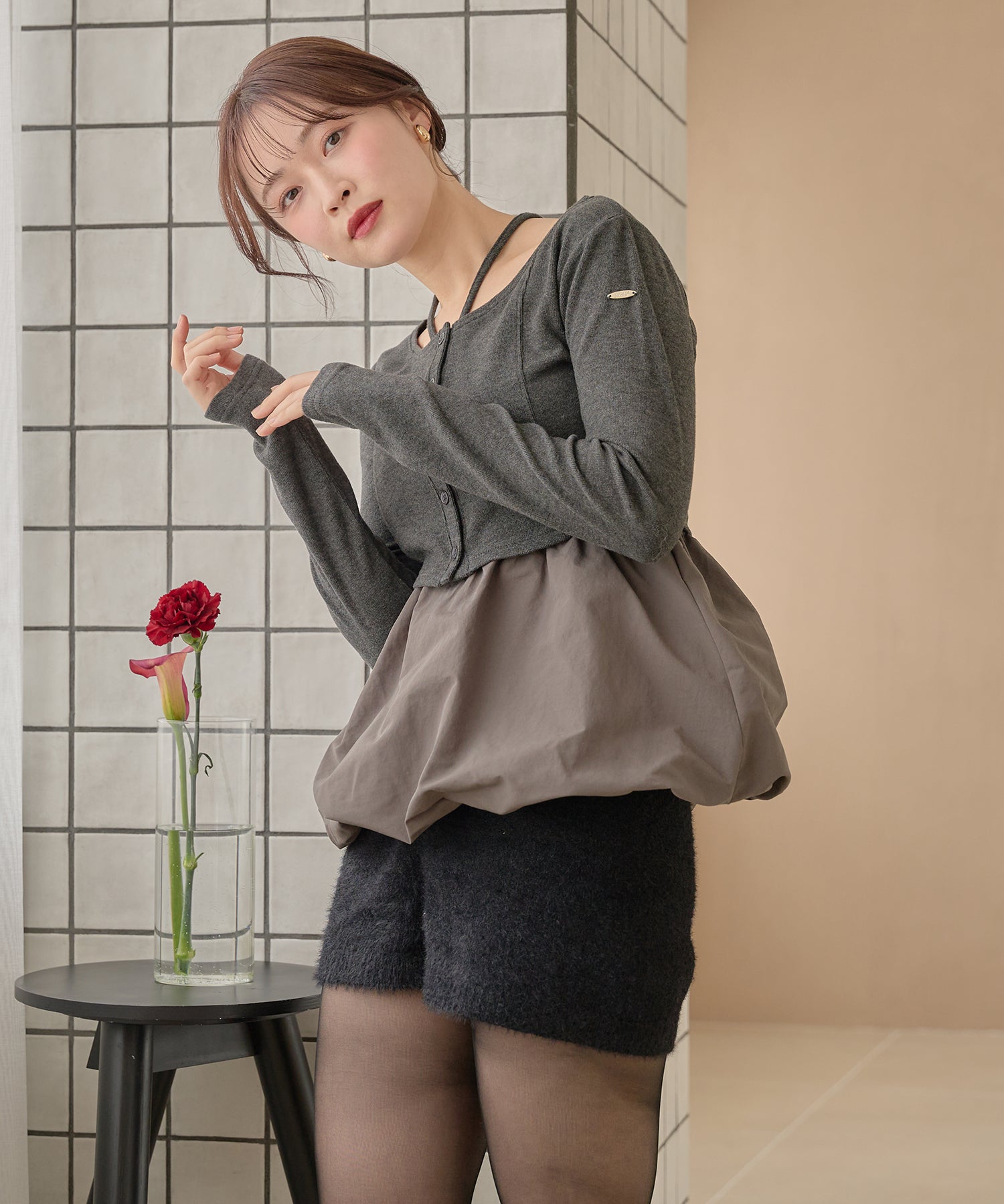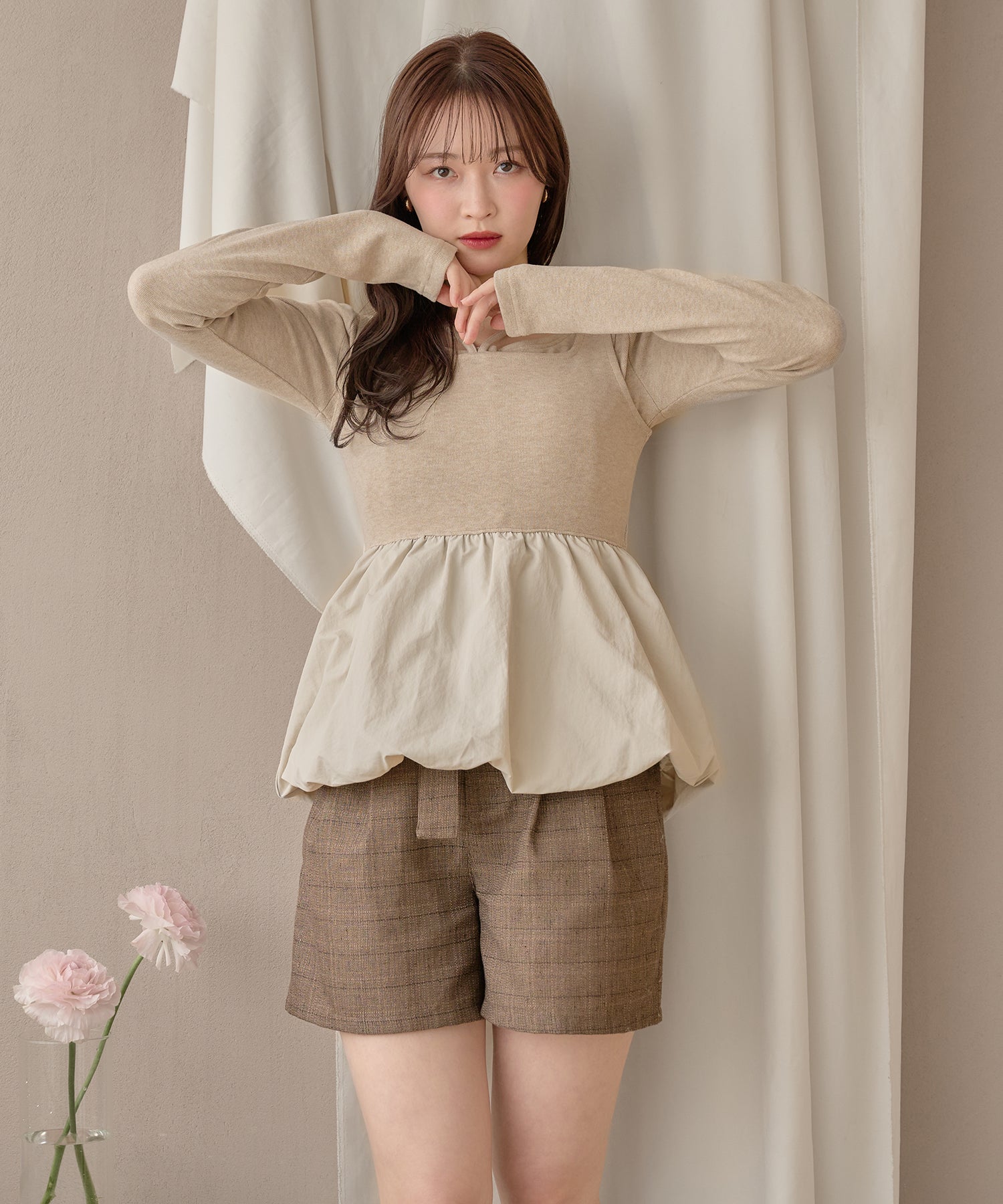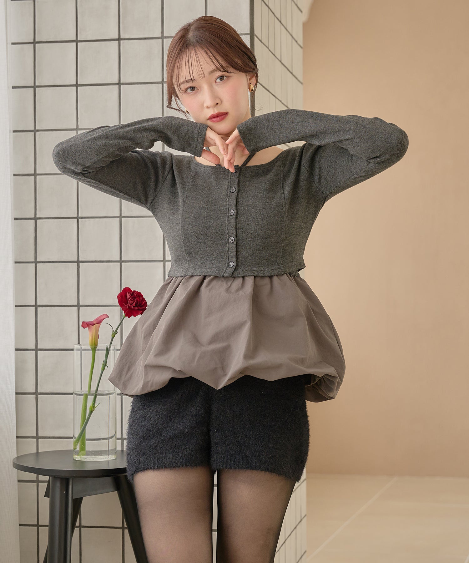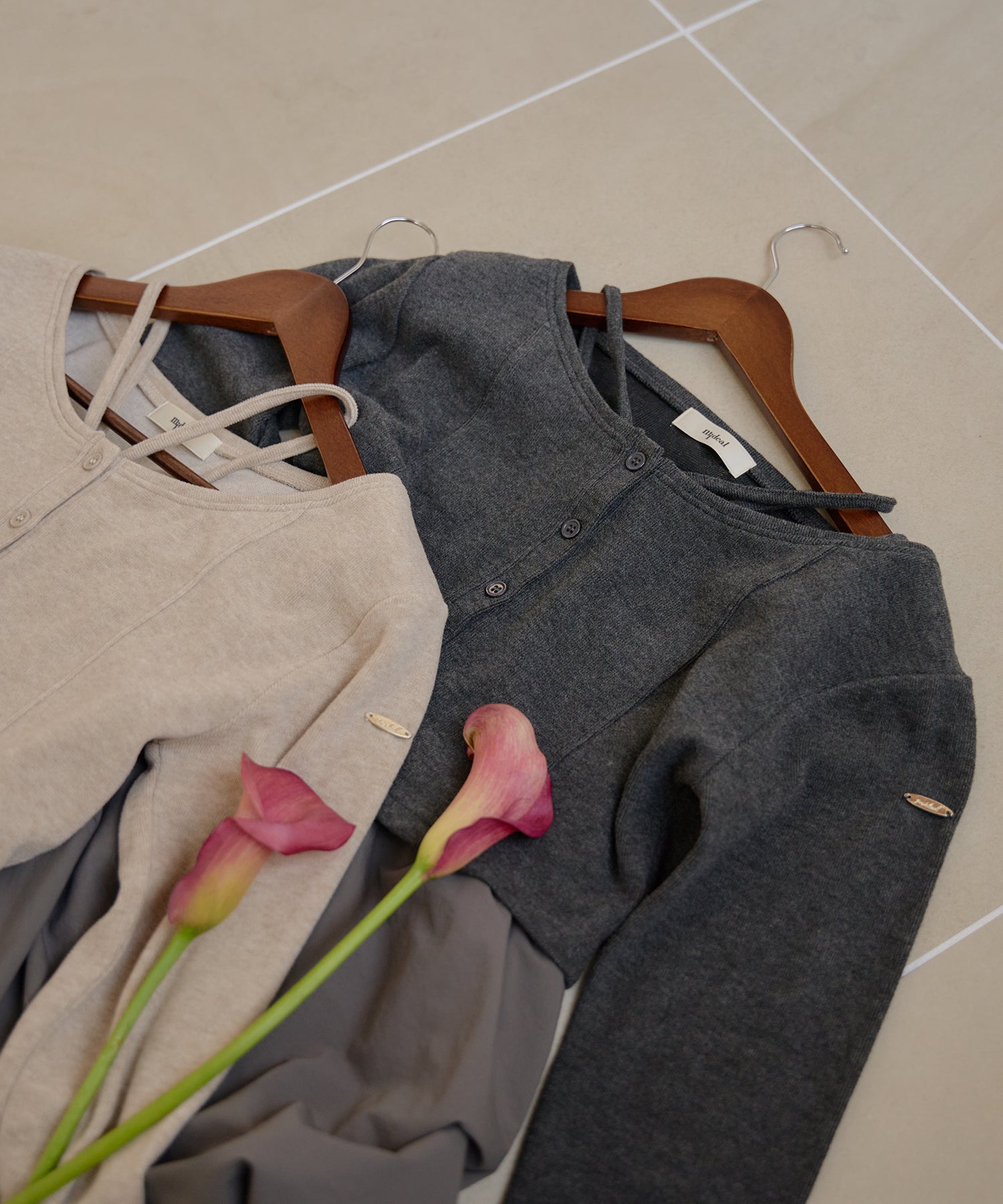 別々での着用もでき、カーディガンをインナー使いするなど着回し力が期待できるセットアイテムです。