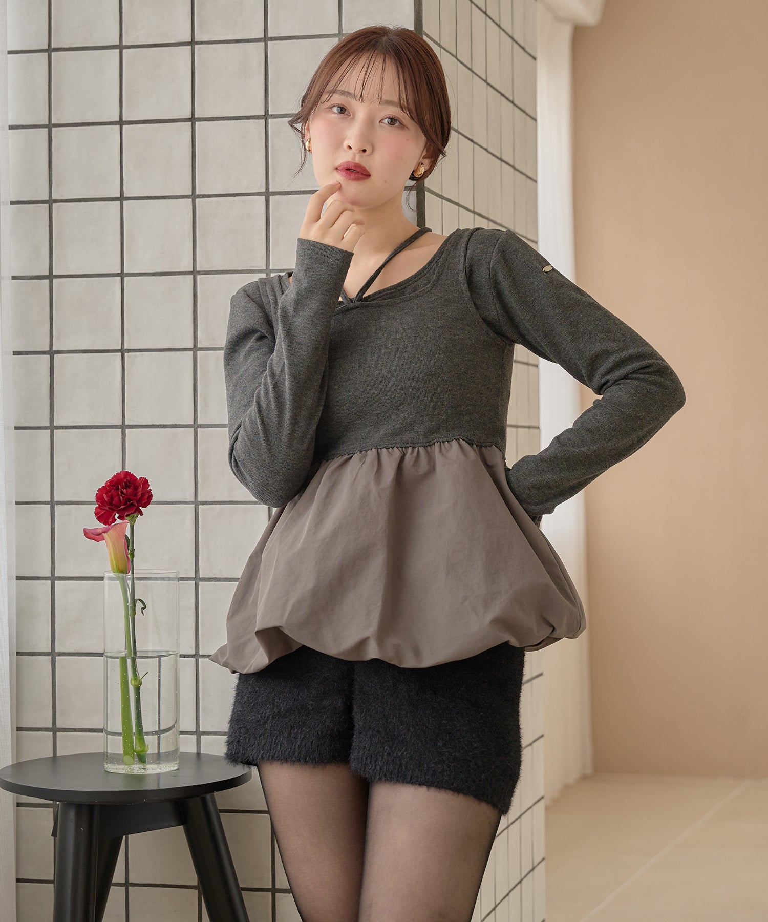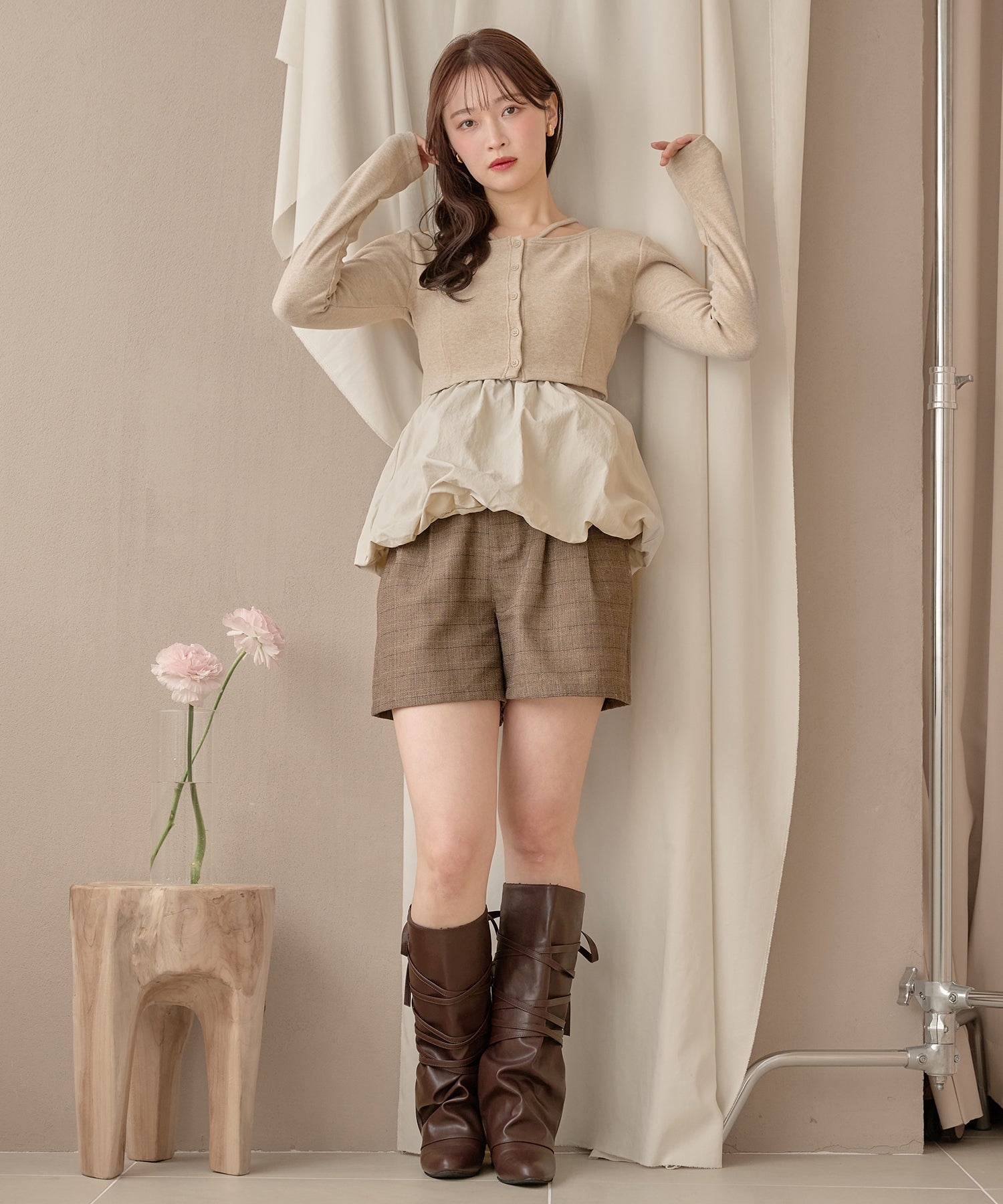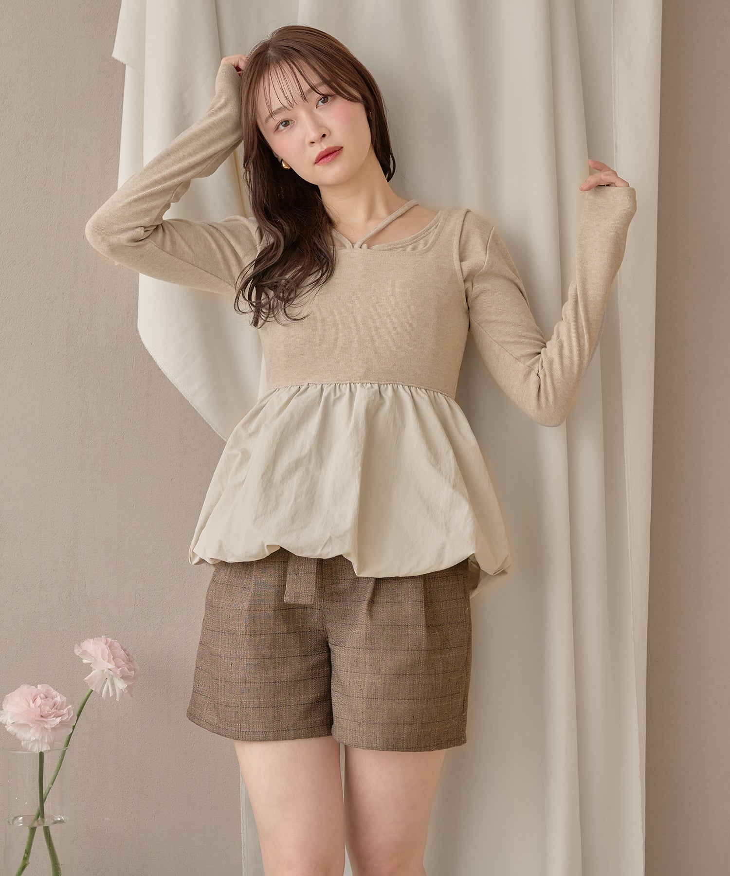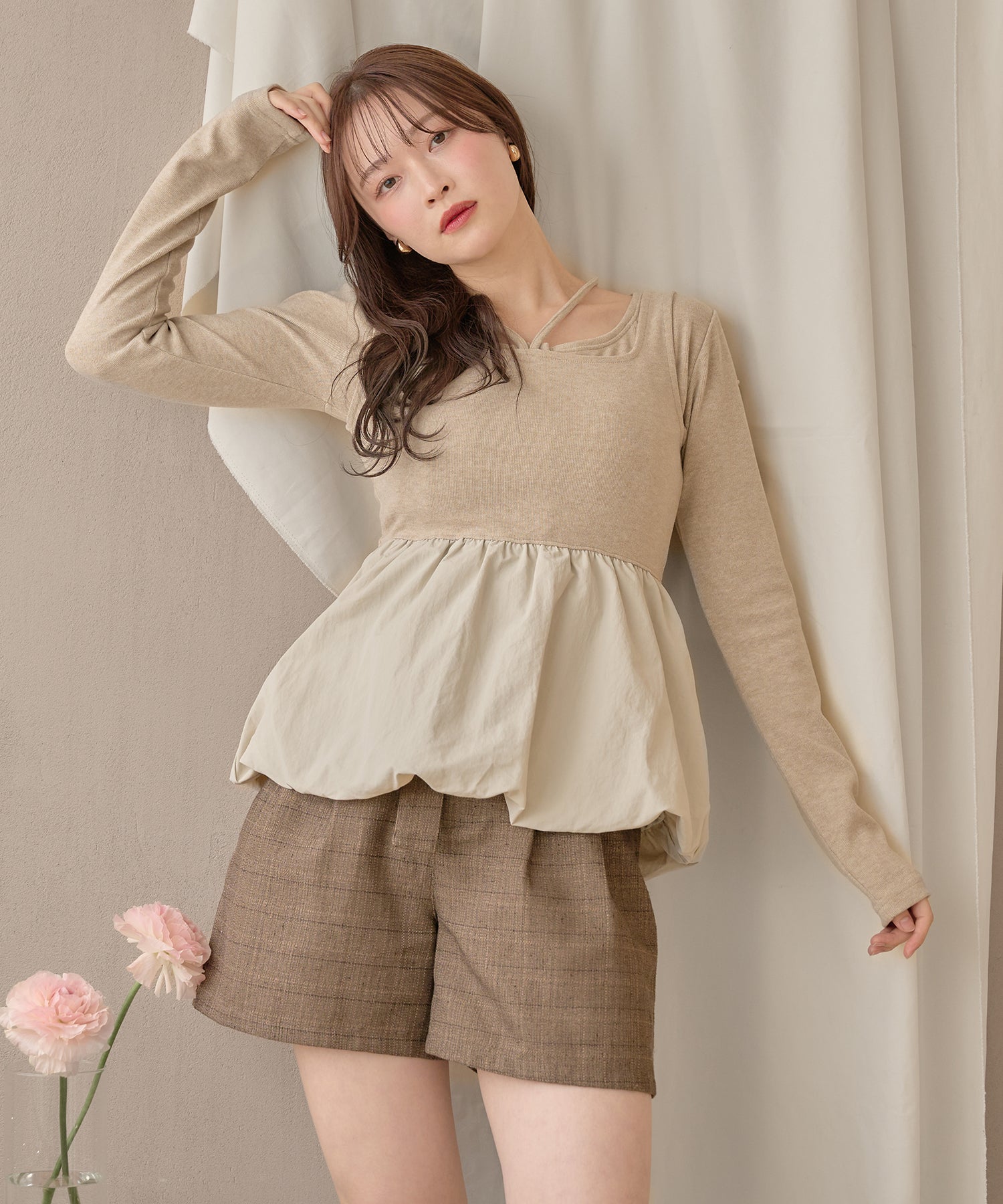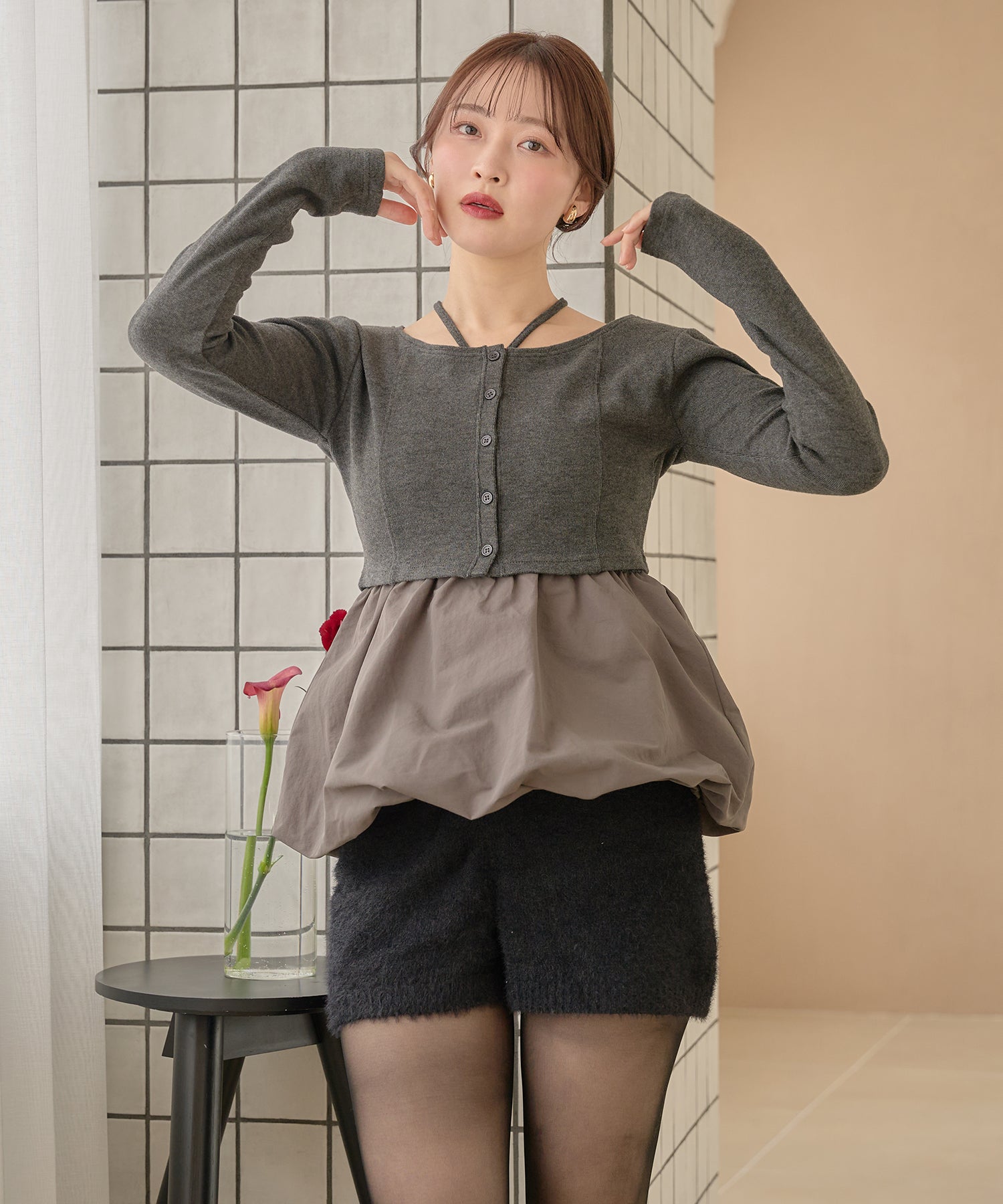 別々での着用もでき、カーディガンをインナー使いするなど着回し力が期待できるセットアイテムです。