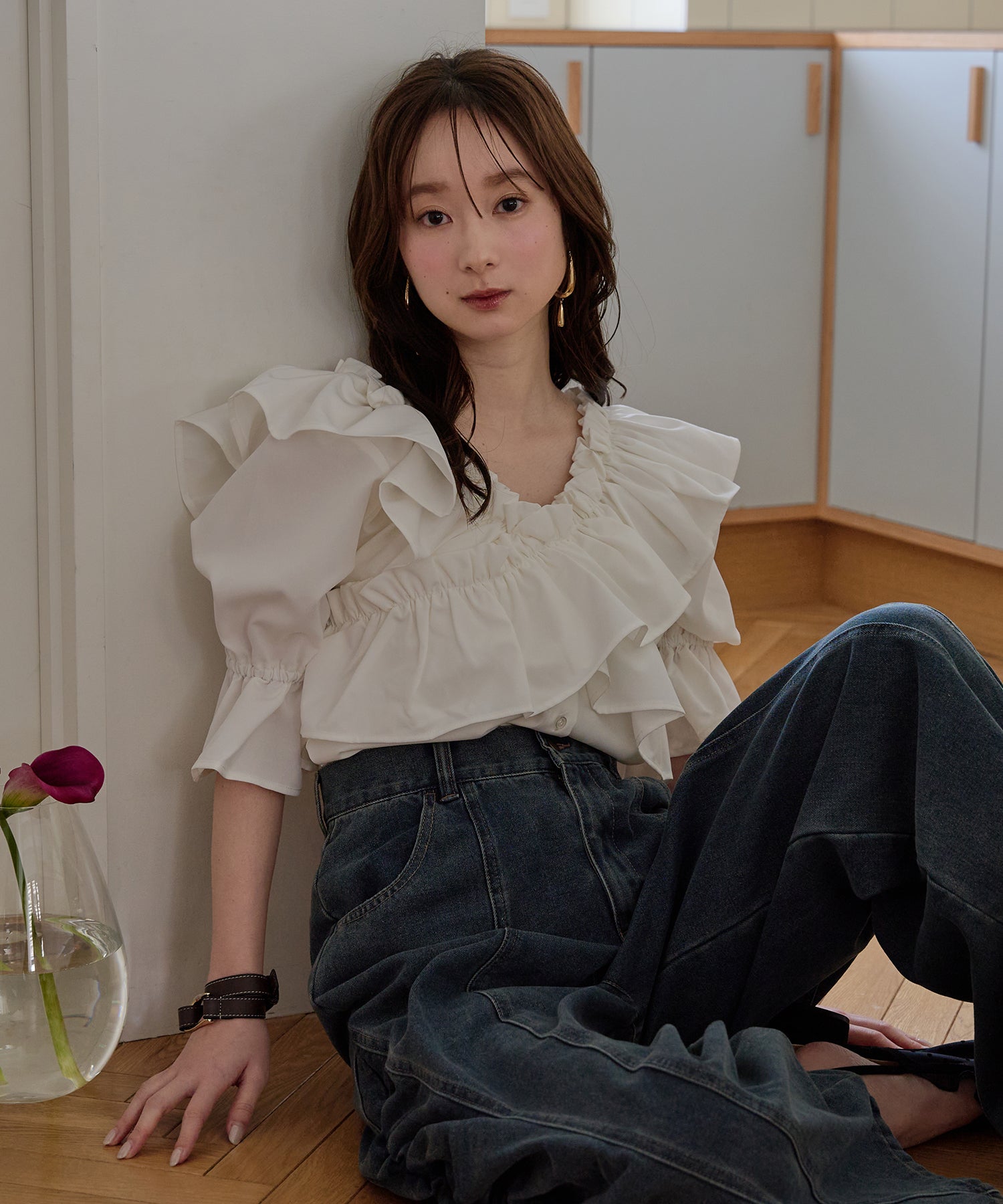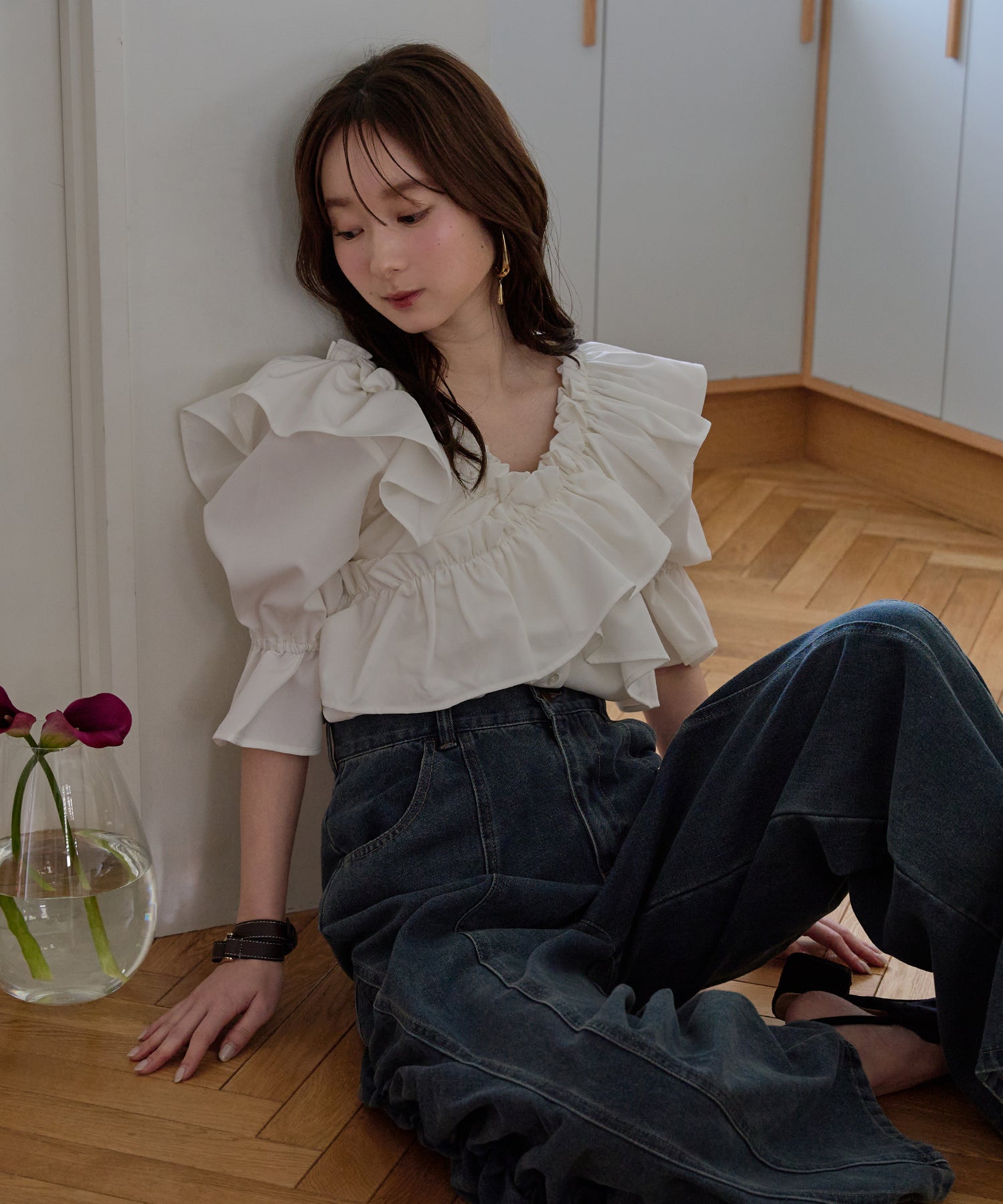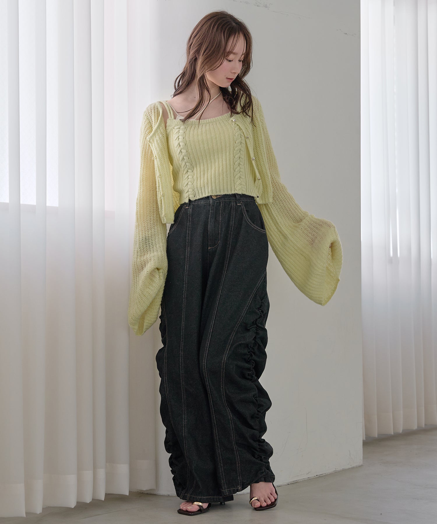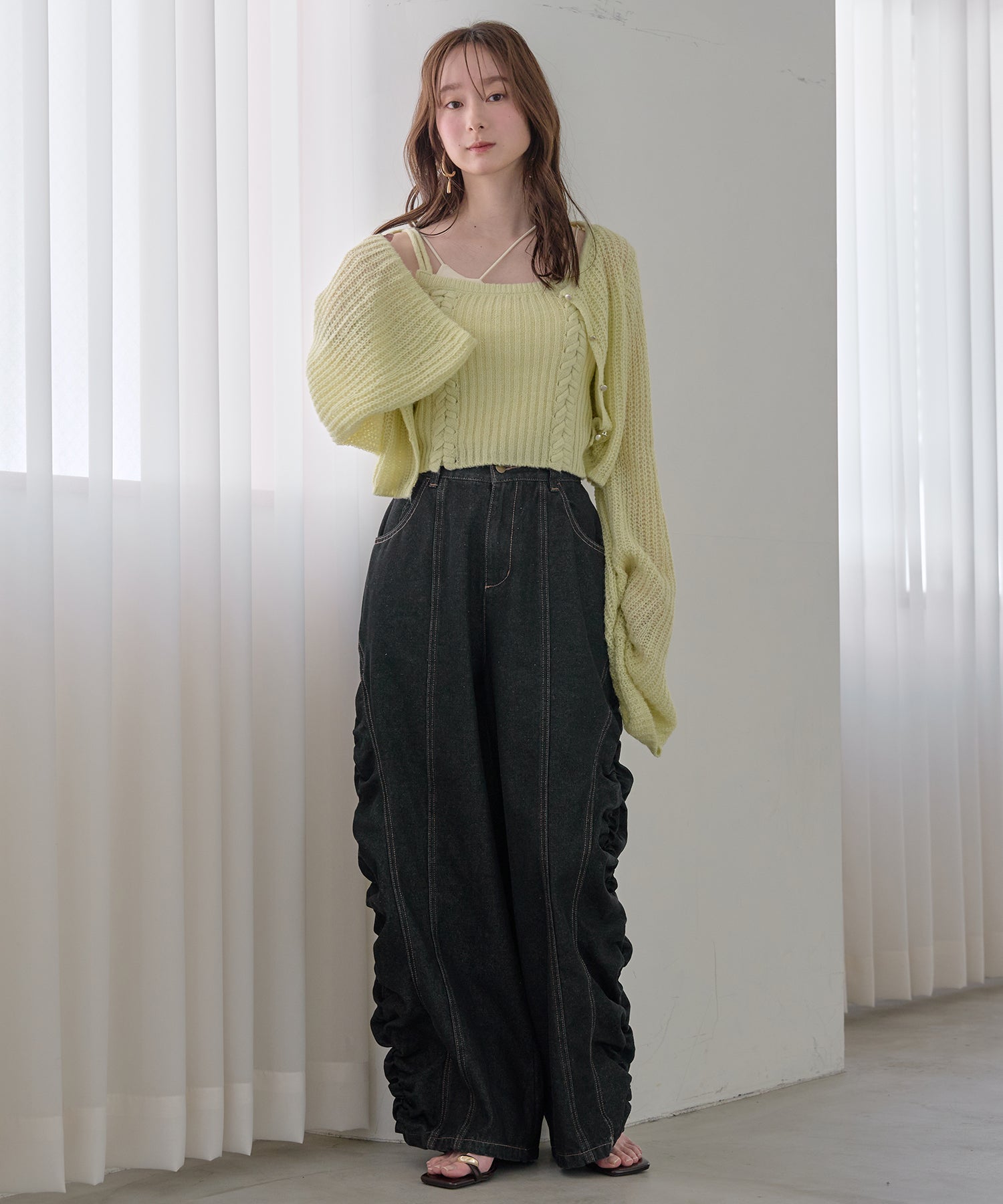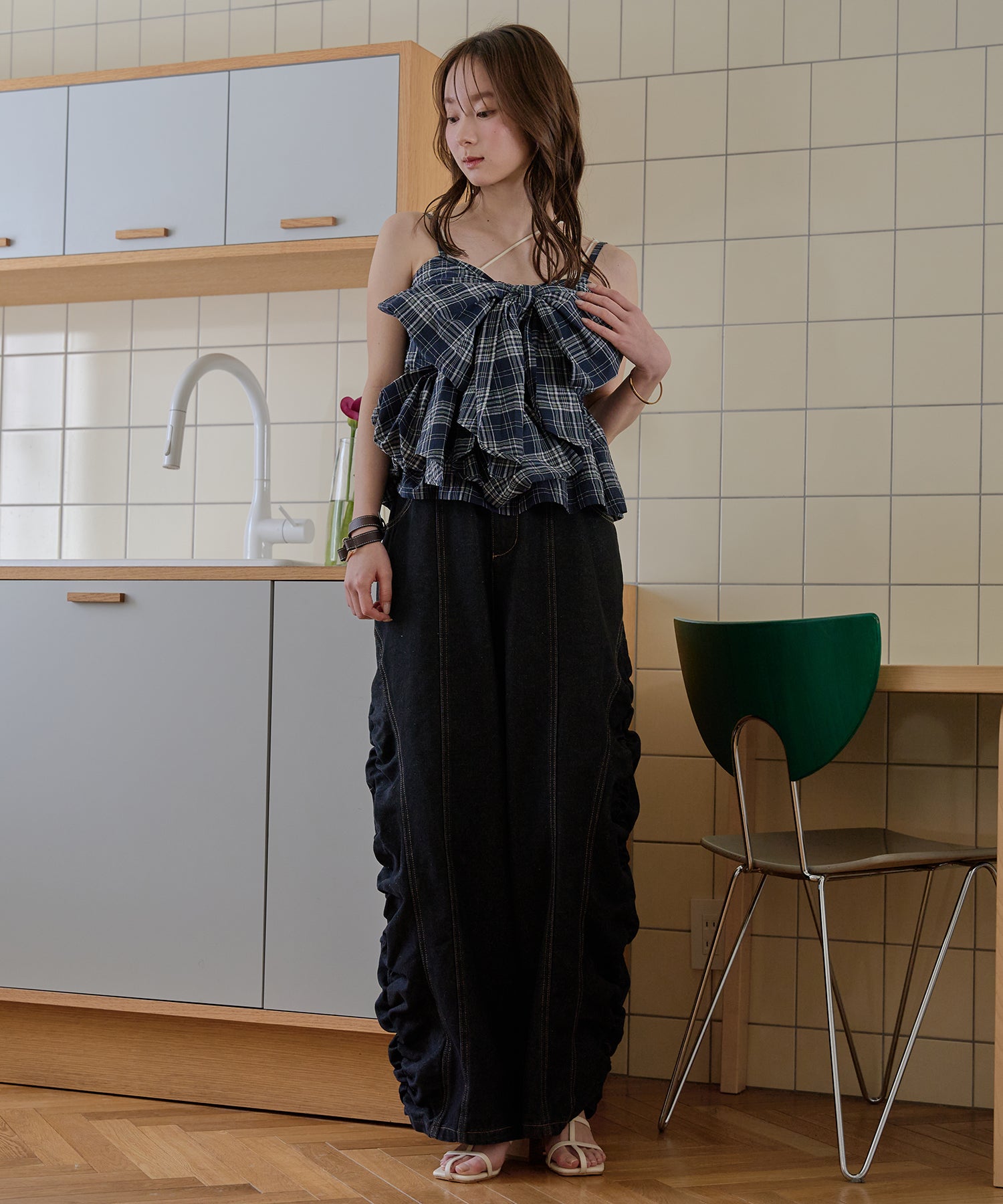ギャザー×カーブの他にないデニムパンツです。