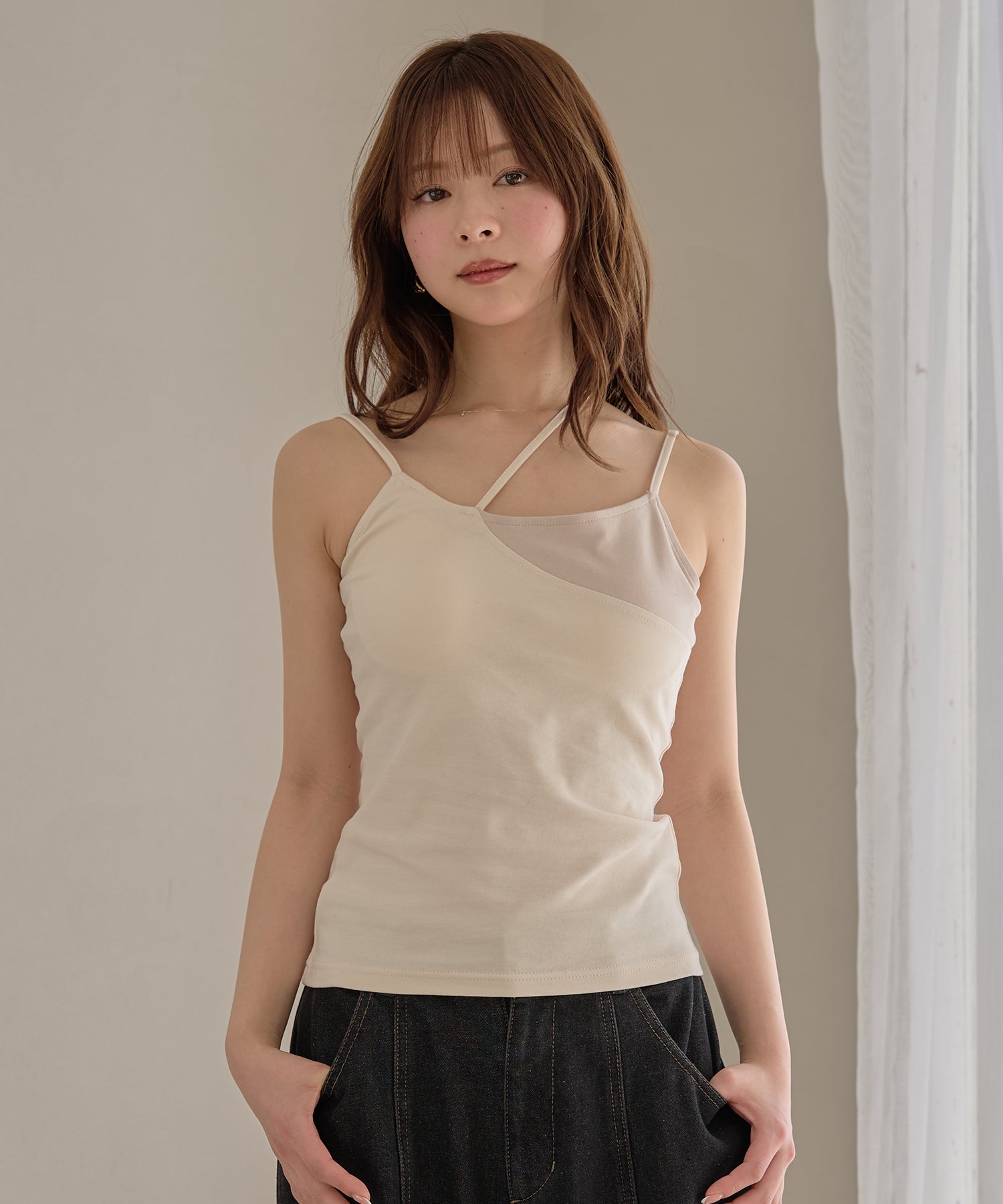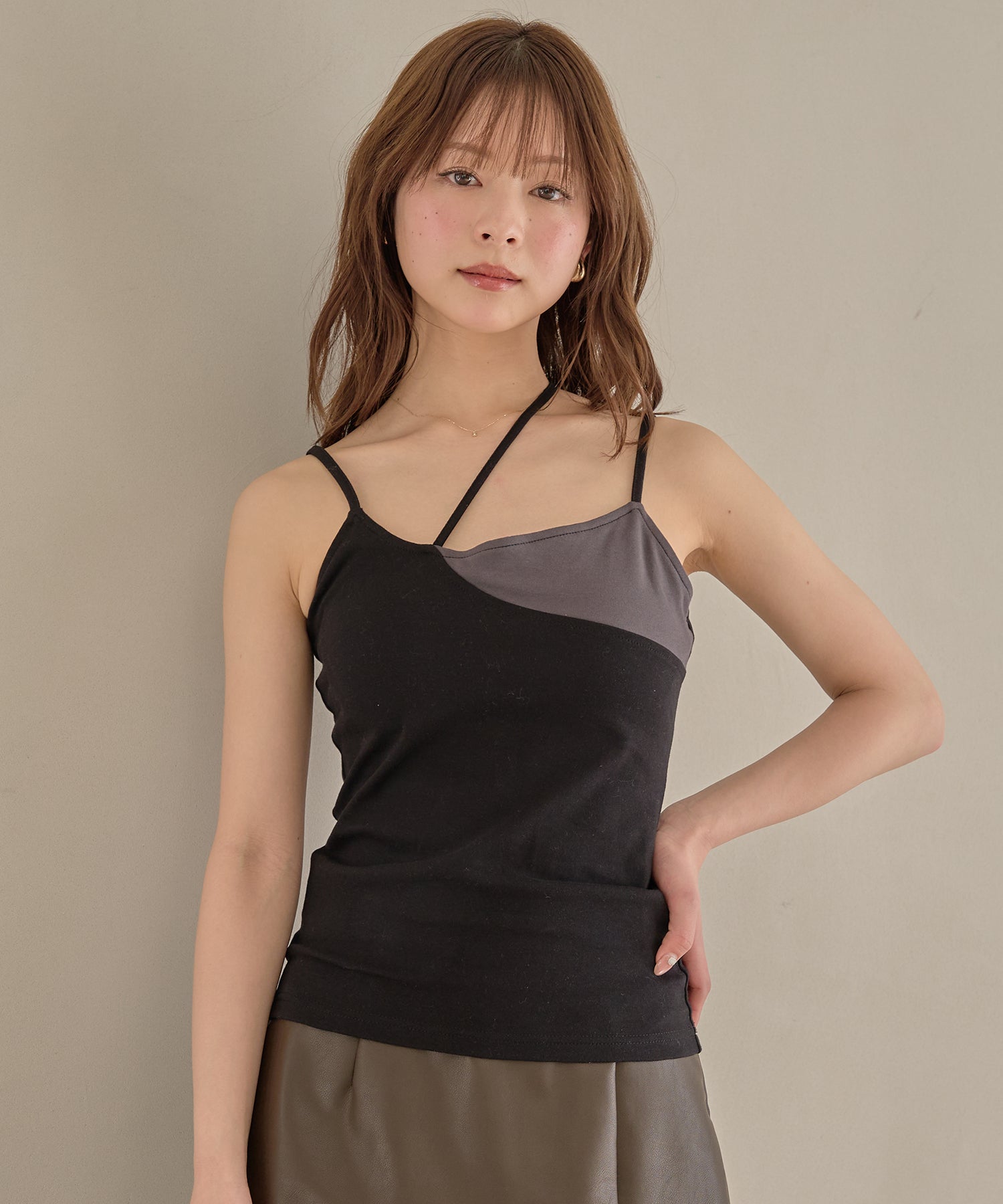 midealで大人気のクロスデザインのカップ付きキャミソール。