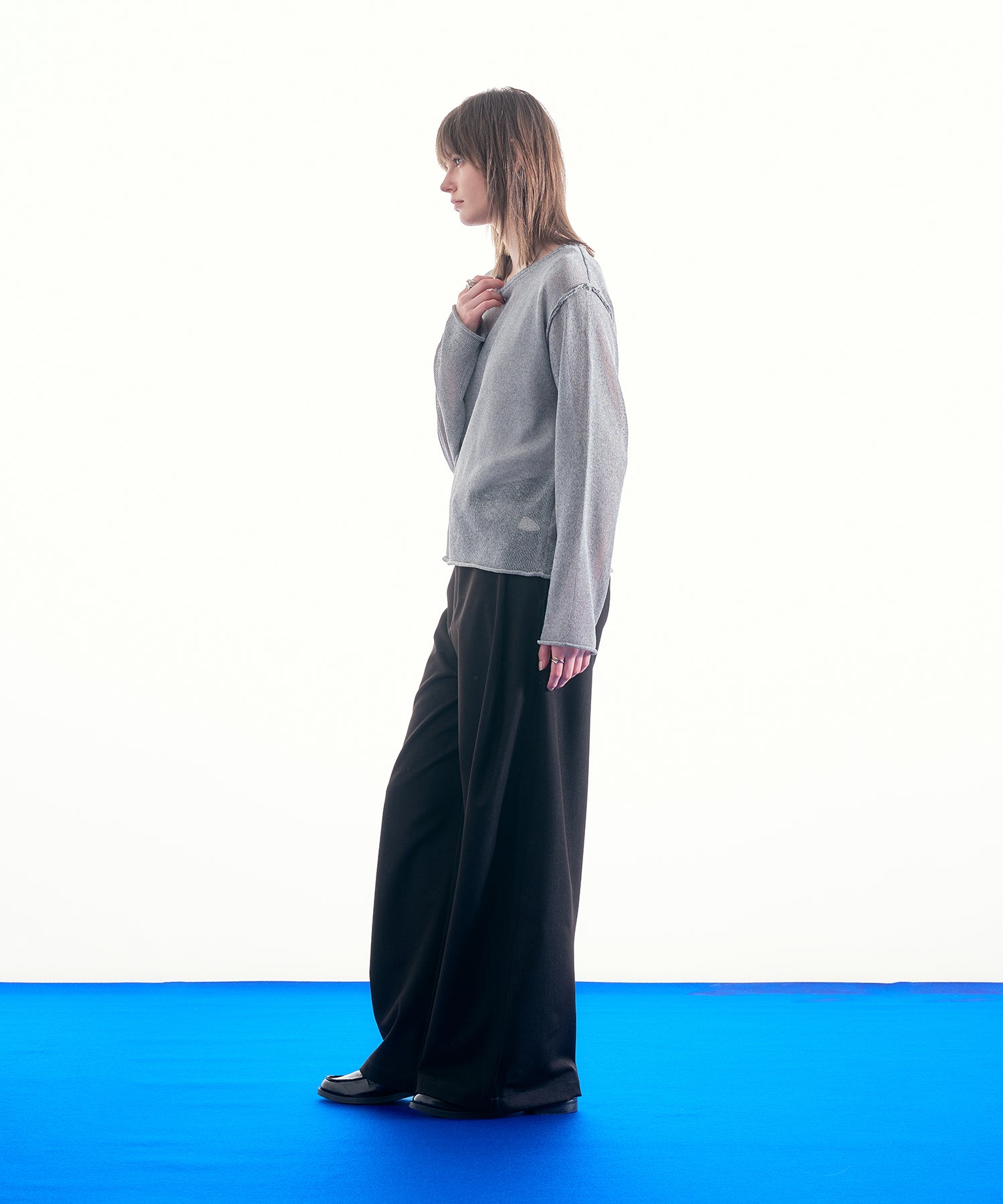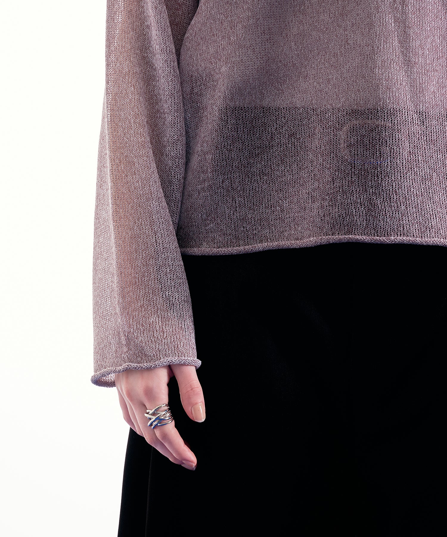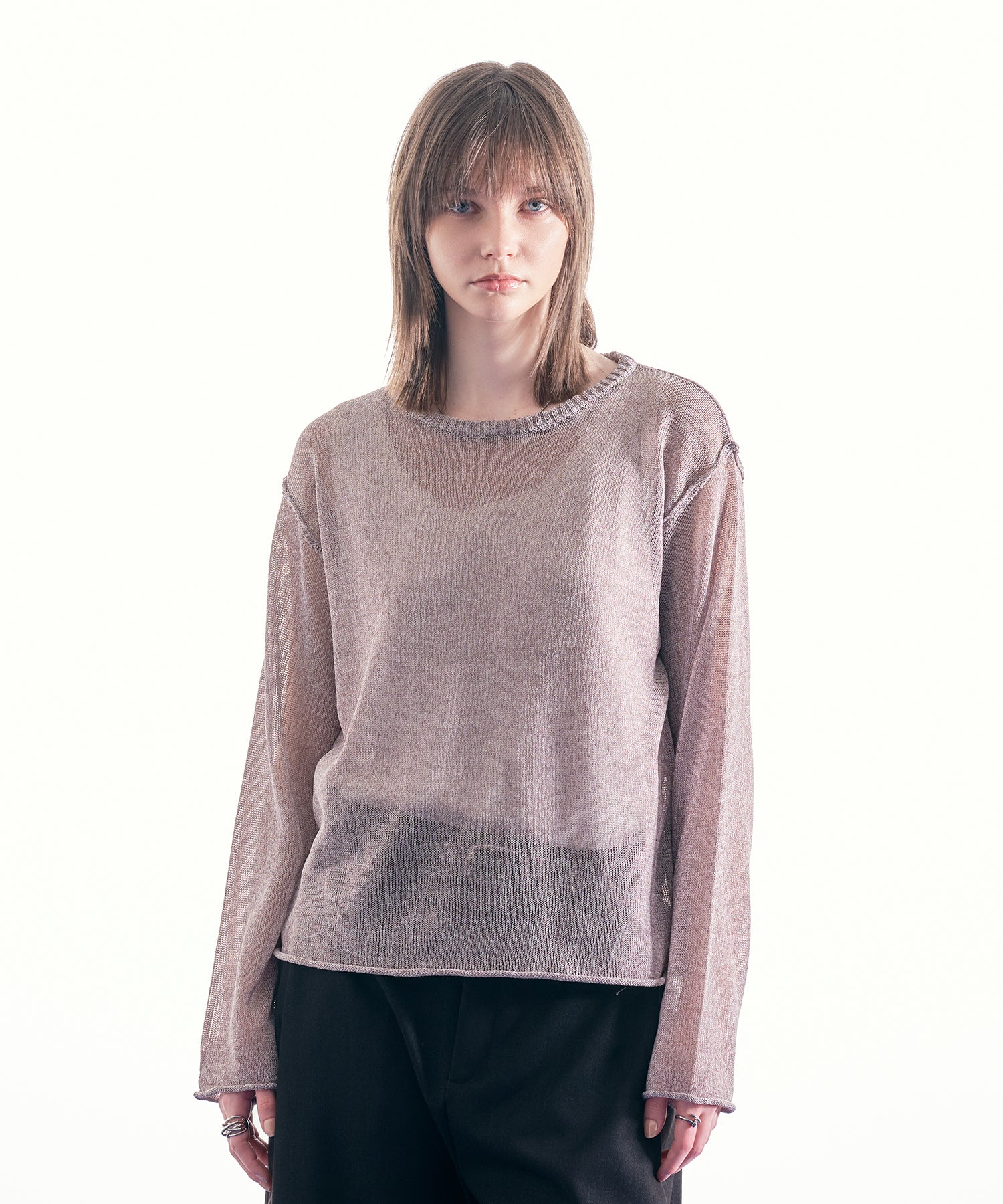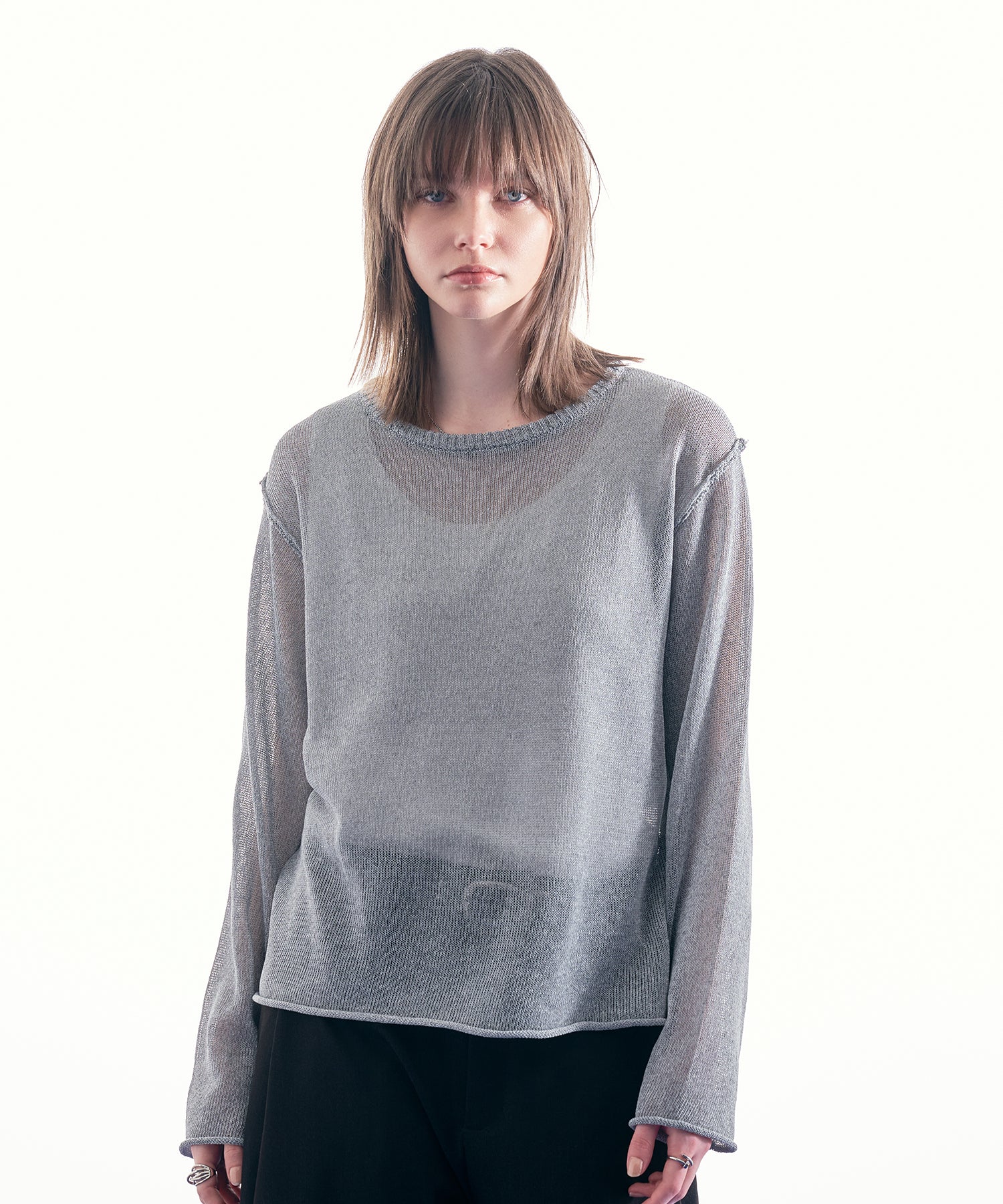 最大の特徴であるシアー感は、インナーとのレイヤードによって見え方が変化し、