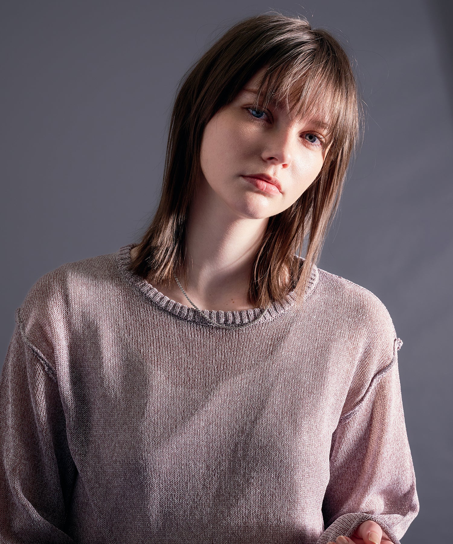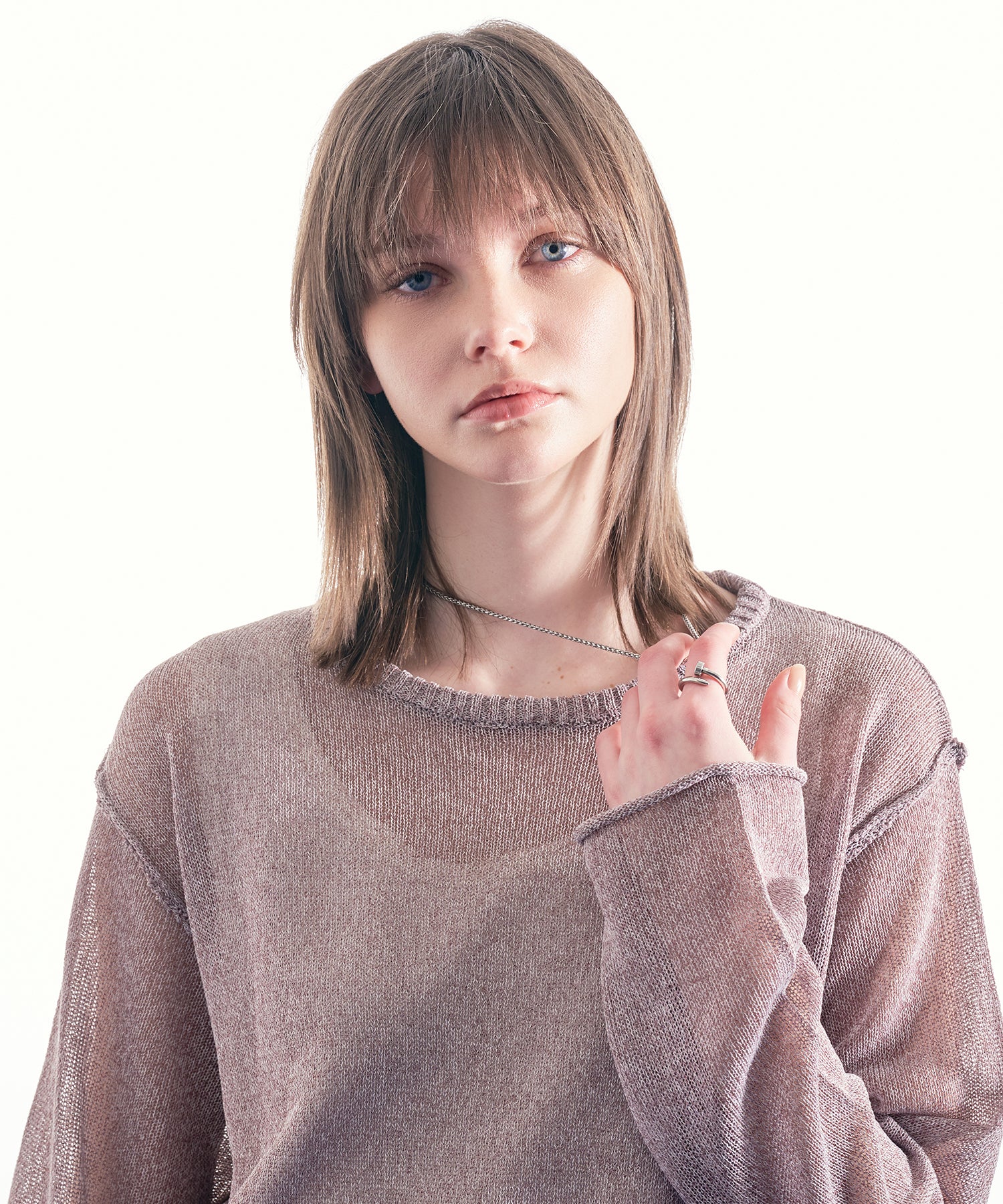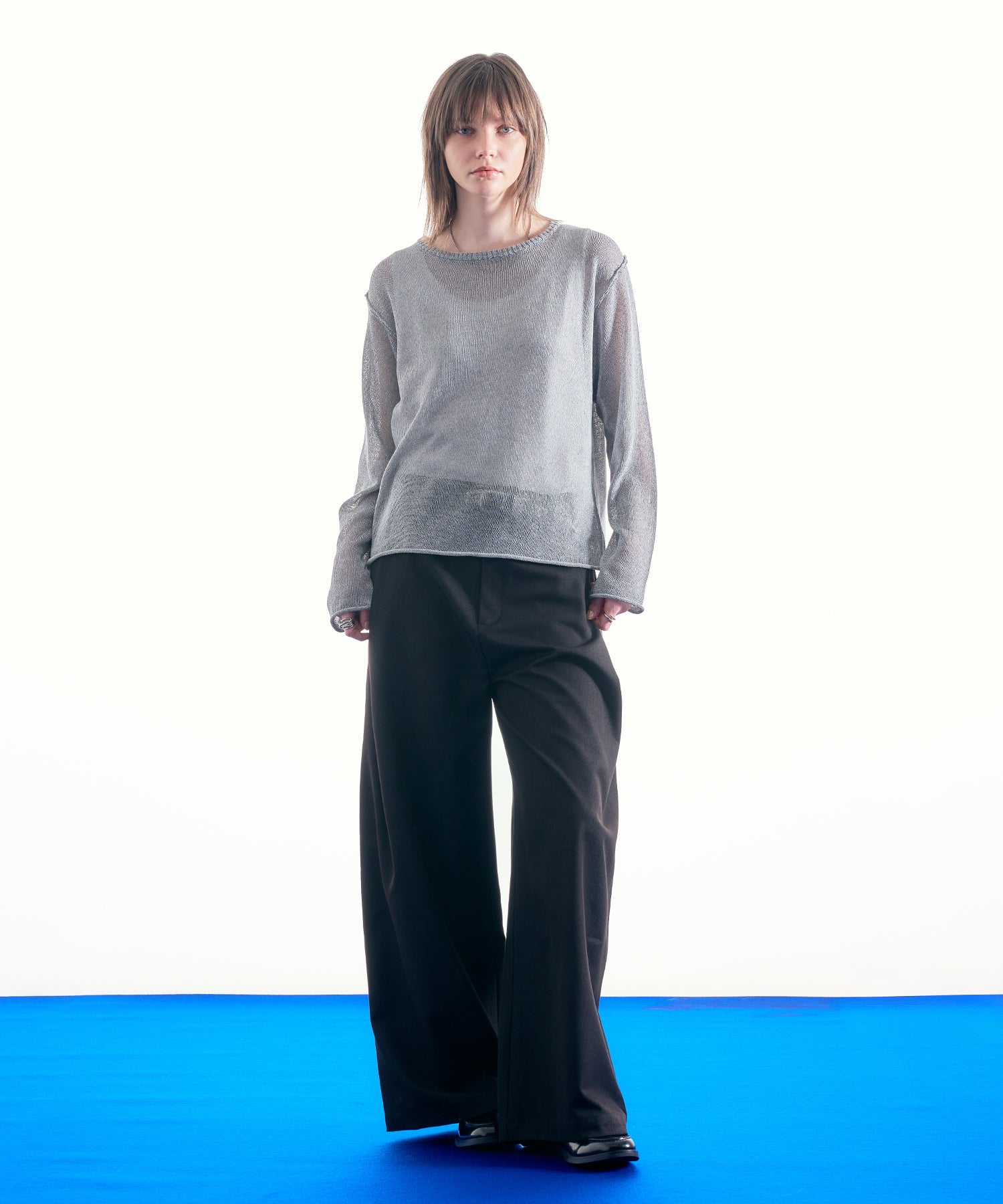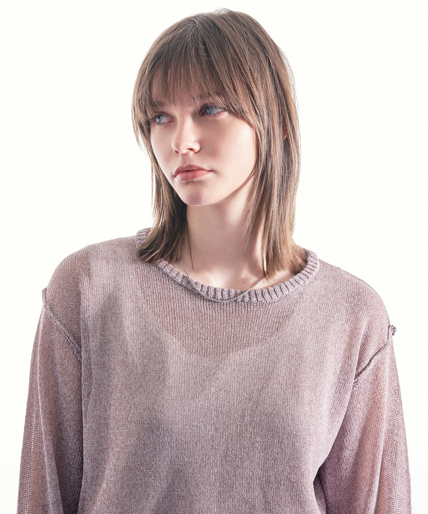 最大の特徴であるシアー感は、インナーとのレイヤードによって見え方が変化し、
