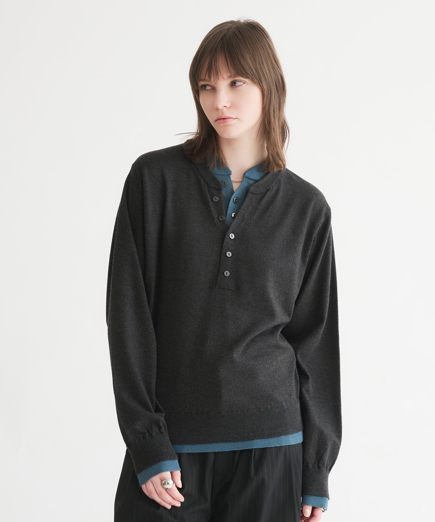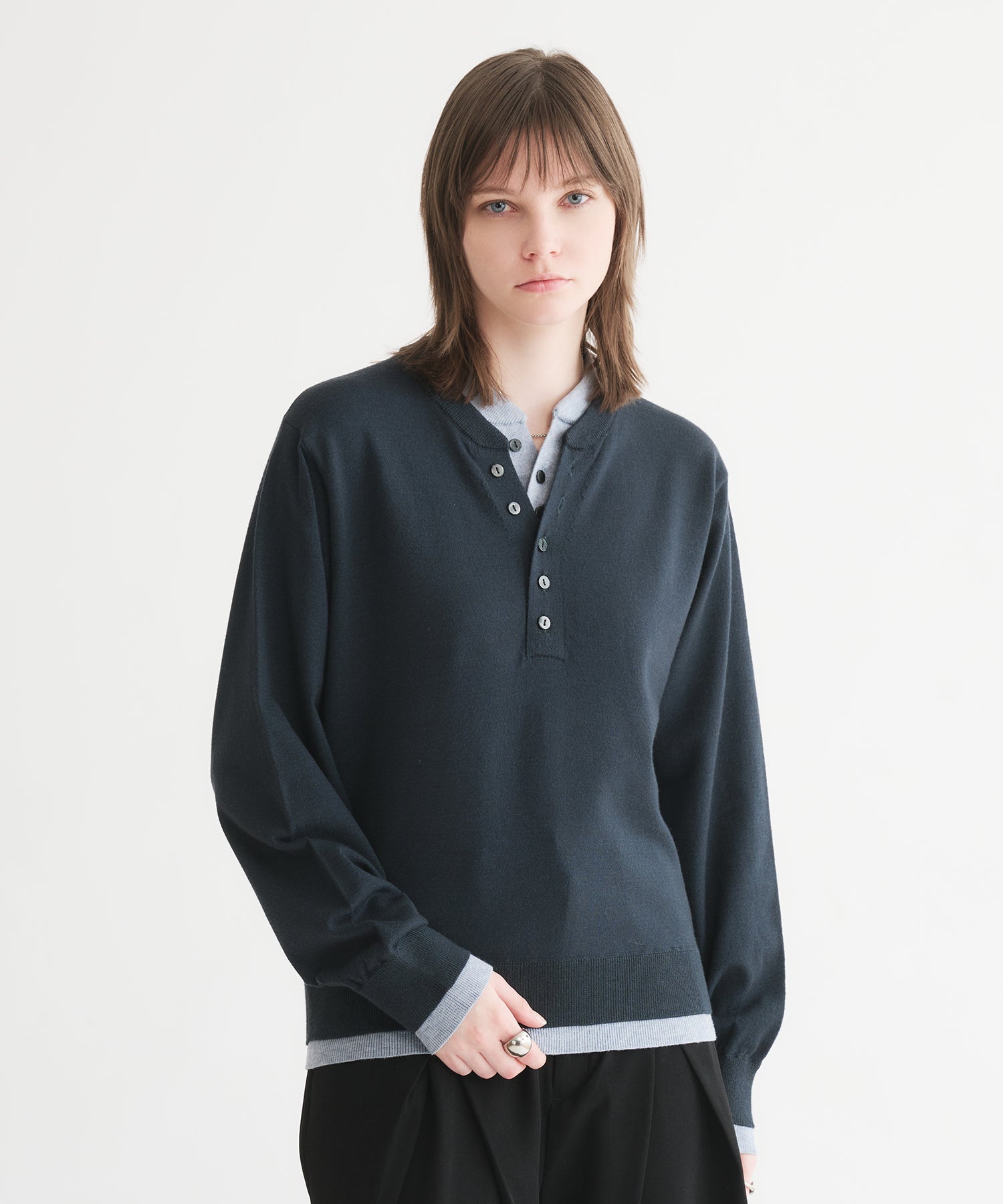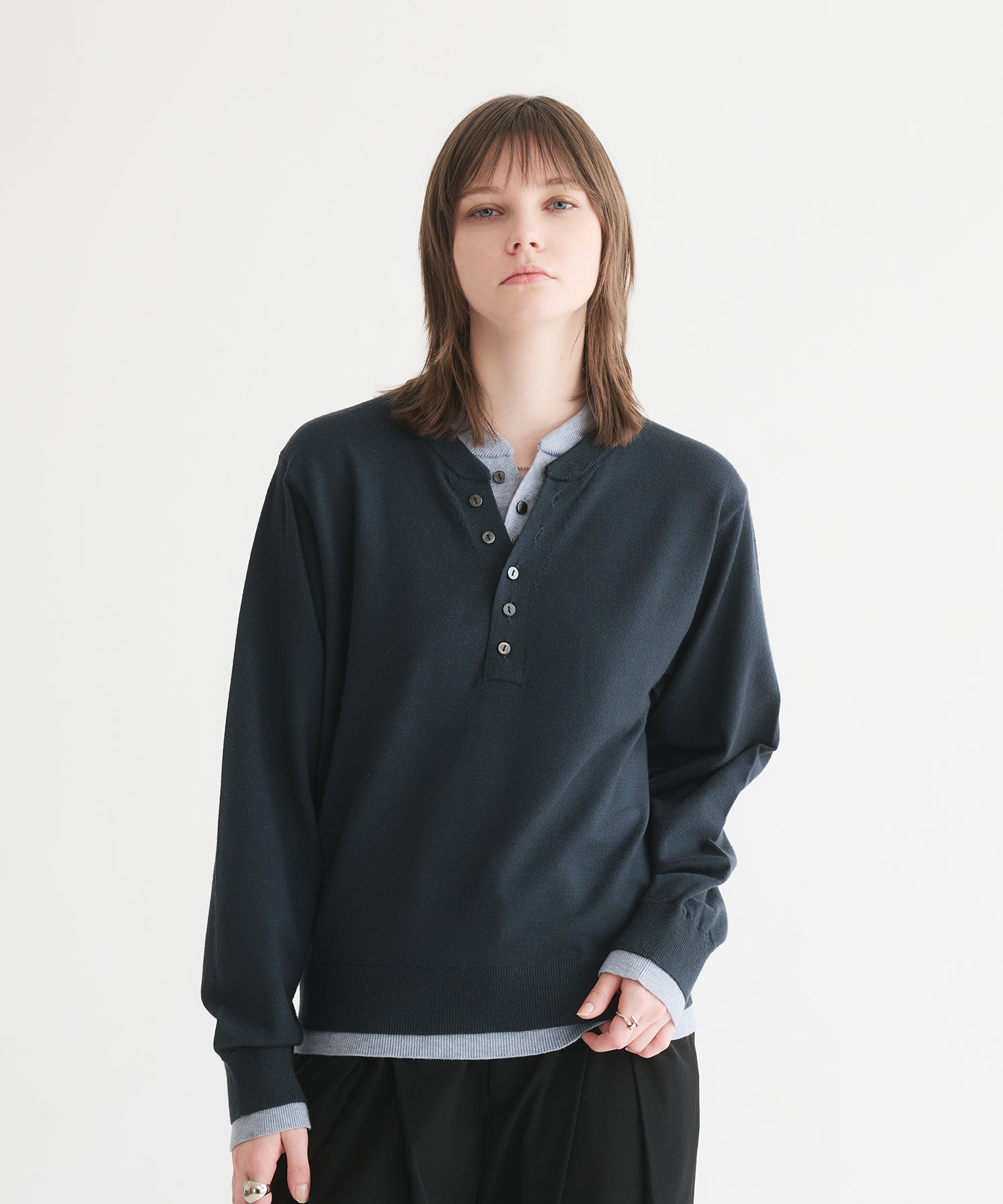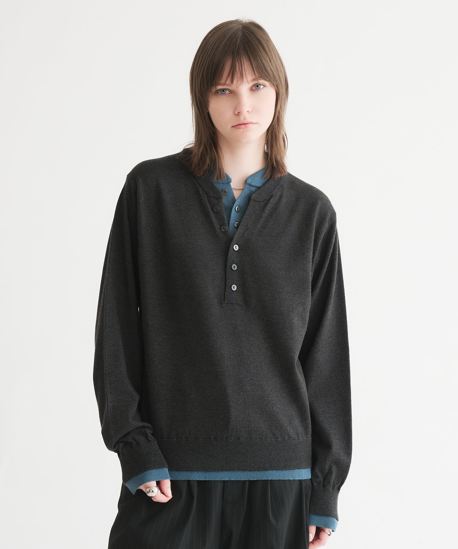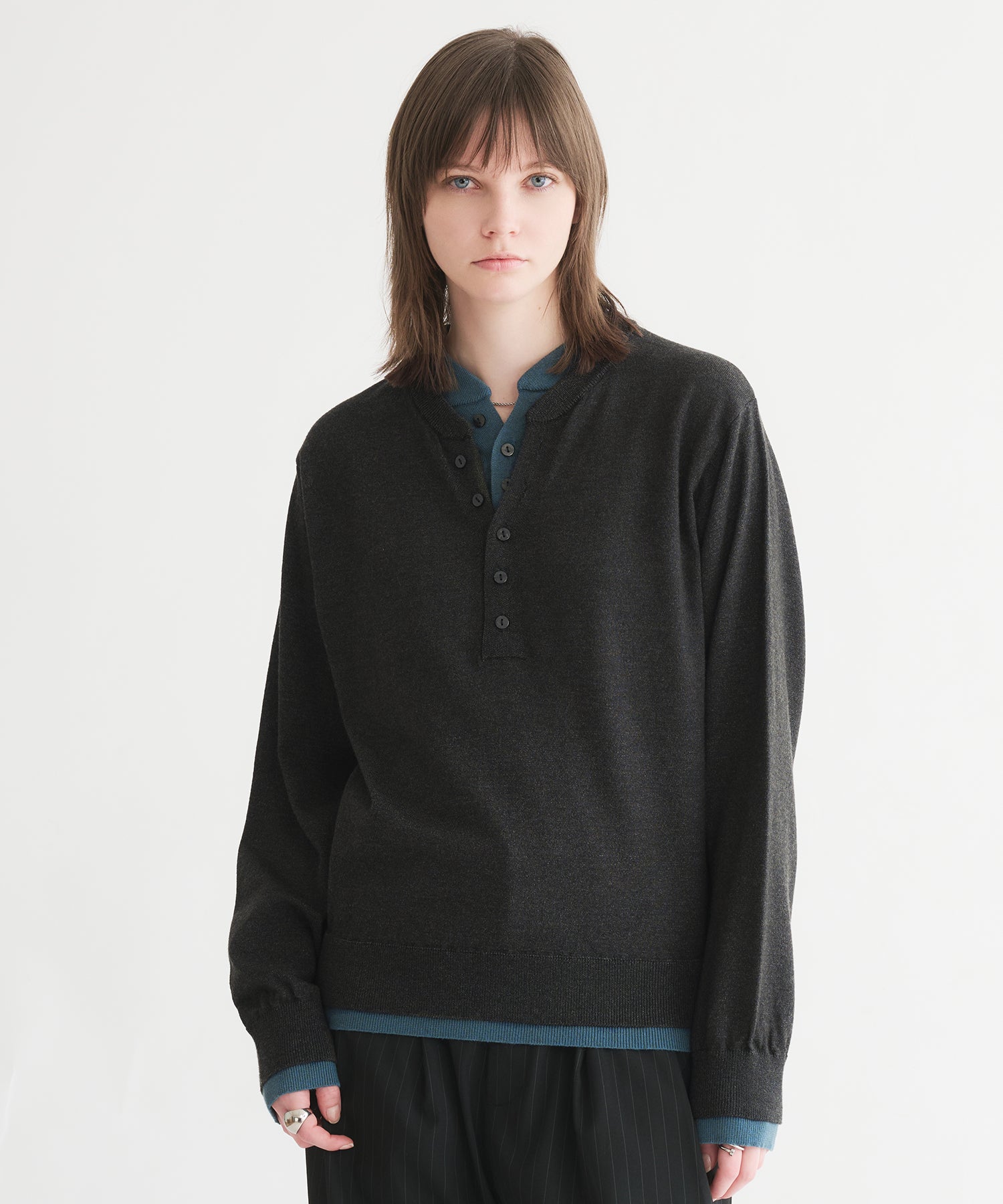 レイヤードスタイルヘンリーネックニット