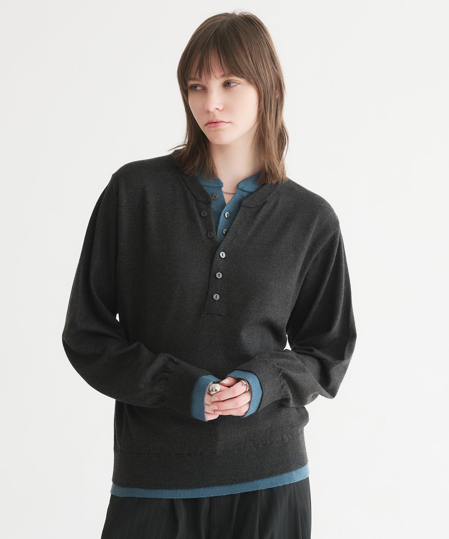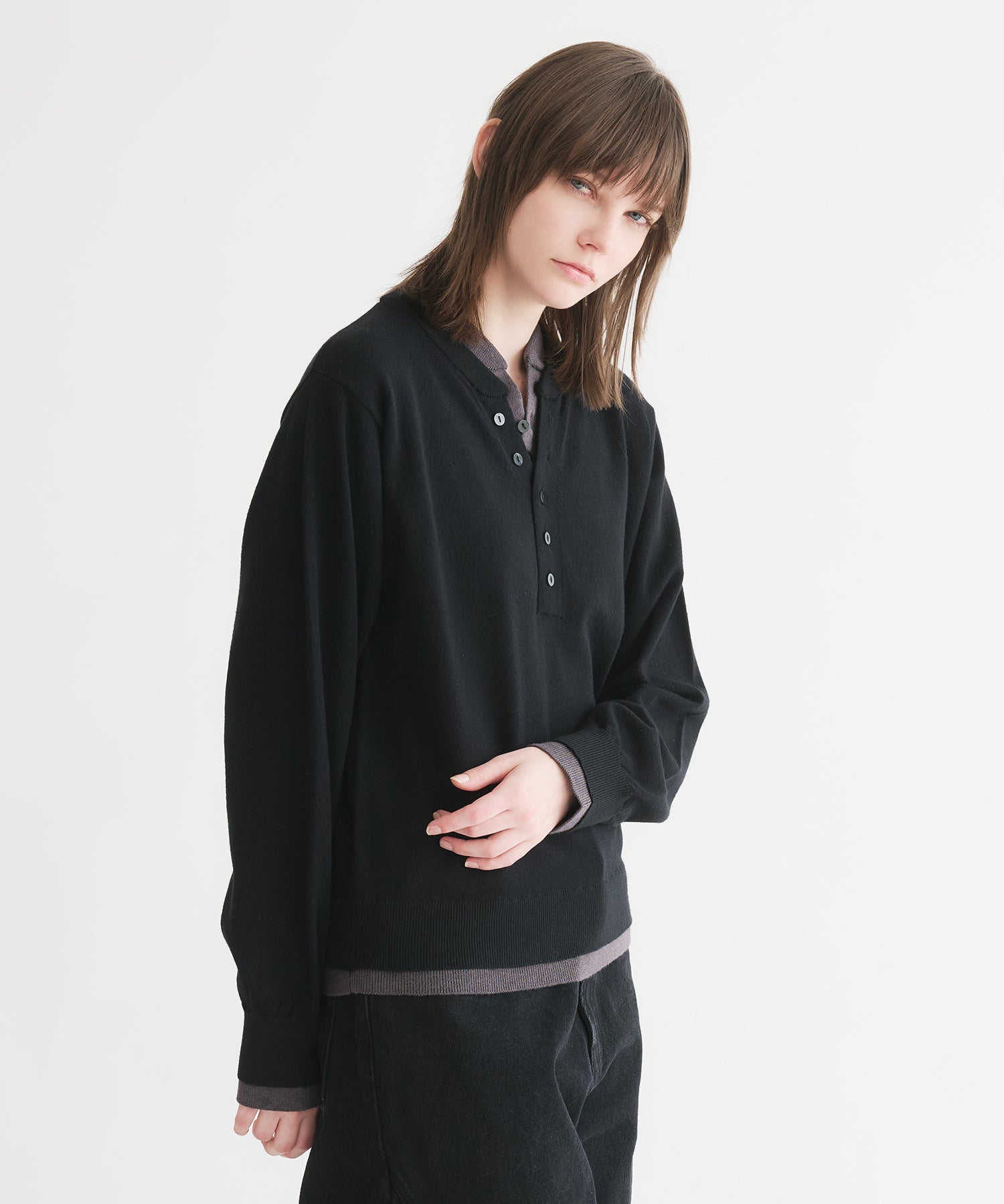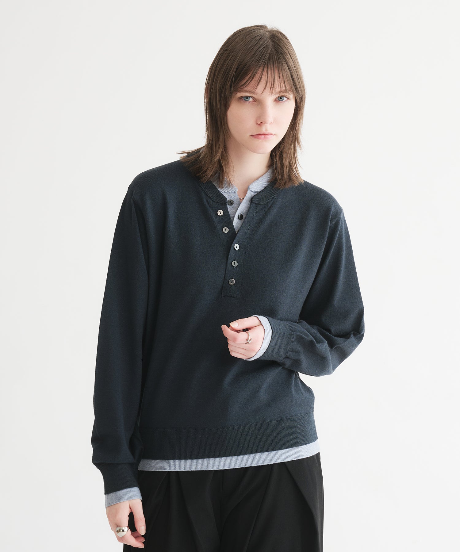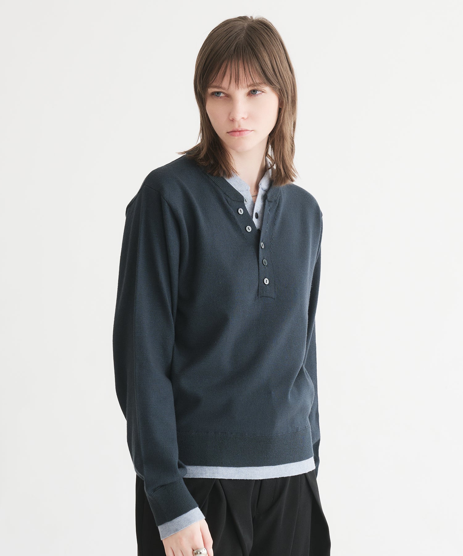レイヤードスタイルヘンリーネックニット