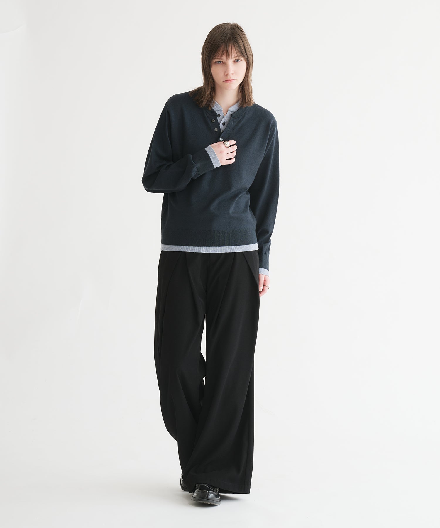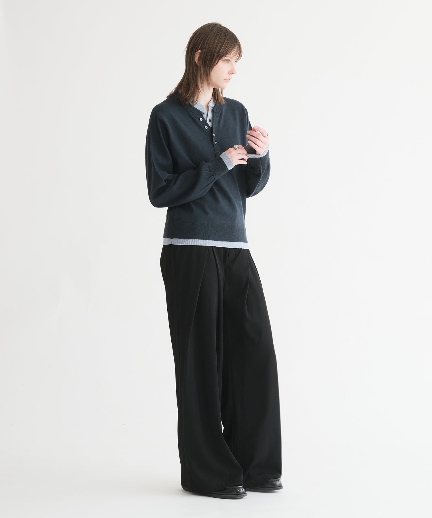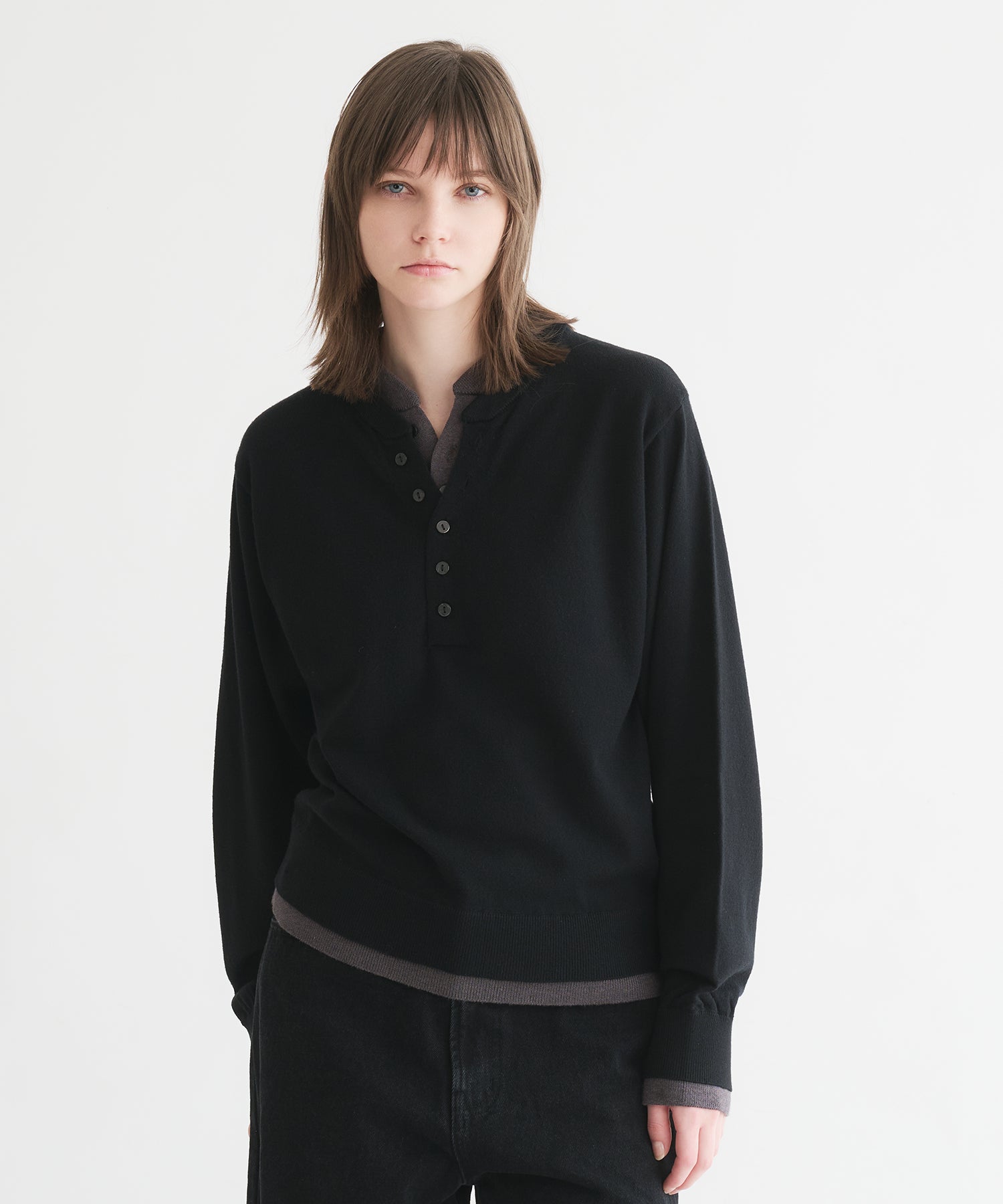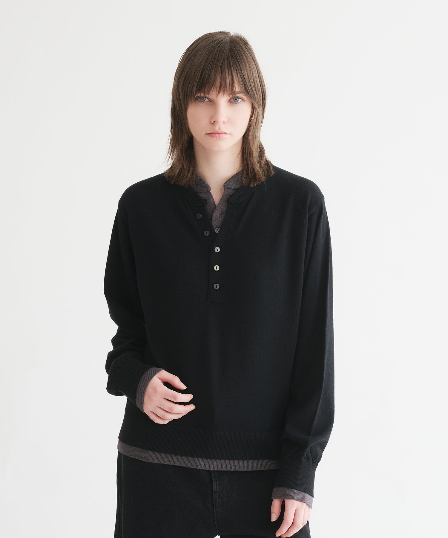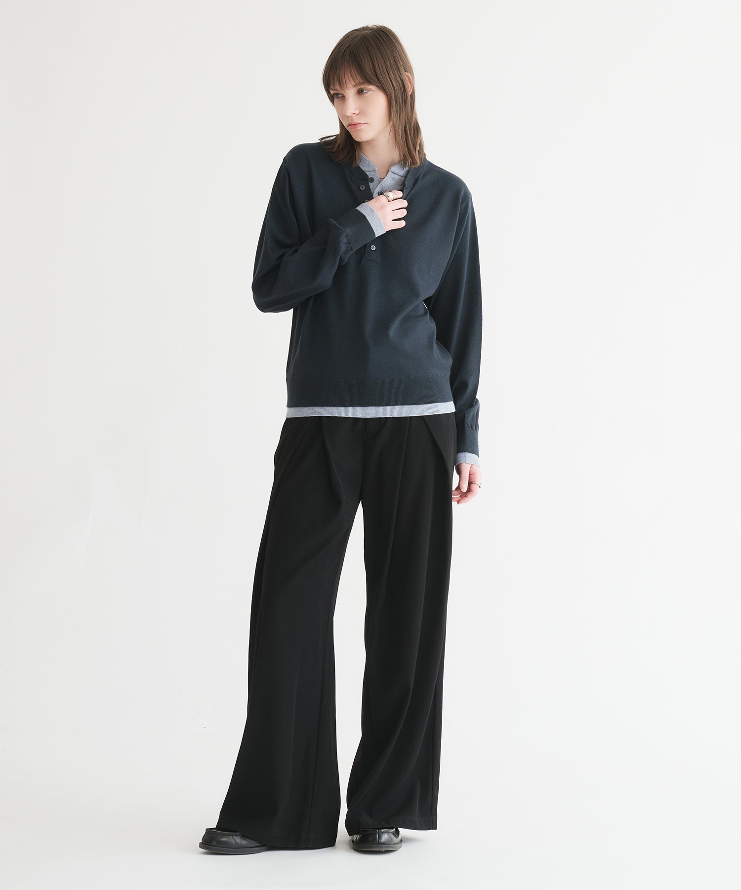 レイヤードスタイルヘンリーネックニット