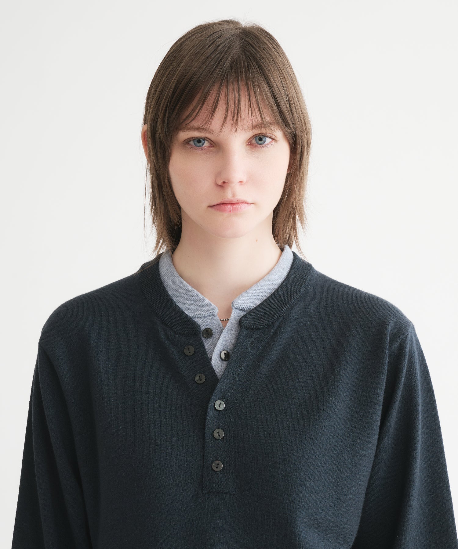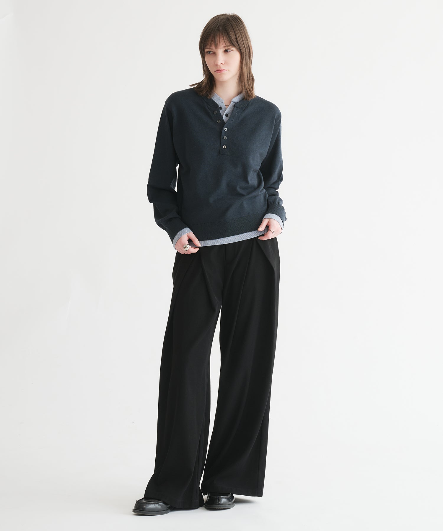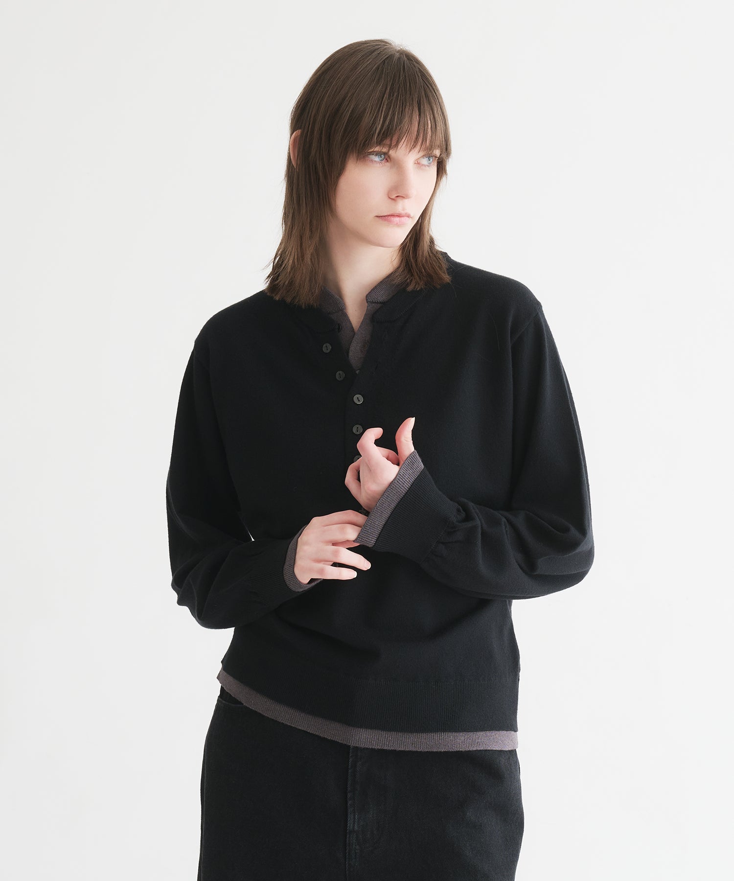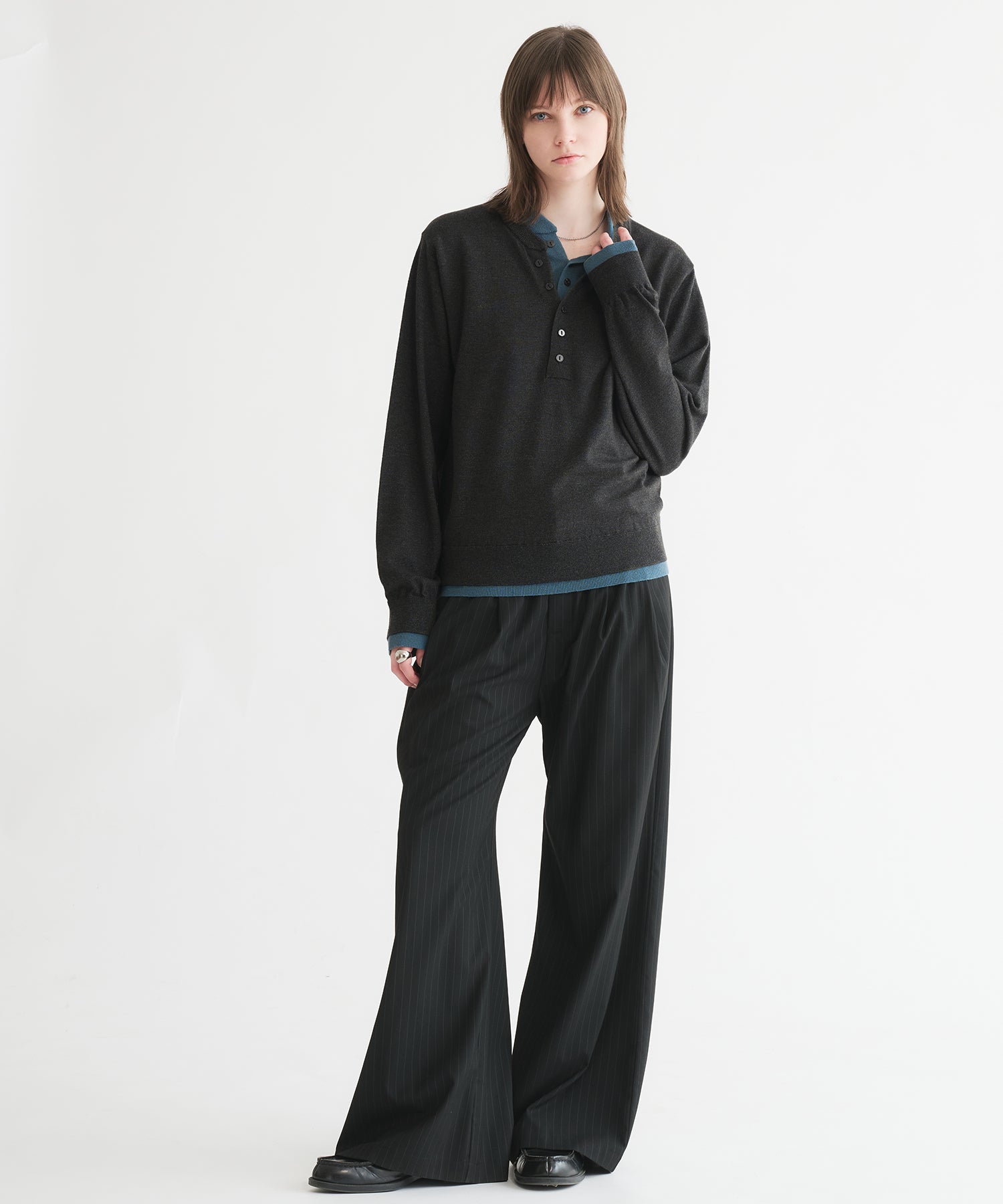 レイヤードスタイルヘンリーネックニット