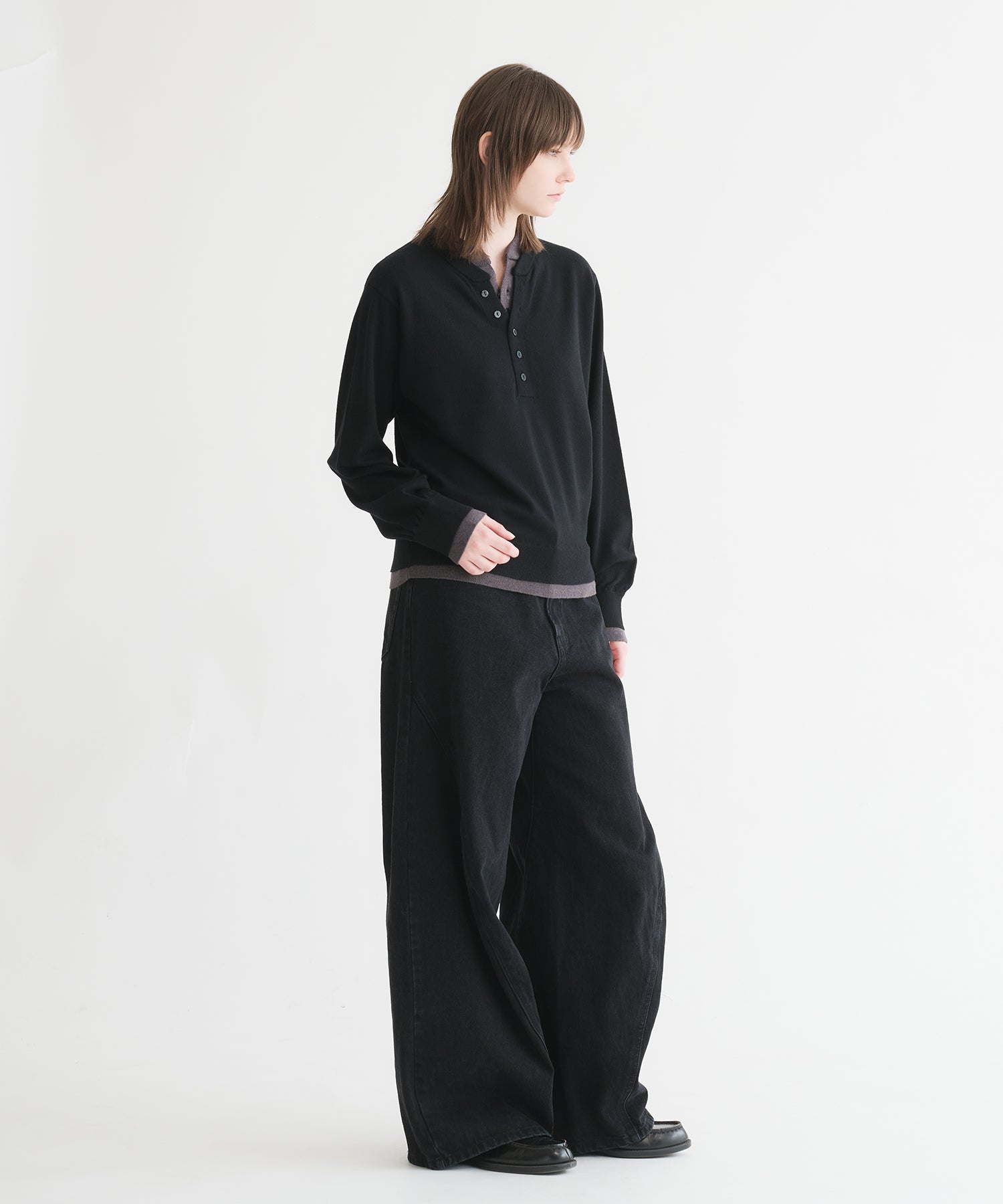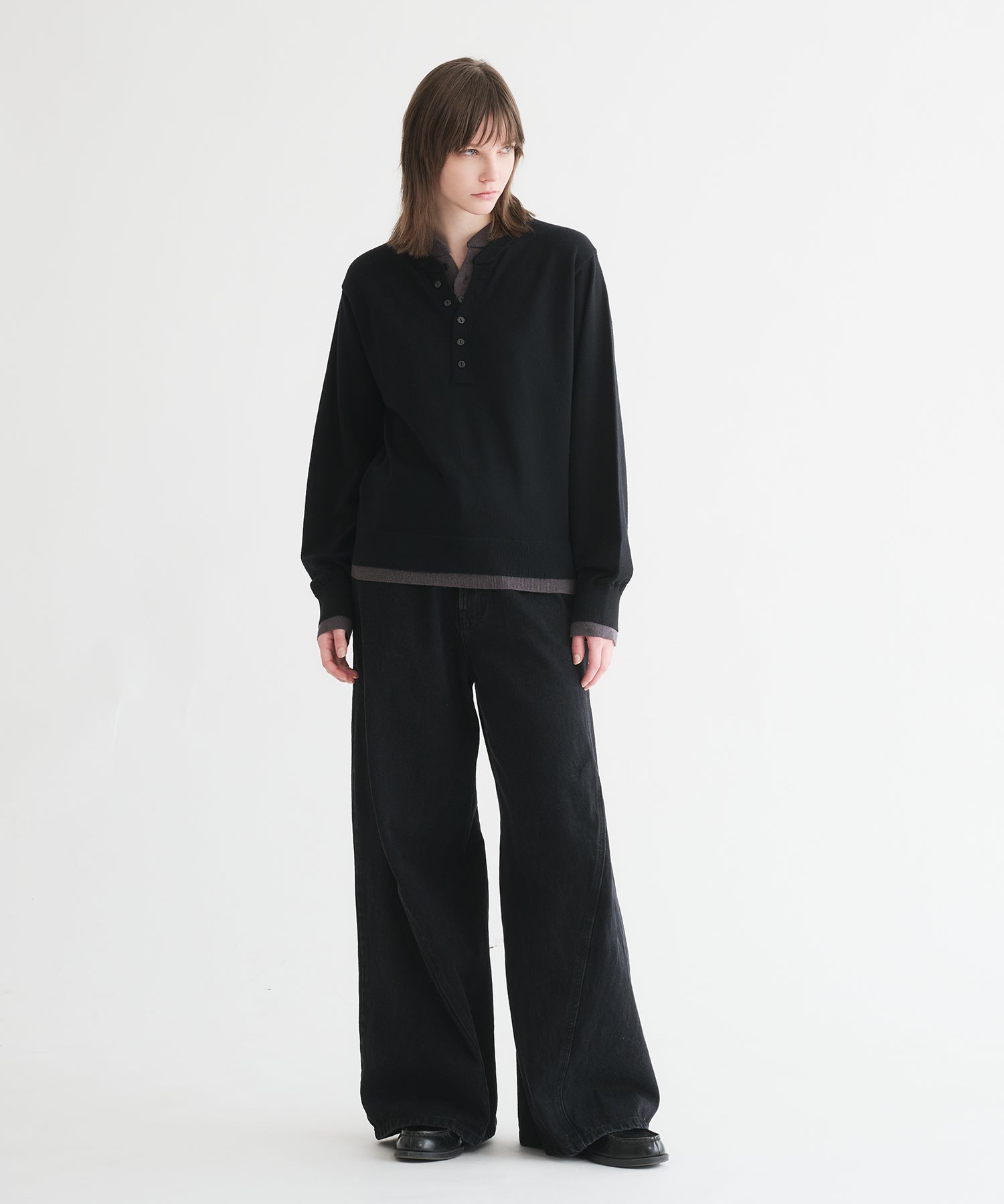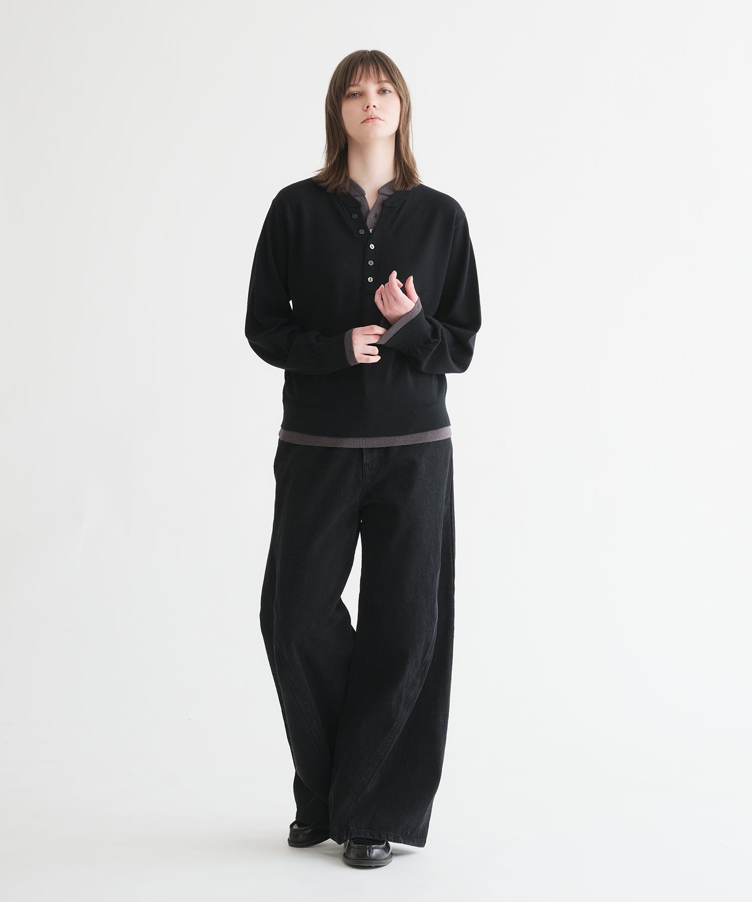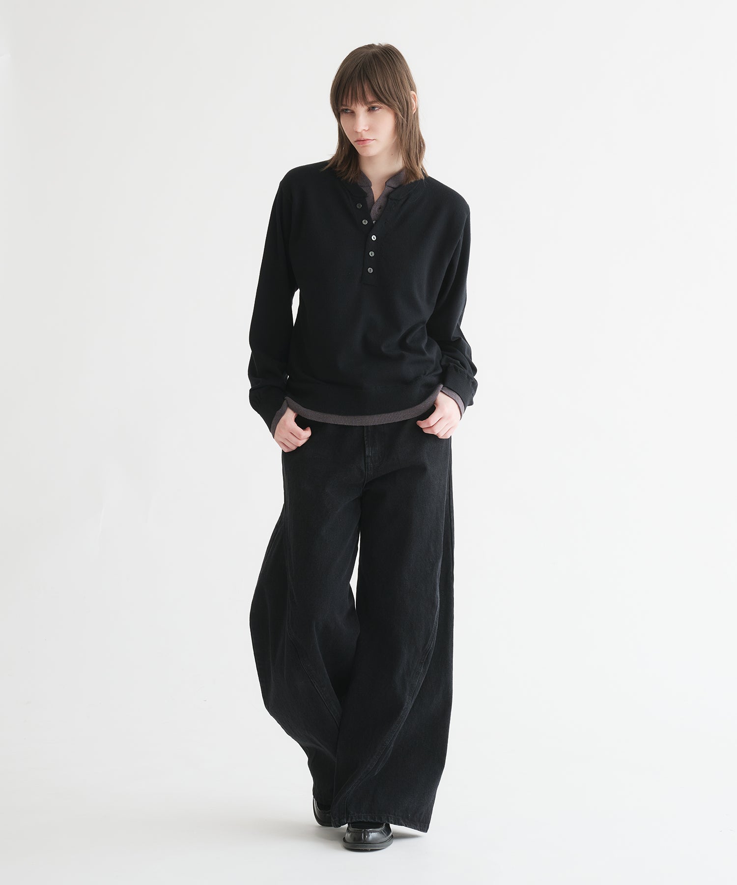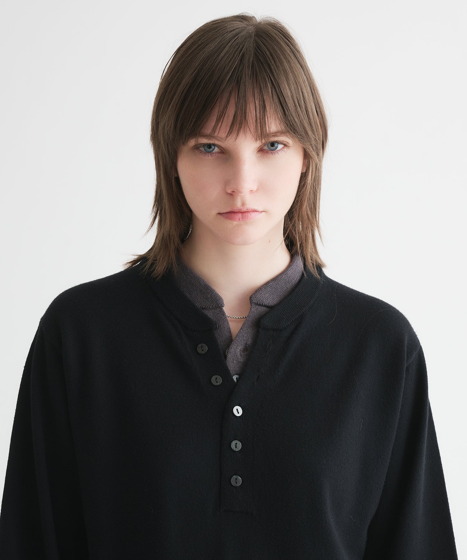 レイヤードスタイルヘンリーネックニット