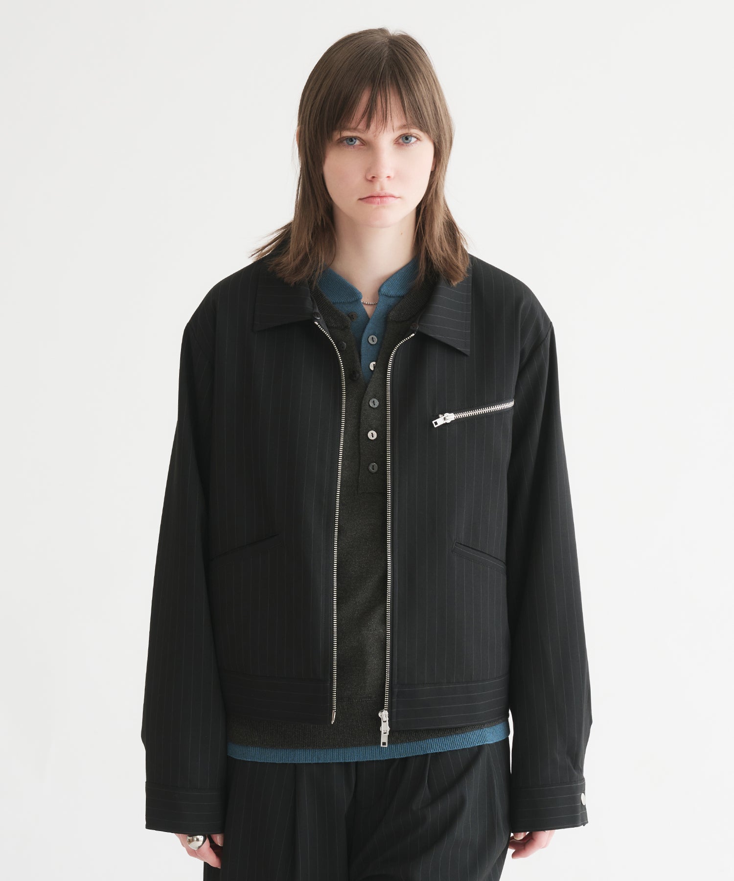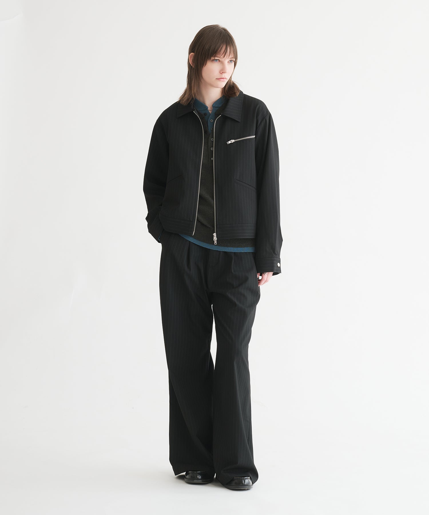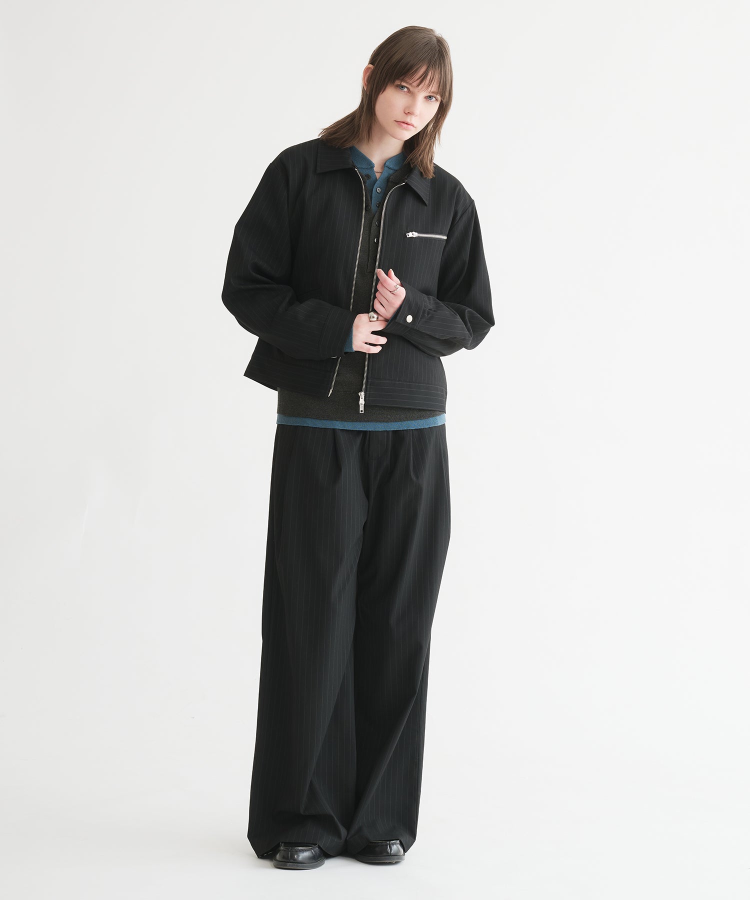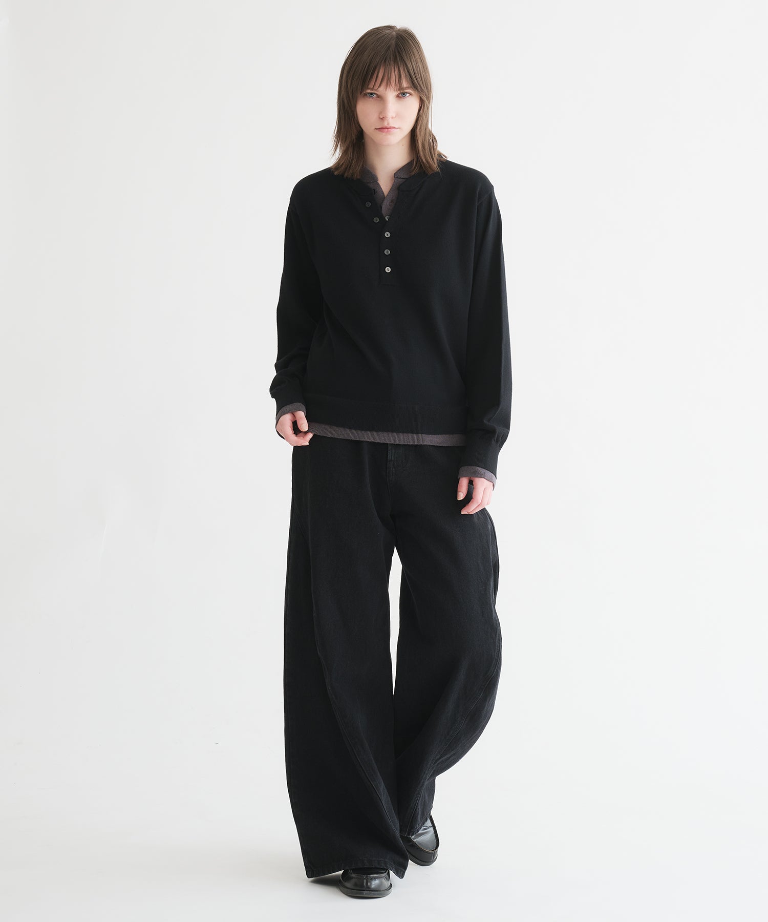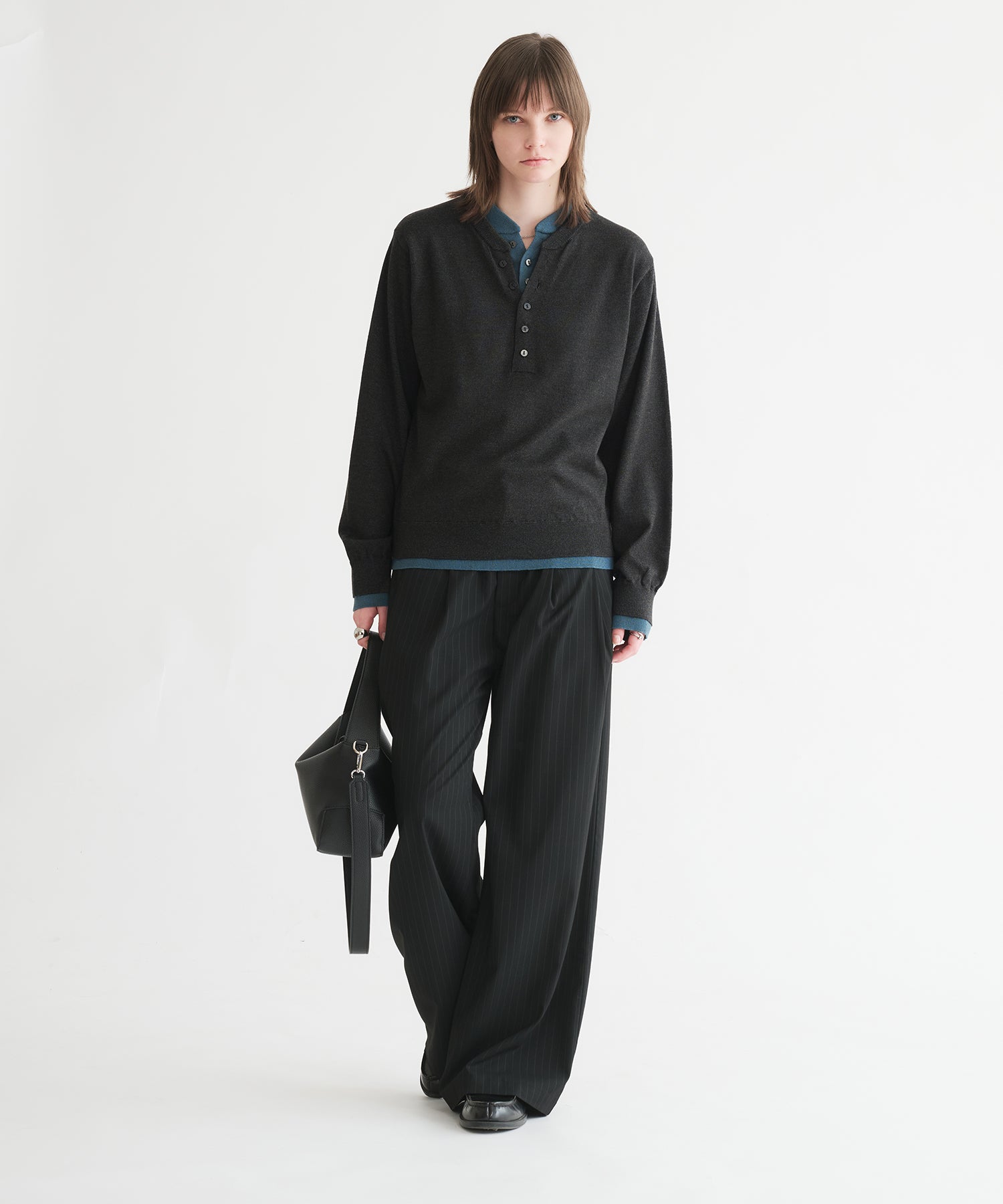 「ヘンリーネックにヘンリーネックを重ねる」という難易度の高いレイヤードを、