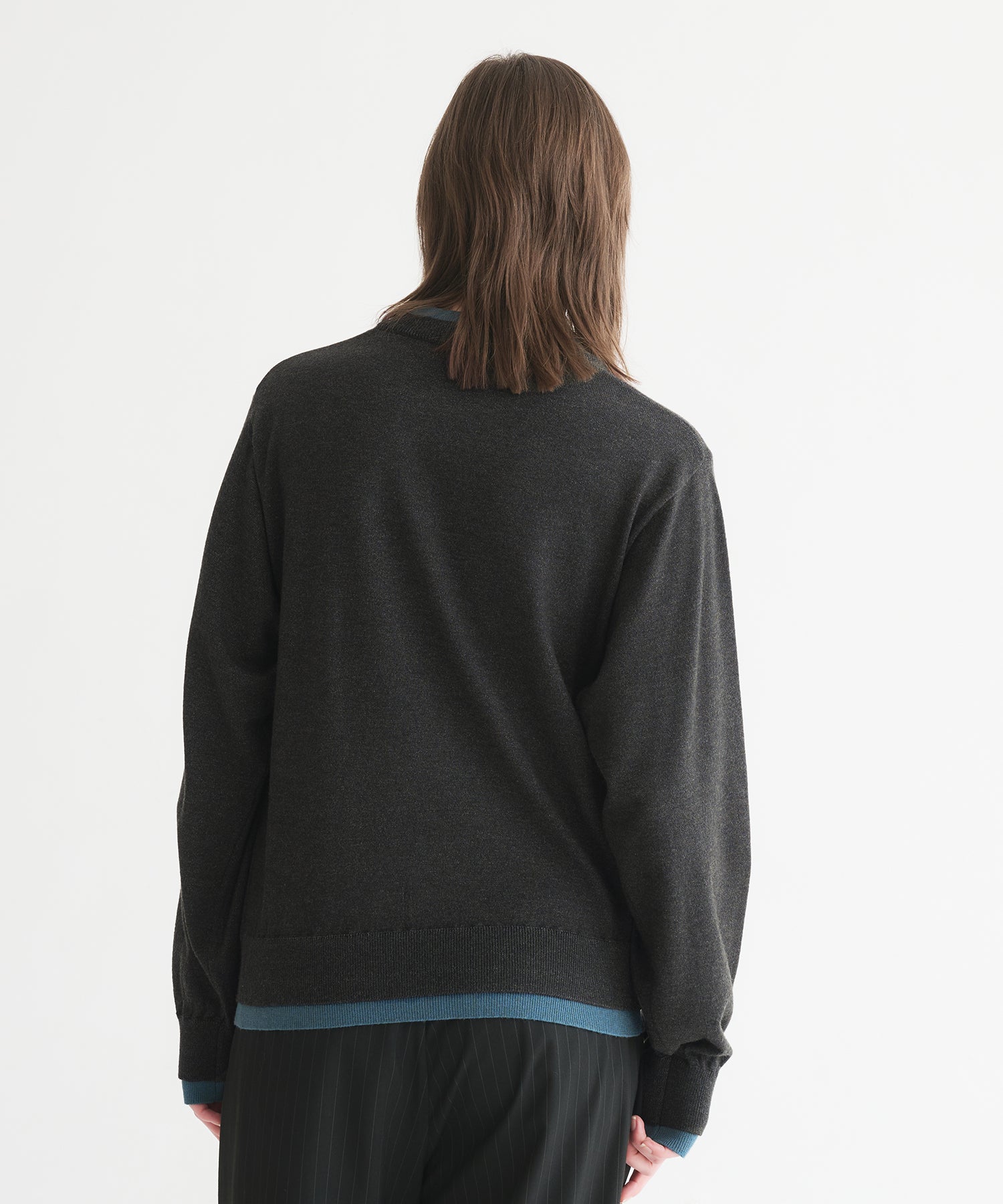最大の特徴は、インナーに別色のニットを重ね着したかのような