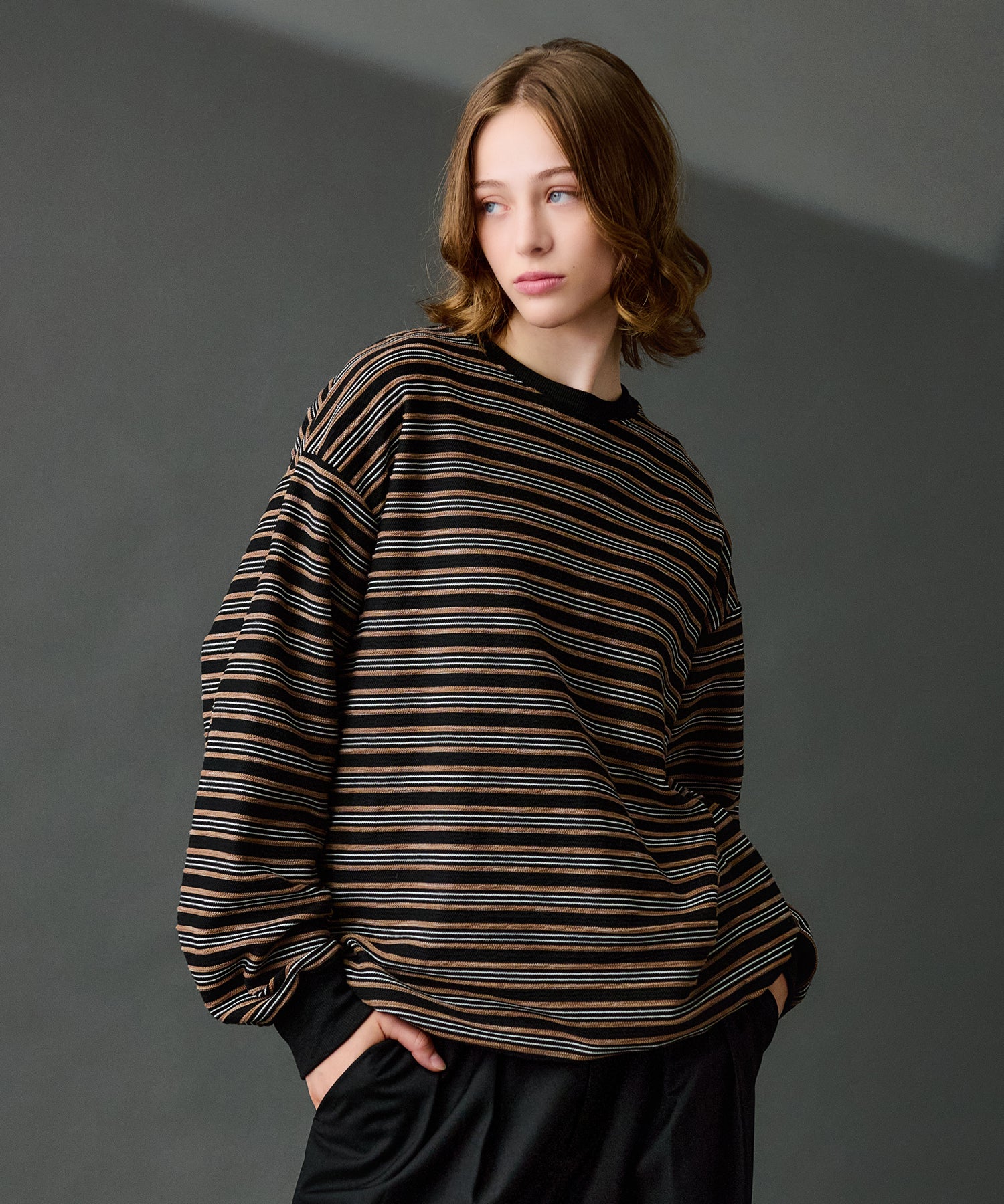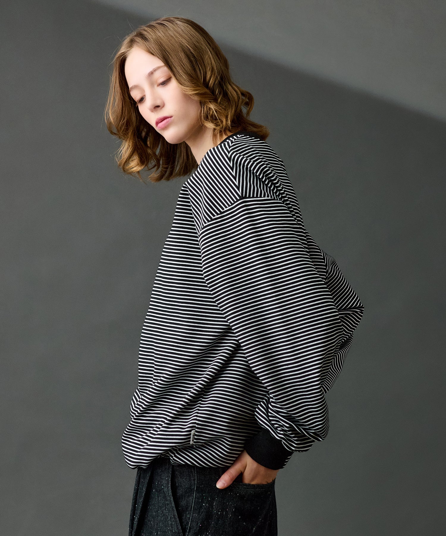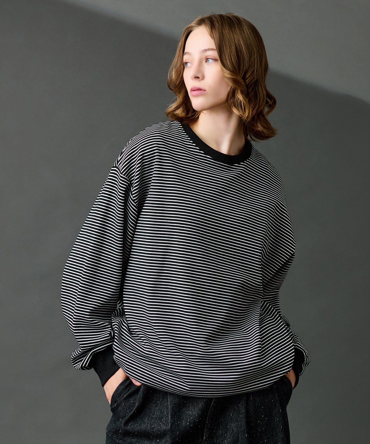 【WETTEMPT|ウィテンプト】CREW NECK DRAW CORD BORDER LONG TEE / クルーネックドローコードボーダーロンT