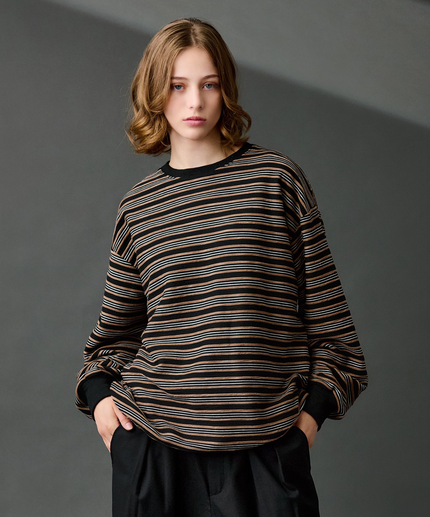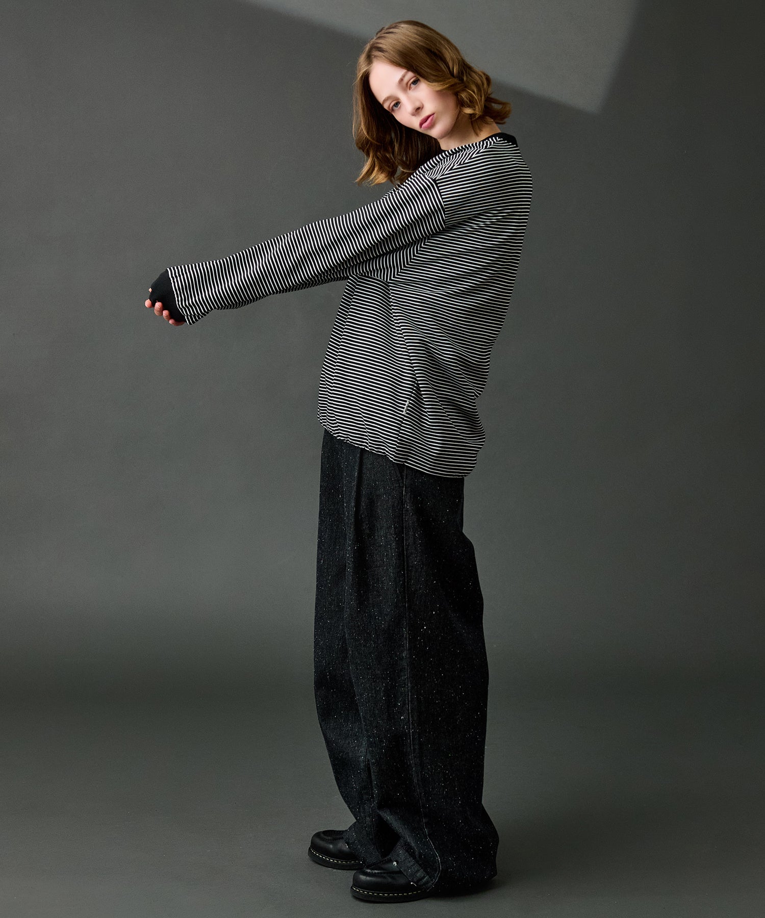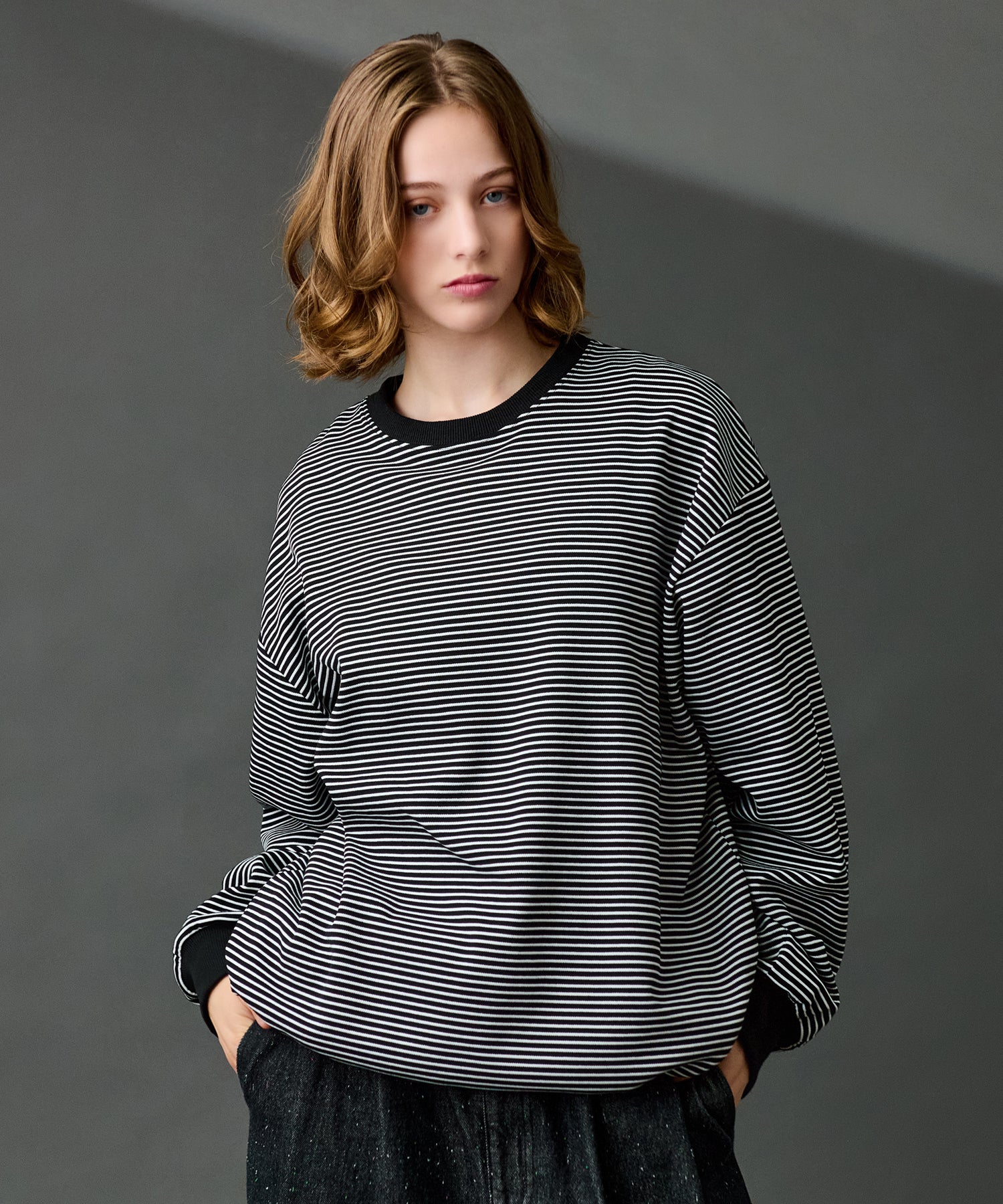 【WETTEMPT|ウィテンプト】CREW NECK DRAW CORD BORDER LONG TEE / クルーネックドローコードボーダーロンT