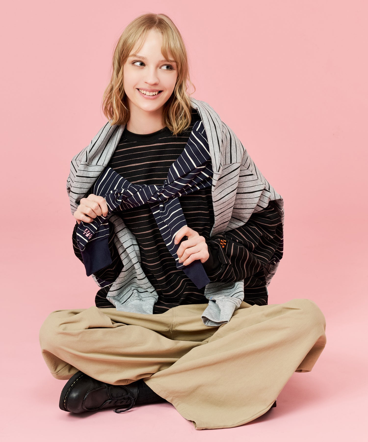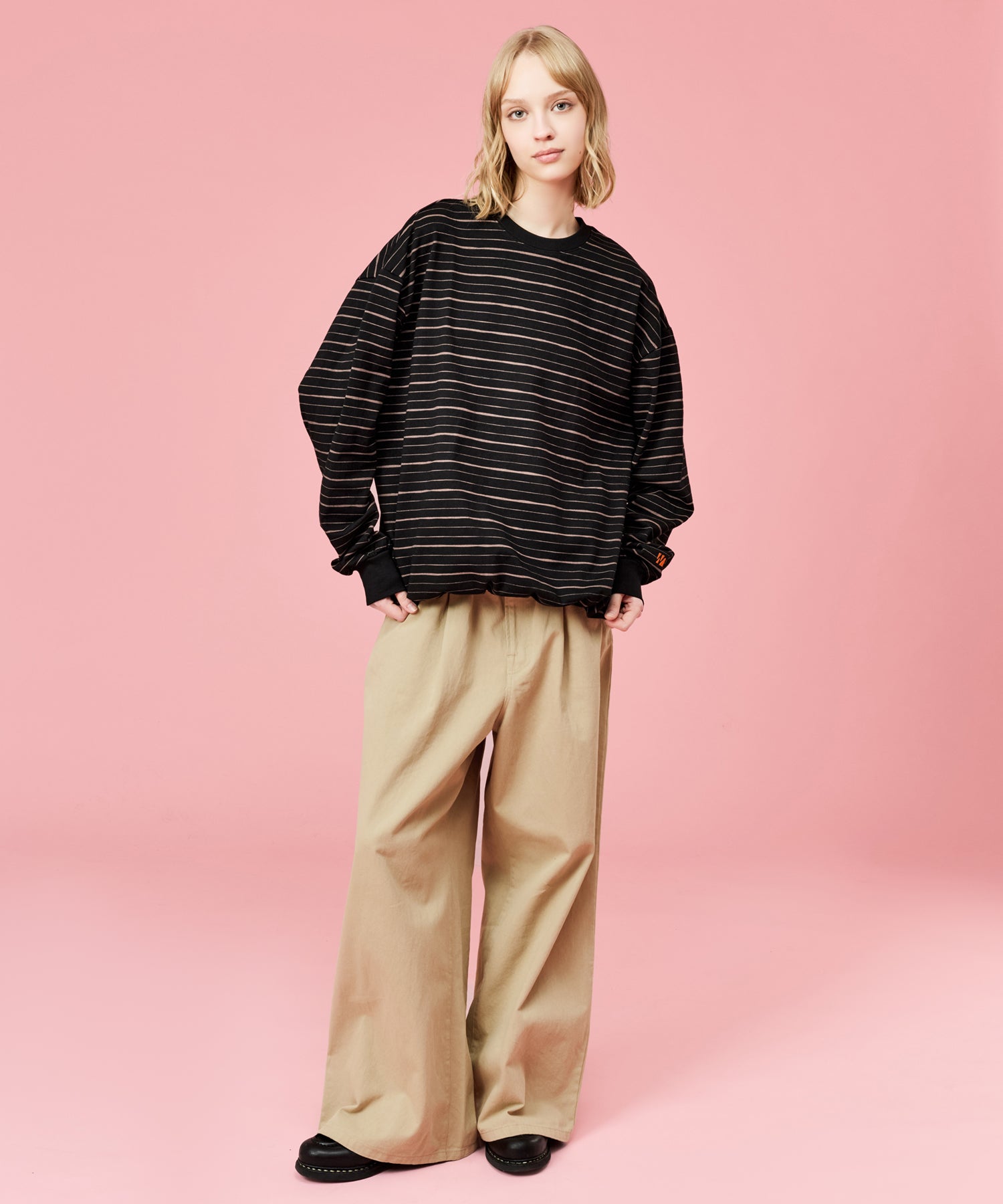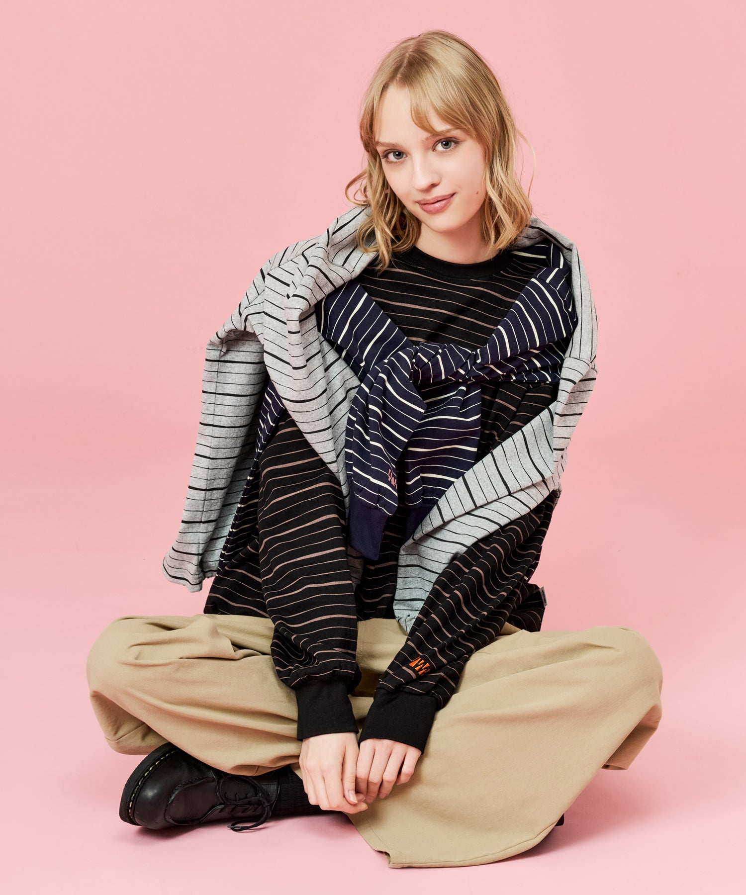 手書きで描いたような、ラフなラインが特徴のマルチボーダーロンT。