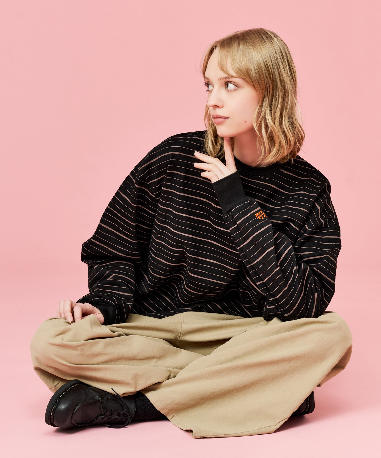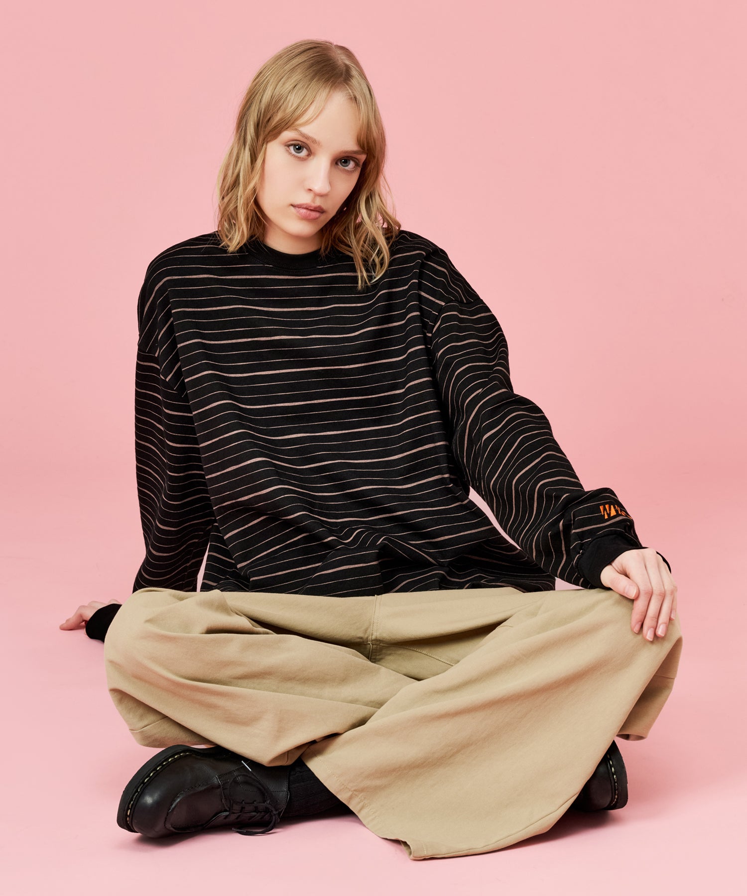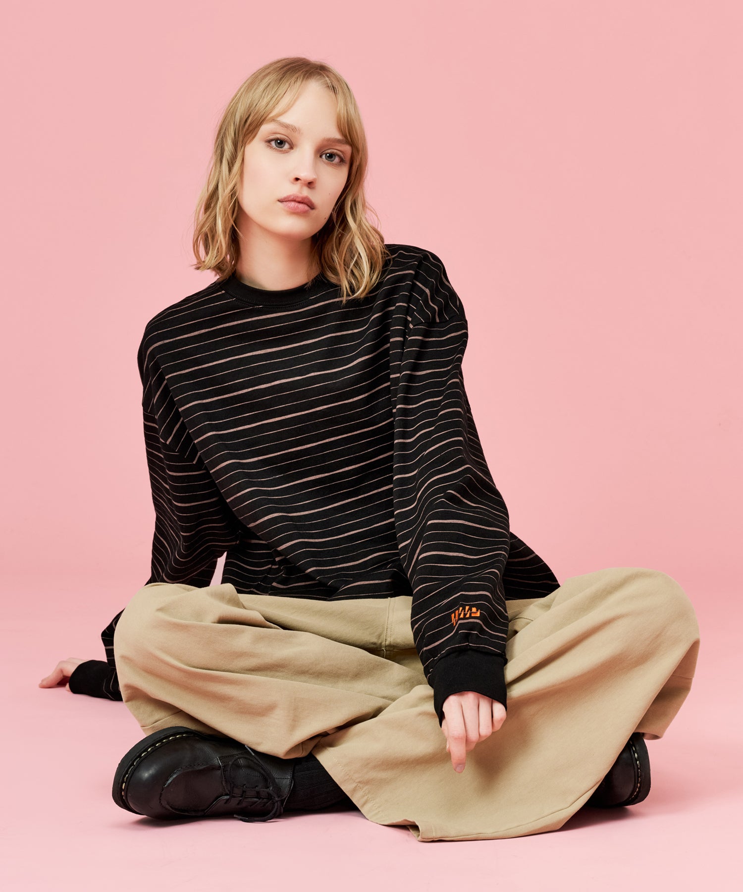 手書きで描いたような、ラフなラインが特徴のマルチボーダーロンT。