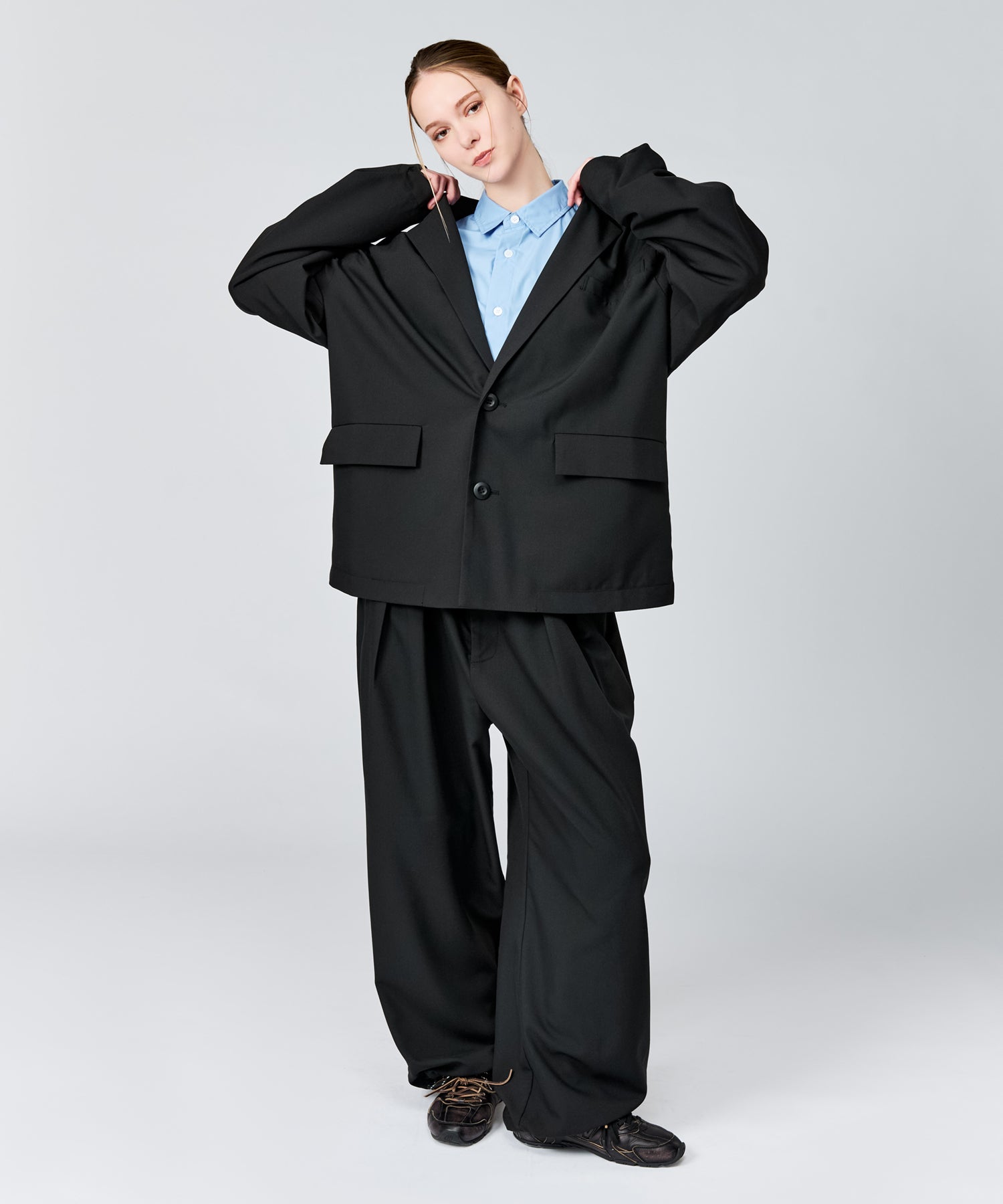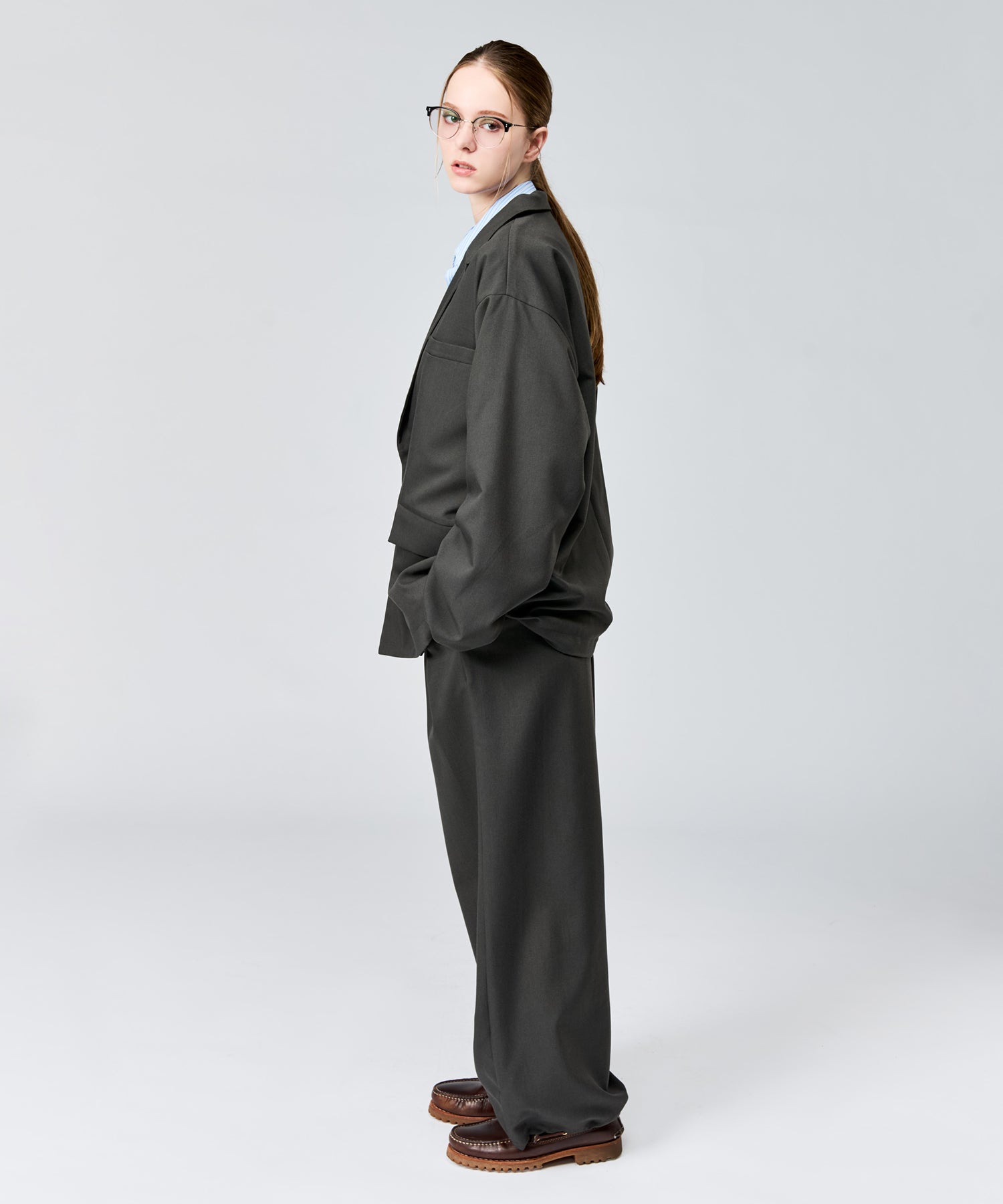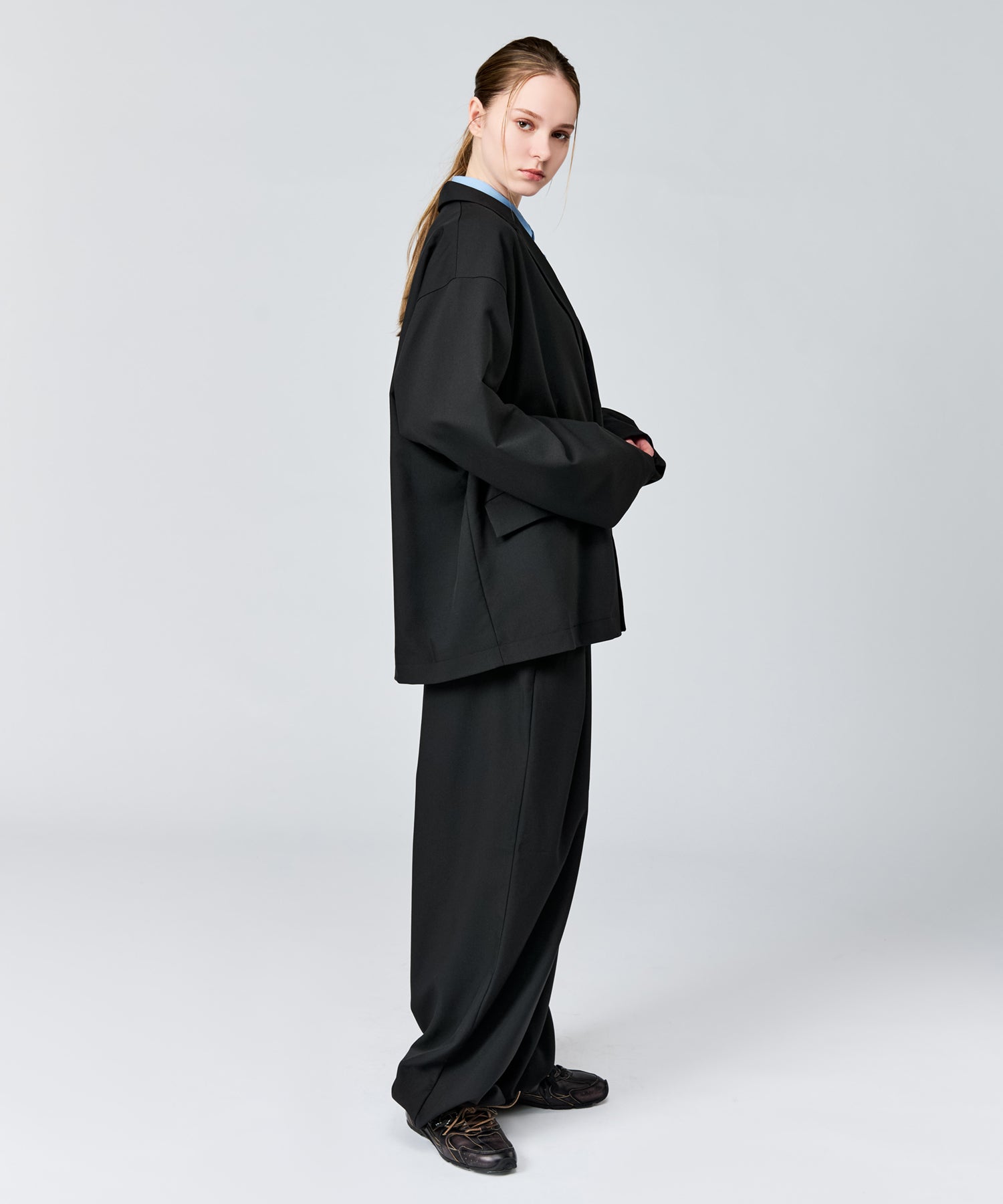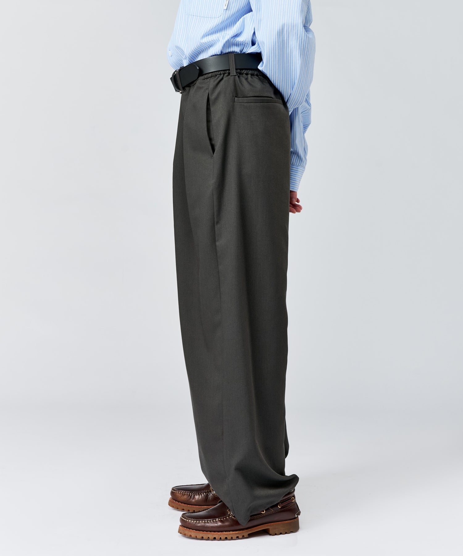 ワイドシルエットの立体感をより引き立てます。